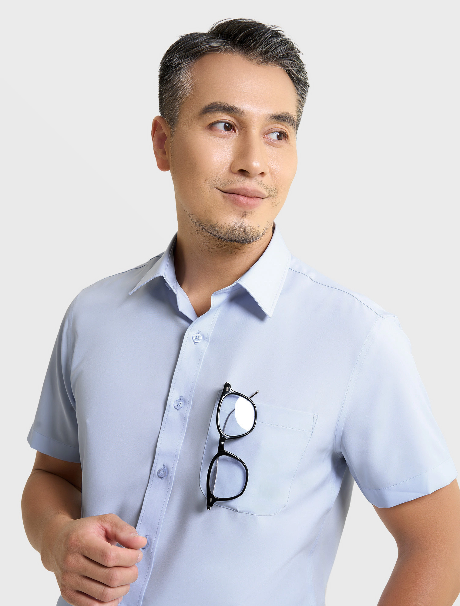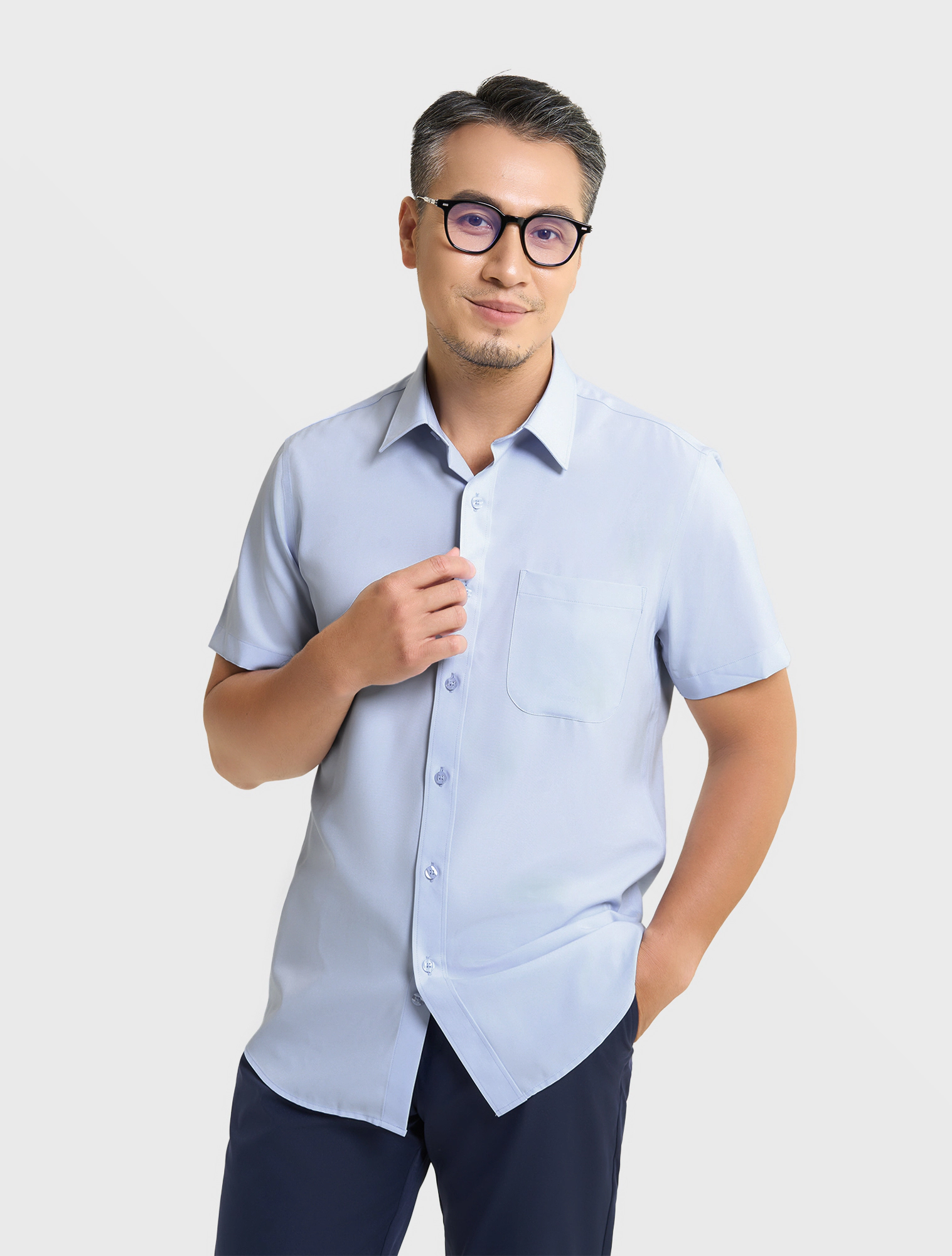 Áo sơ mi nam slimfit làm từ chất liệu nano cao cấp, sợi Wicking thấm hút vượt trội, khô nhanh hơn 40% so với cotton.