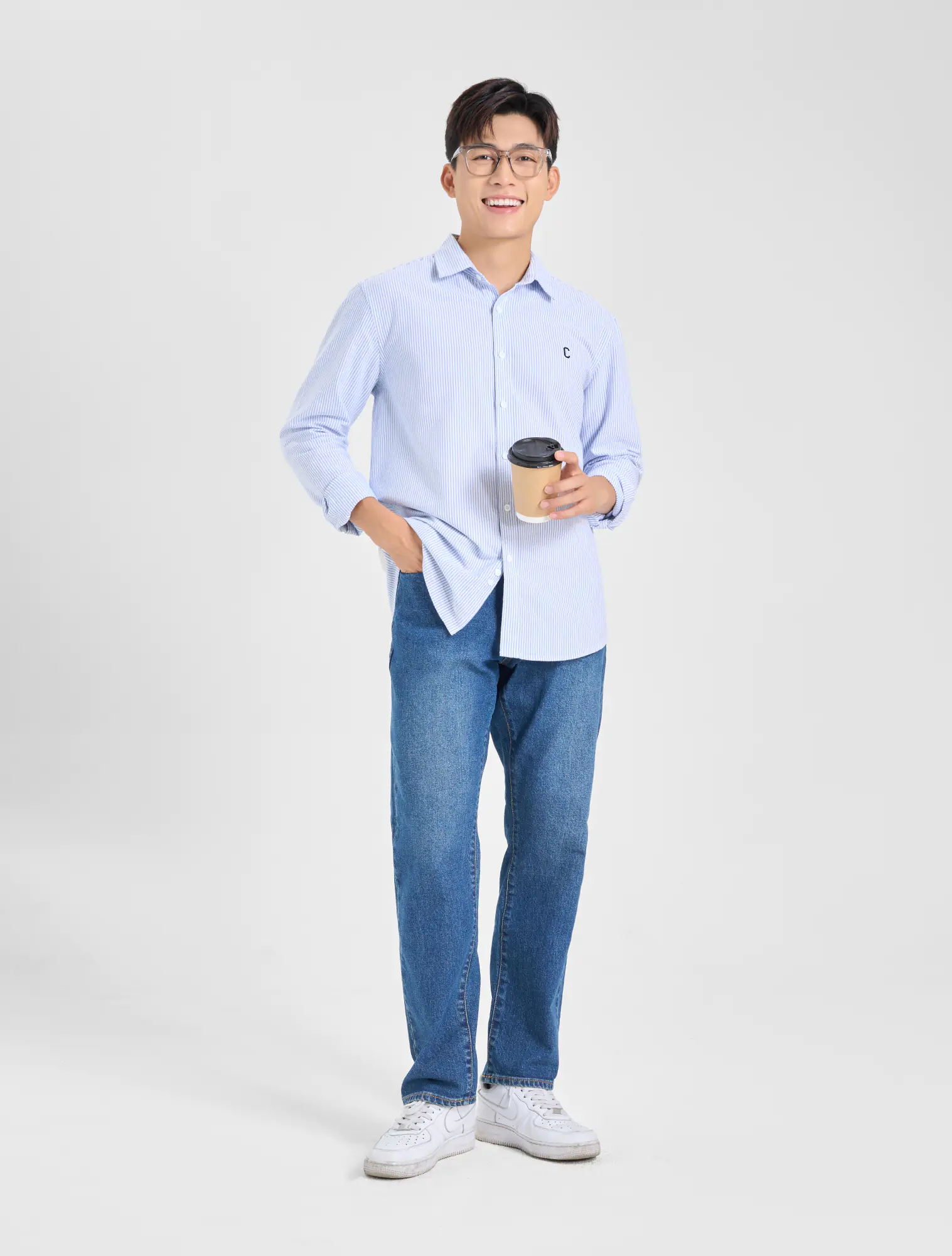 Áo sơ mi nam dài tay Oxford, chất liệu cotton thông thoáng, phom regular fit với độ ôm sát cơ thể vừa phải, thoải mái cả ngày dài. Đường may tỉ mỉ, kiểm soát chất lượng chỉ, đường may một cách hoàn hảo mang đến cho khách hàng một sản phẩm chỉn chu, thanh lịch và sang trọng.