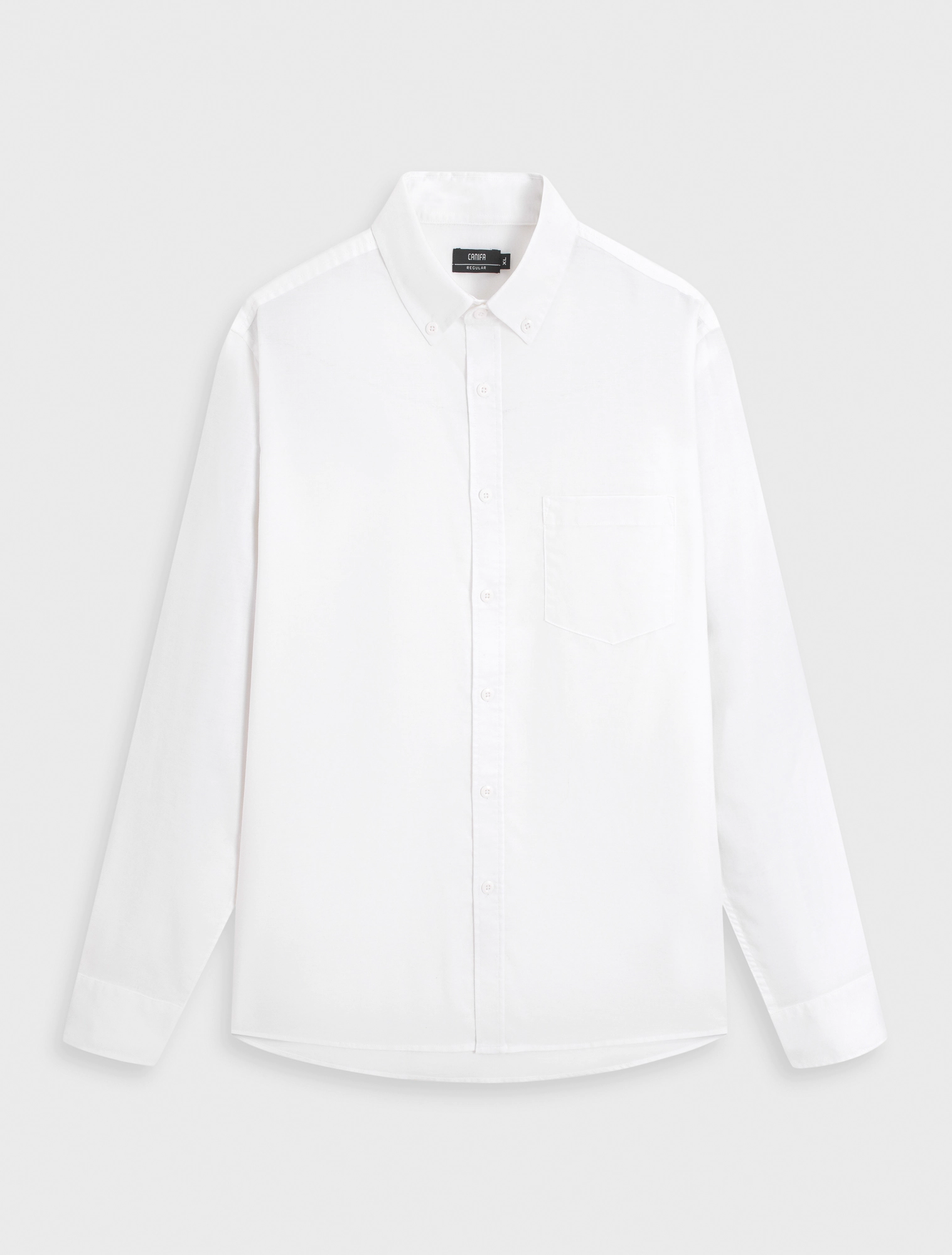 Áo sơ mi nam tay dài chất liệu cotton thông thoáng, phom regular fit với độ ôm sát cơ thể vừa phải, thoải mái cả ngày dài. Đường may tỉ mỉ, kiểm soát chất lượng chỉ, đường may một cách hoàn hảo mang đến cho khách hàng một sản phẩm chỉn chu, thanh lịch và sang trọng.