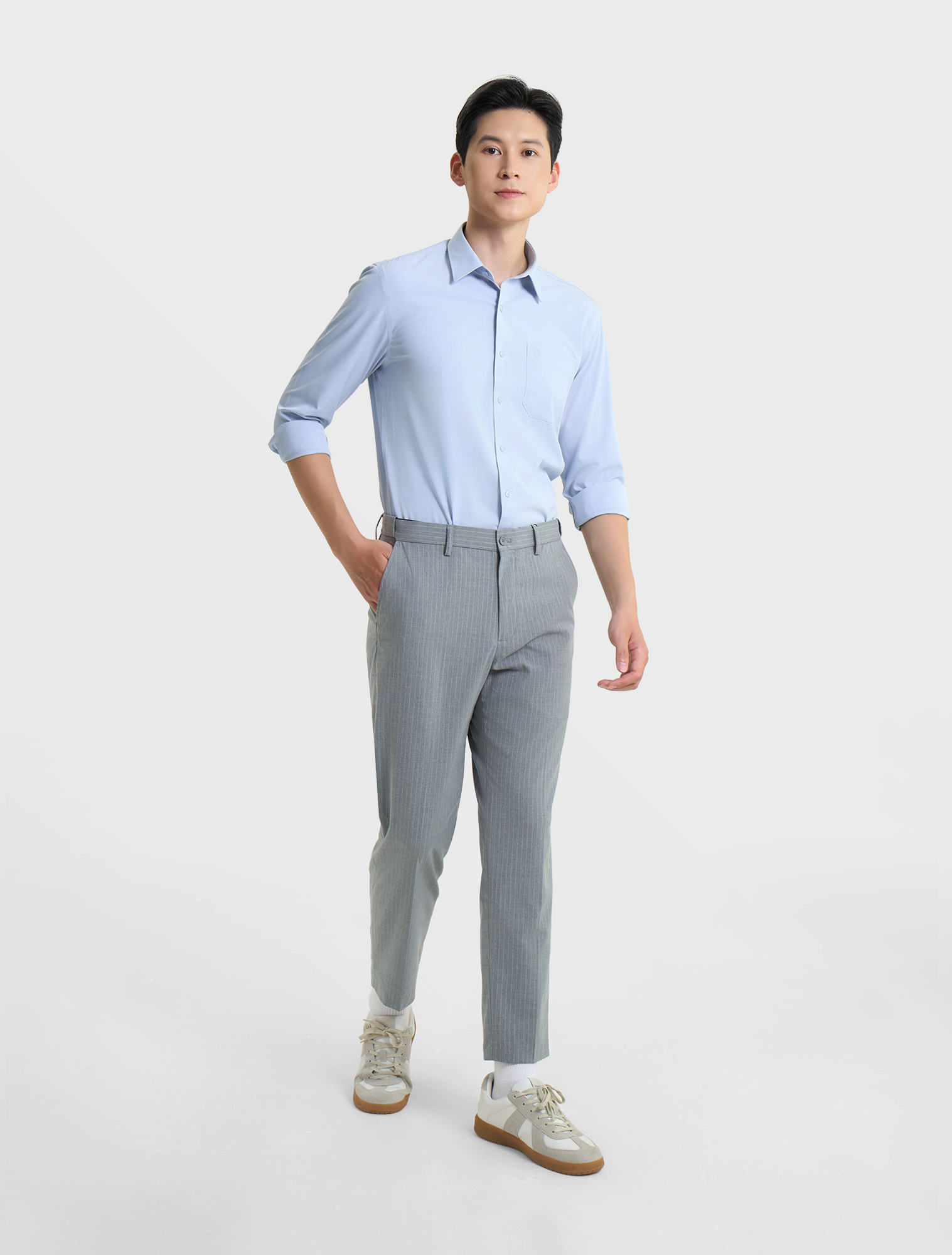 Áo sơ mi nam dài tay dáng suông, phong cách smart casual, thiết kế tối giản, thanh lịch phù hợp đi làm, gặp gỡ hay sự kiện nhẹ.