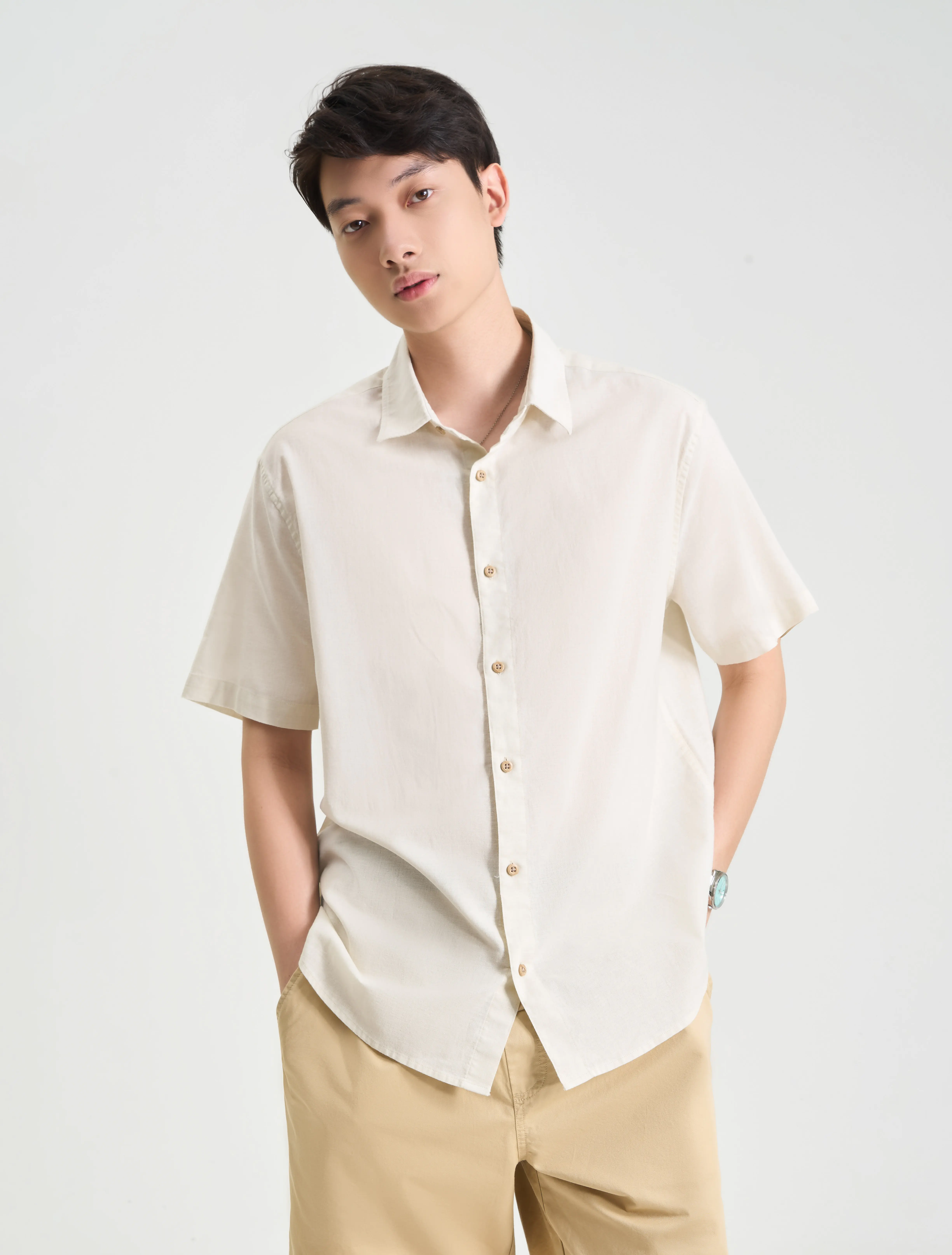 Áo sơ mi nam phom regular kết hợp kiểu dáng basic phù hợp nhiều hoàn cảnh và dễ dàng kết hợp.