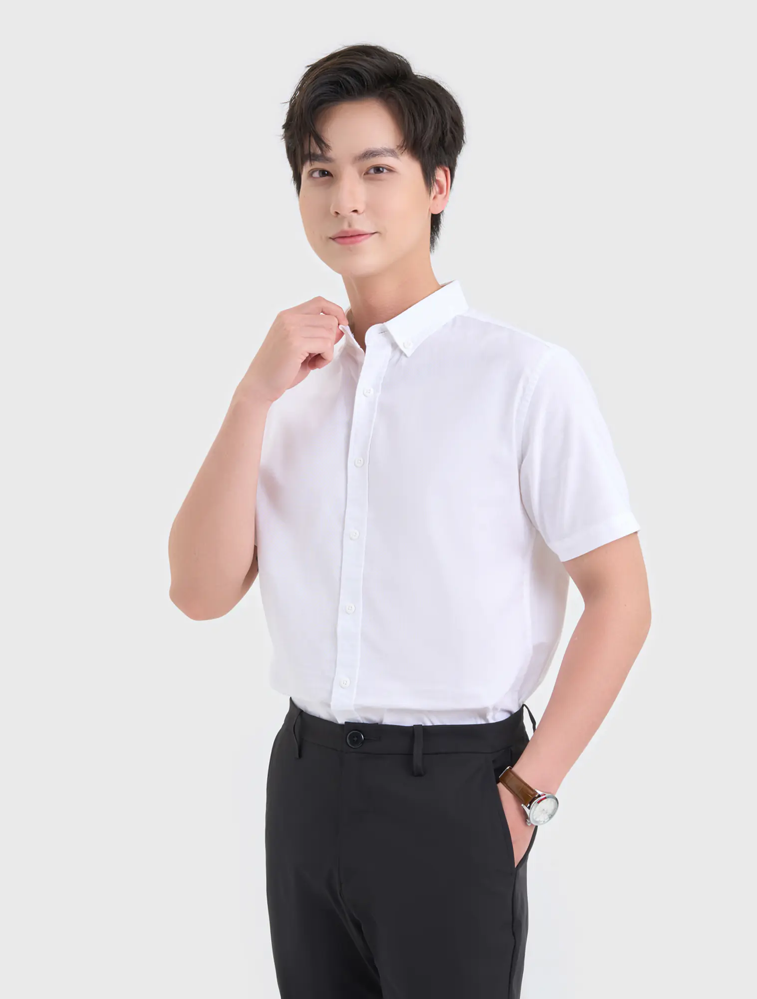 Áo sơ mi nam phom regular, chất liệu 100% cotton,