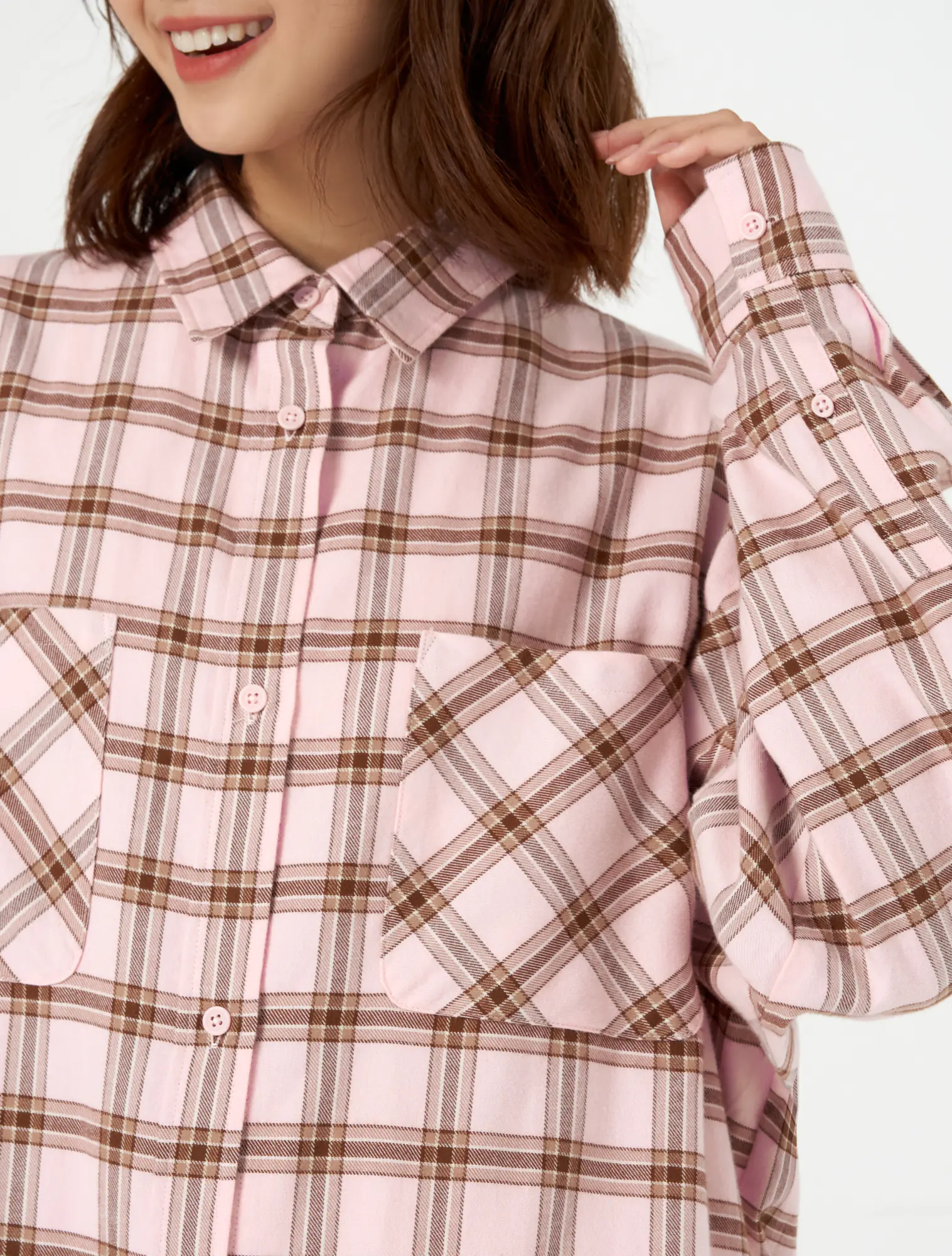 Áo sơ mi chất liệu 100% cotton, cổ đức túi ốp ngực, vạt đuôi tôm.