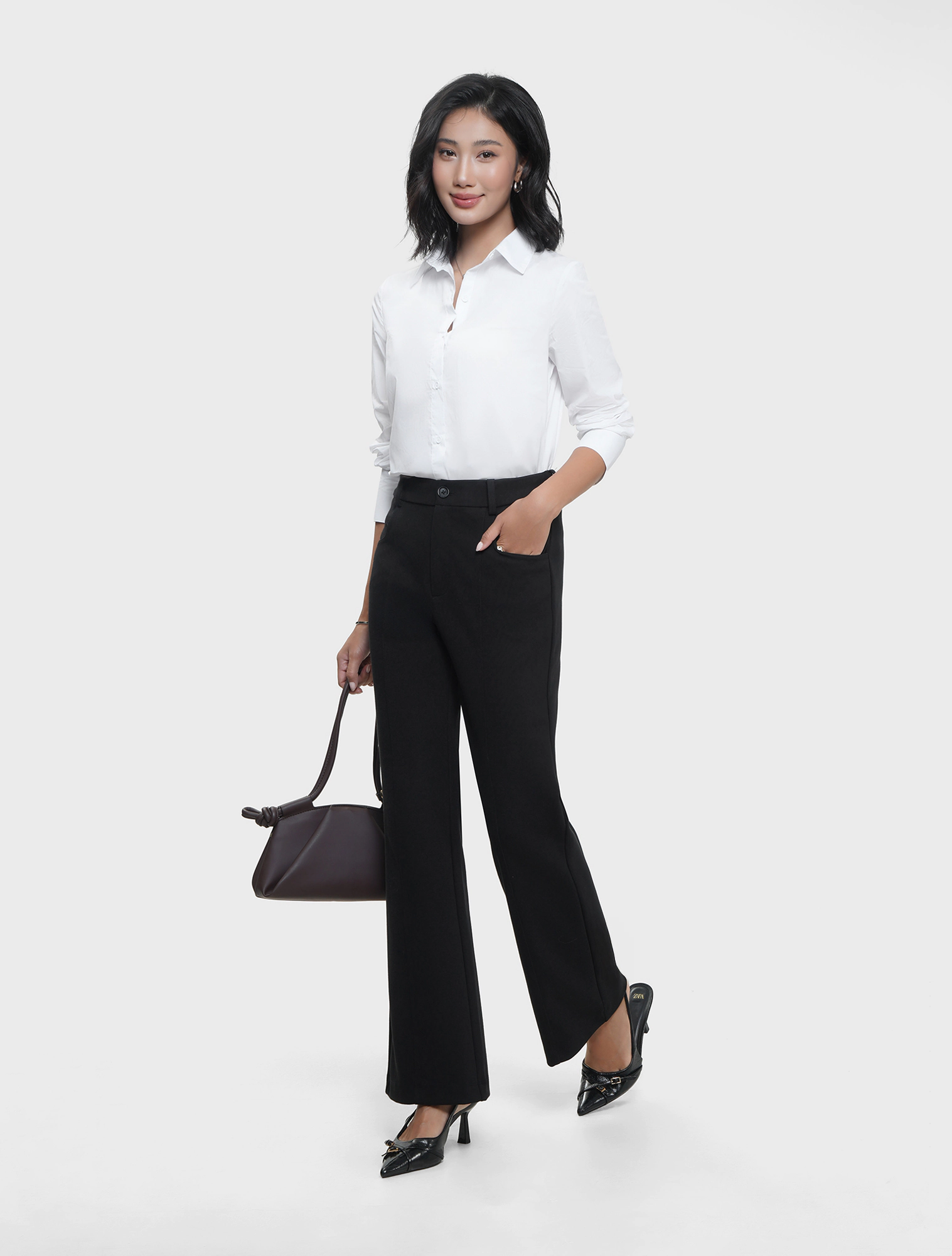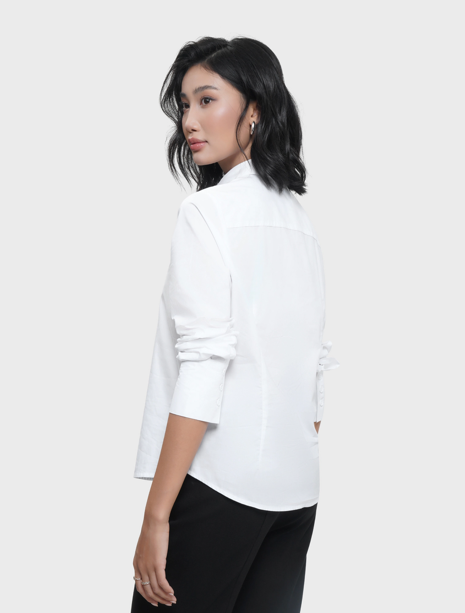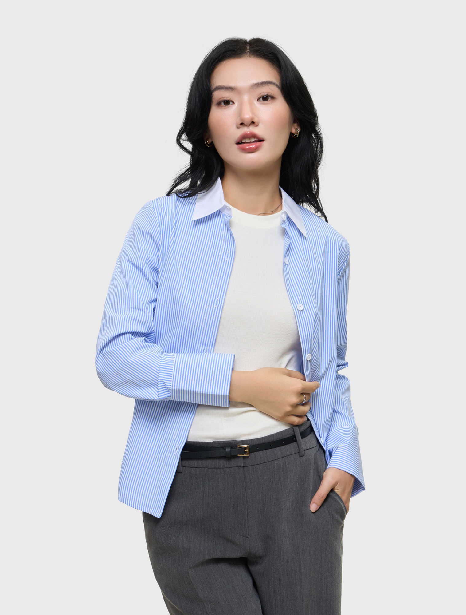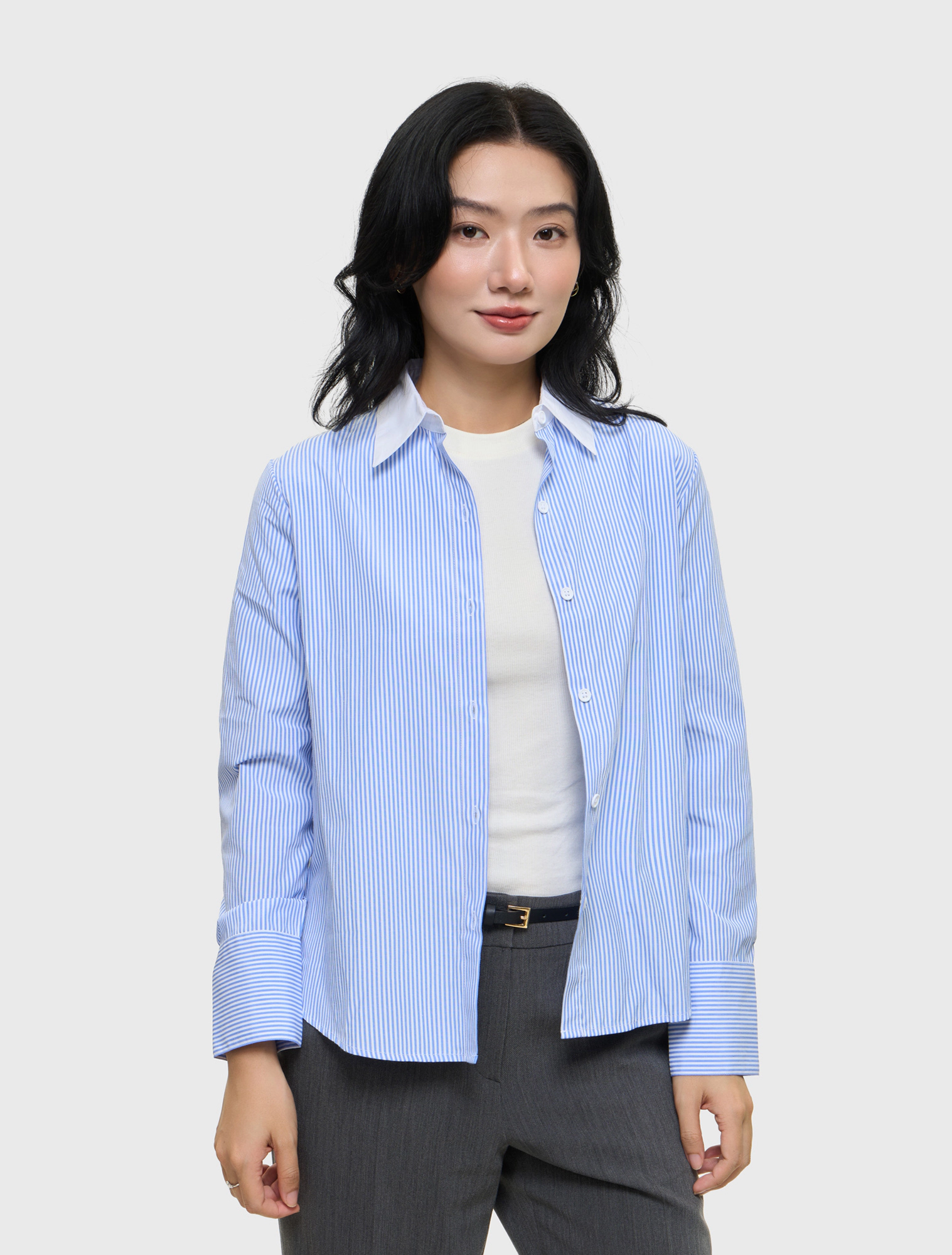 Áo sơ mi nữ dài tay, dáng hơi eo. Kiểu dáng basic phù hợp nhiều hoàn cảnh và dễ dàng kết hợp. Áo có nền màu trơn, nền màu kẻ mang lại nhiều lựa chọn hơn cho khách hàng.