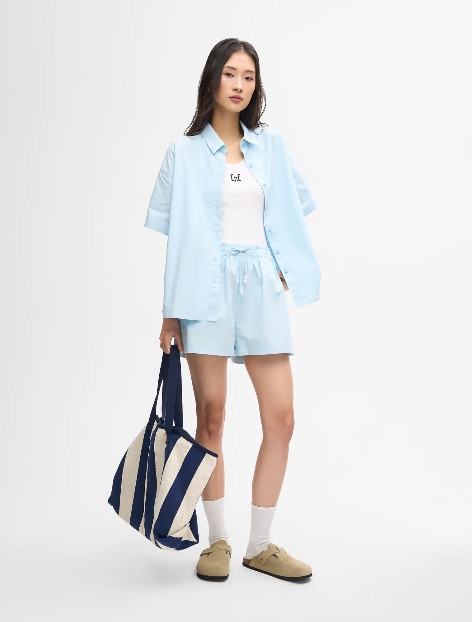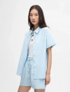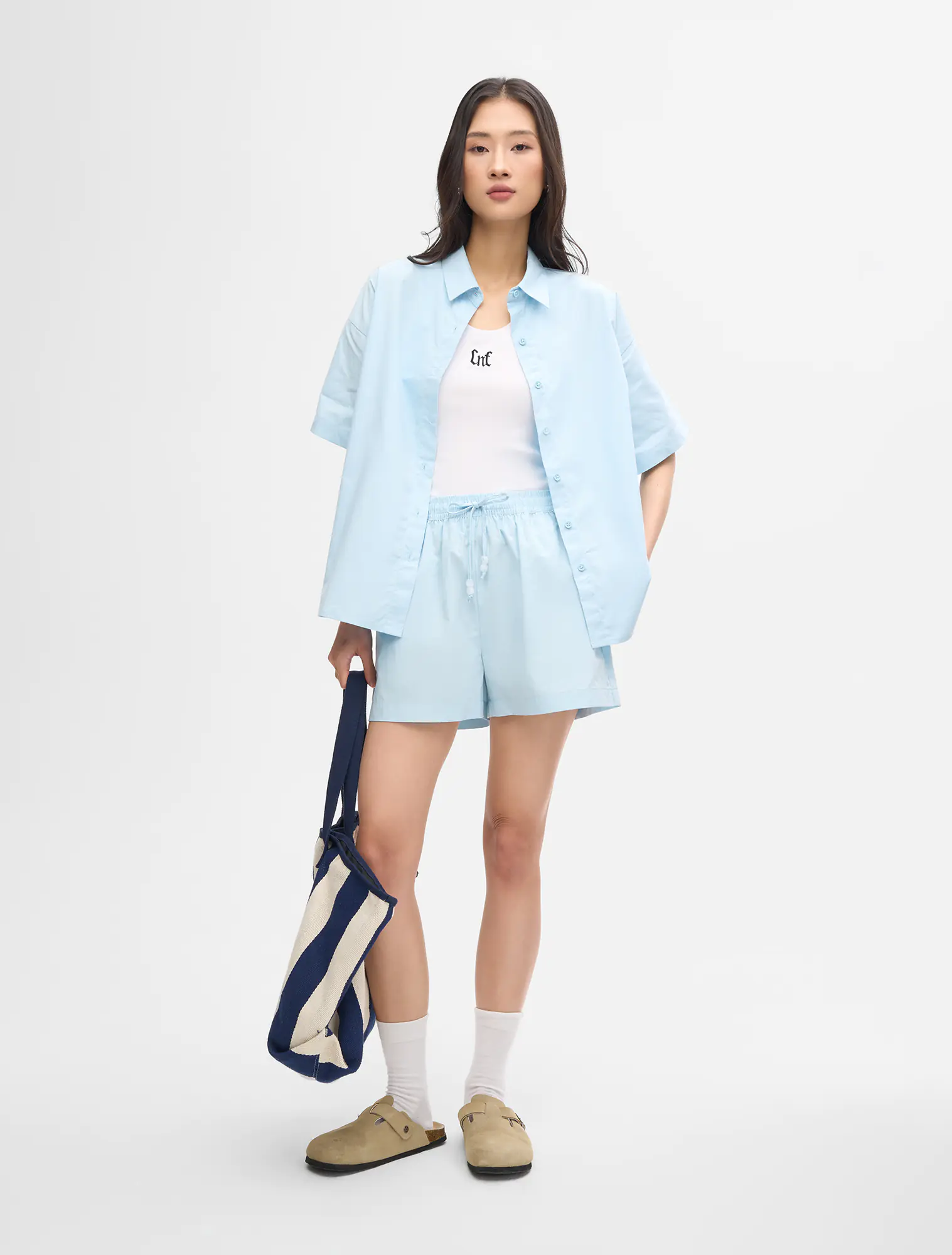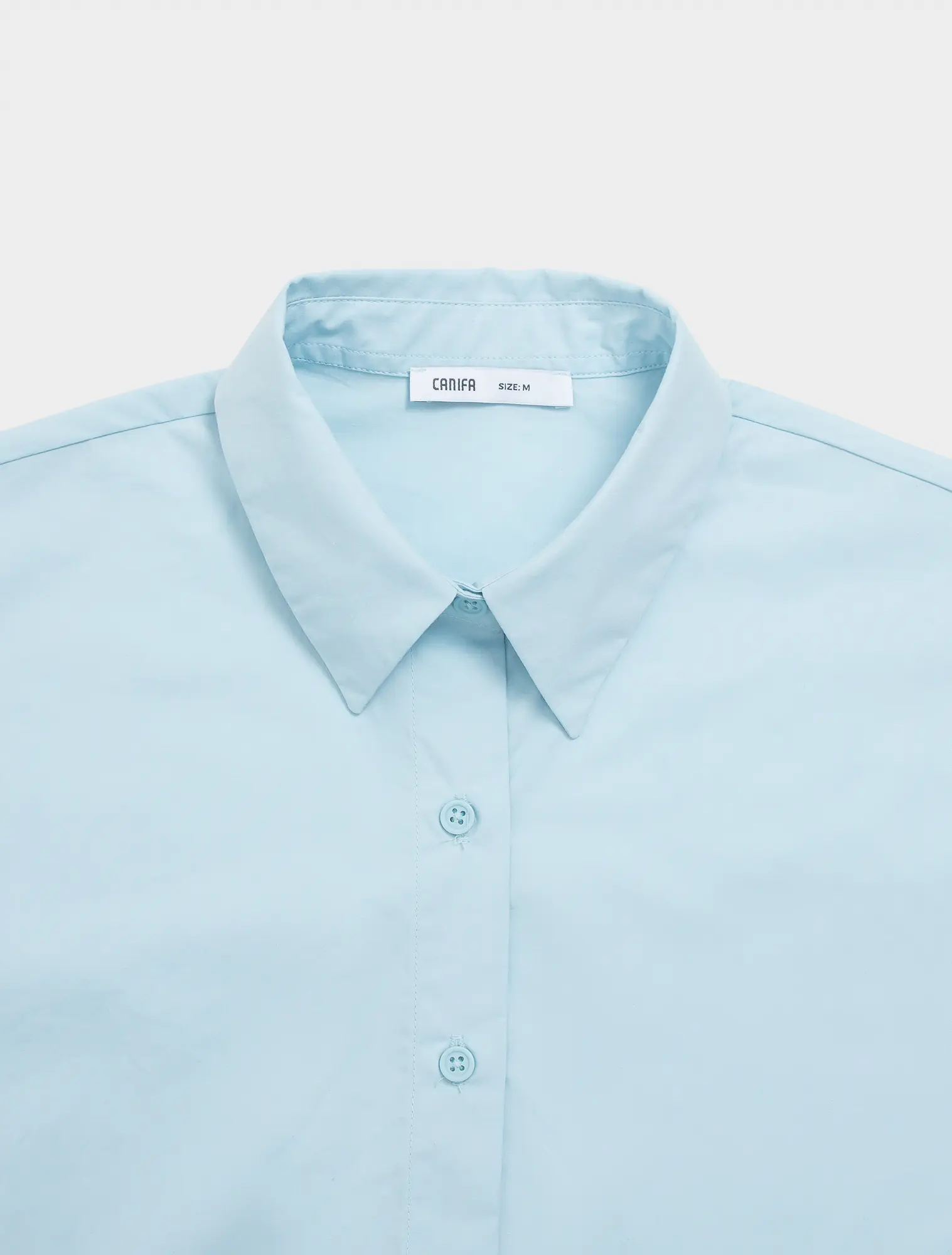 Áo sơ mi nữ ngắn tay, cổ đức, có hình in, phom suông rộng. Chất liệu mềm mại, phù hợp đi chơi, dạo phố.