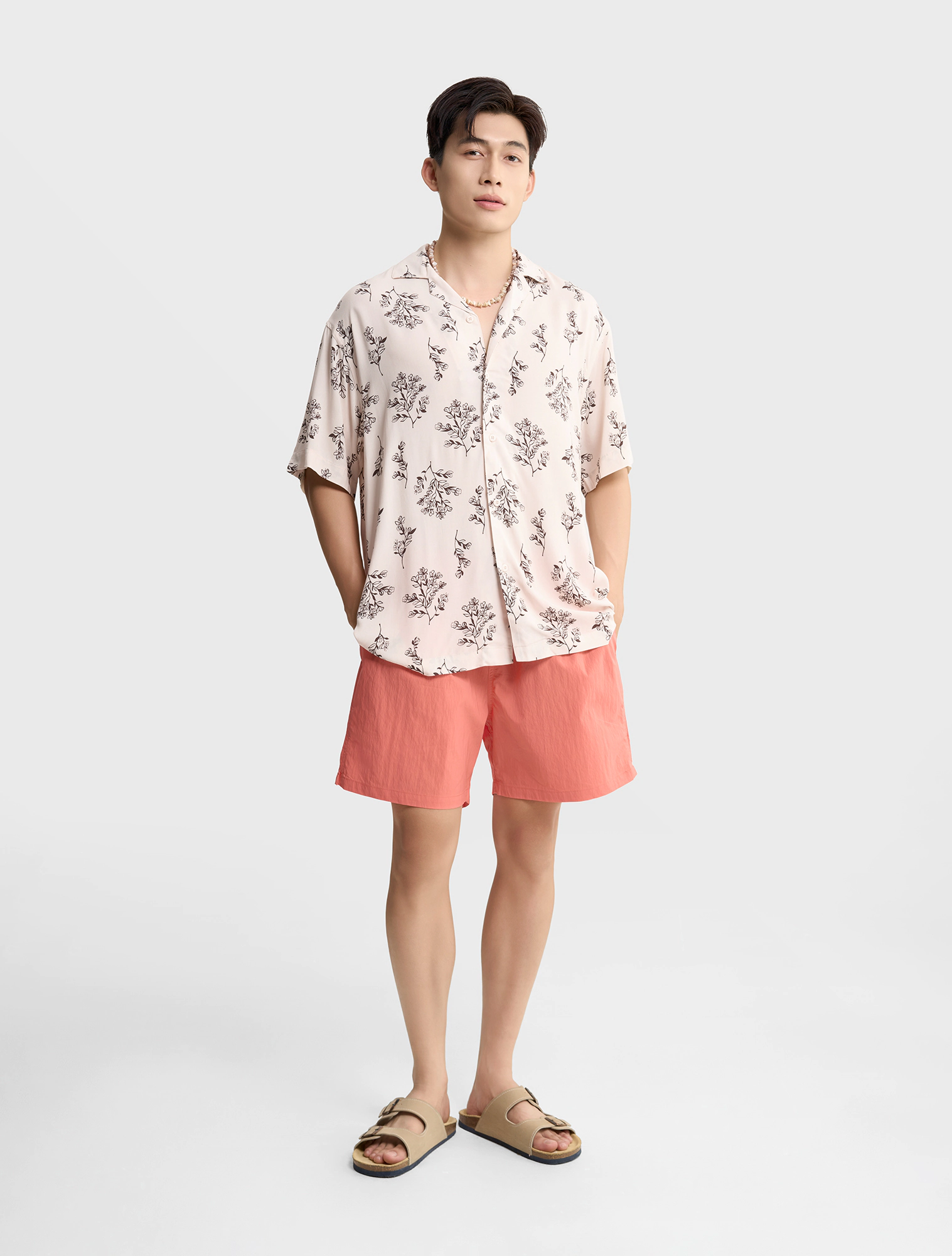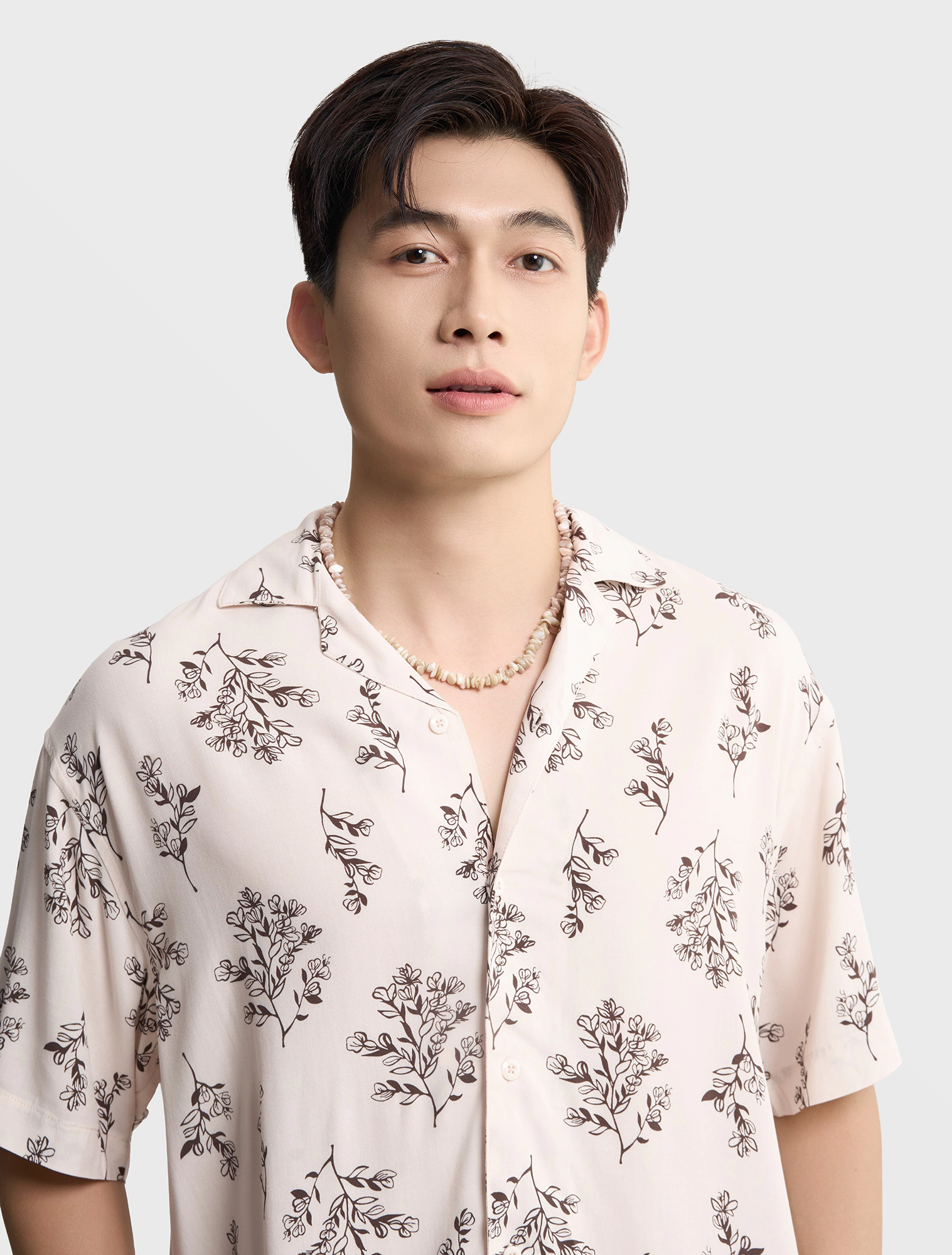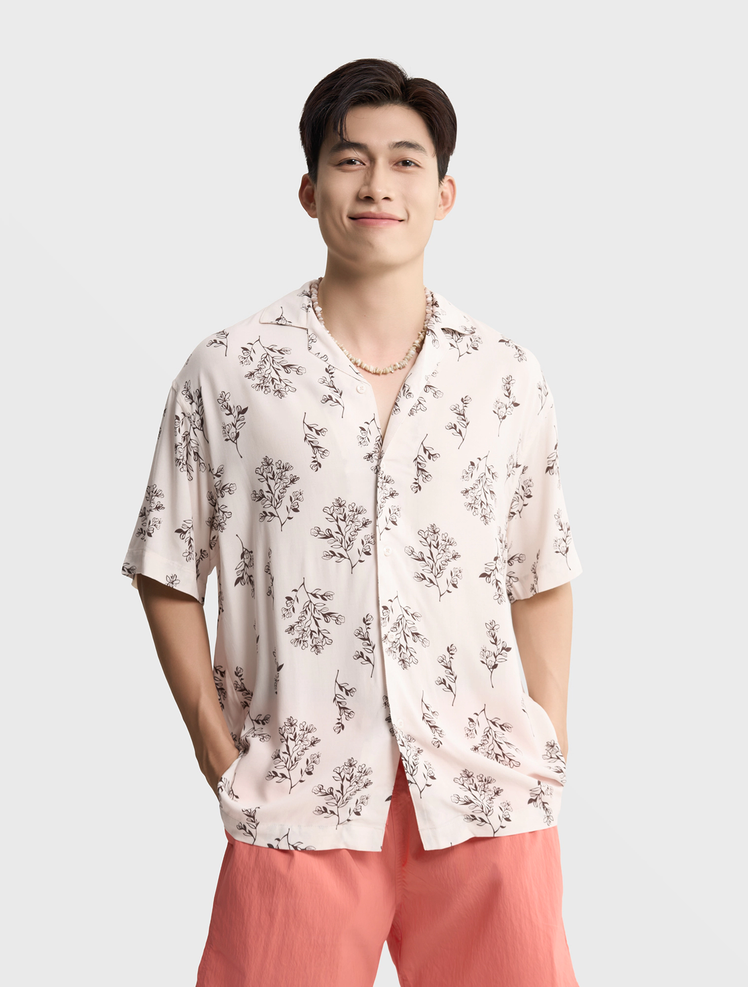 Áo sơ mi nam viscose dáng rộng hoạ tiết