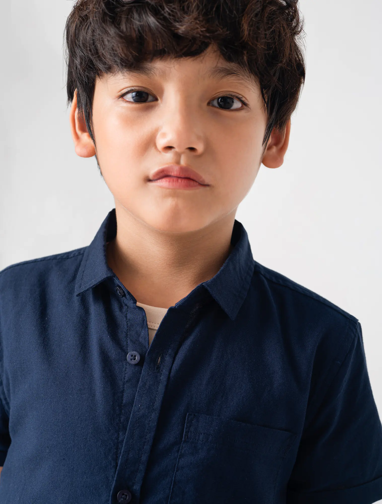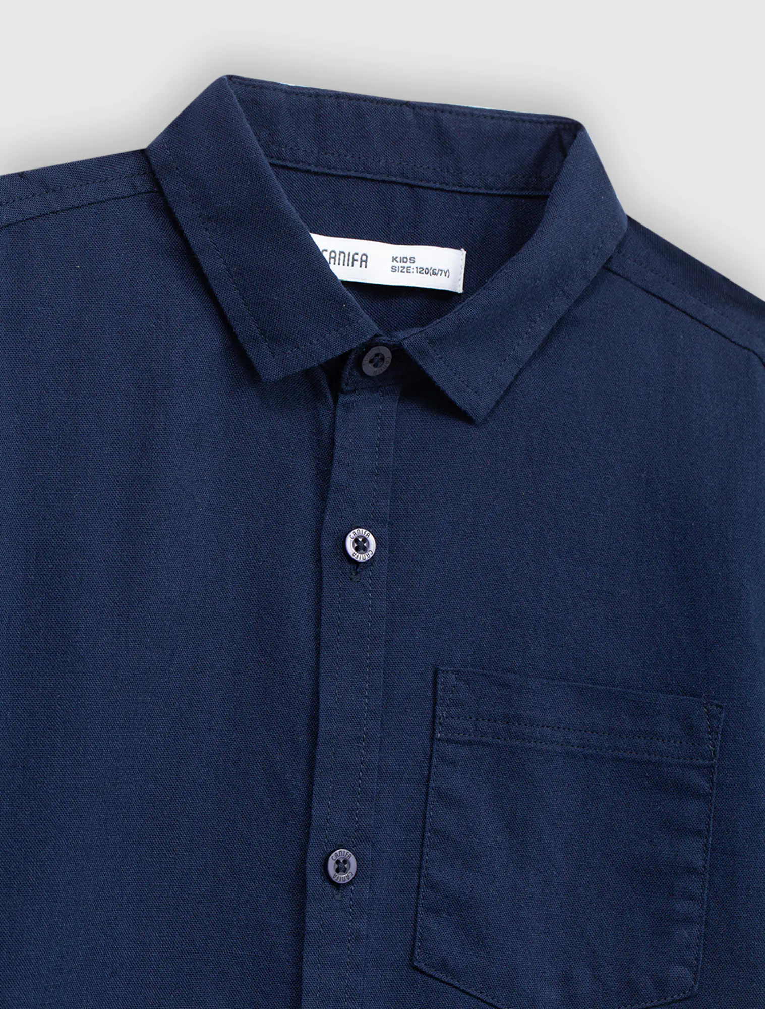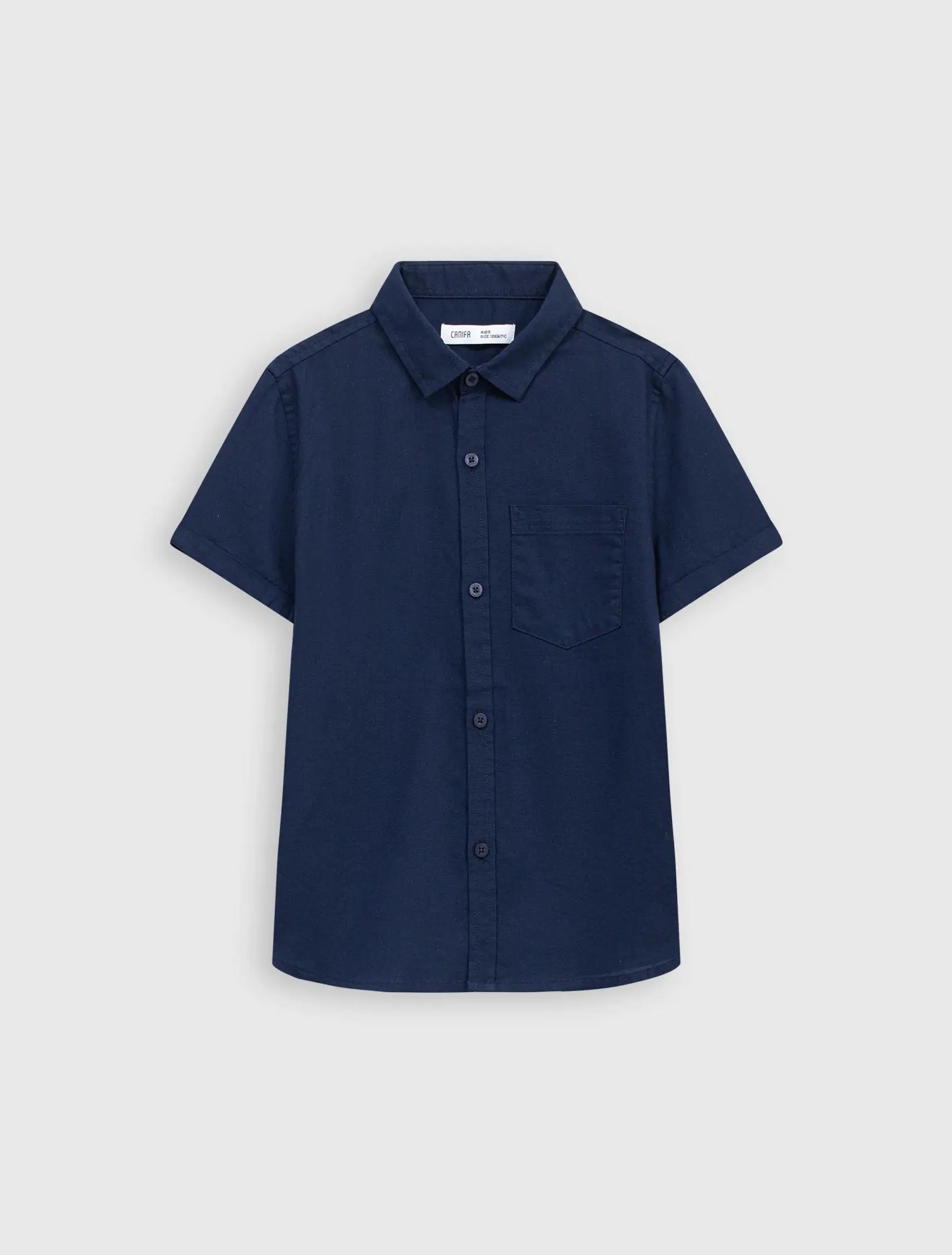 Áo sơ mi bé trai cotton cổ đức cộc tay túi ốp ngực