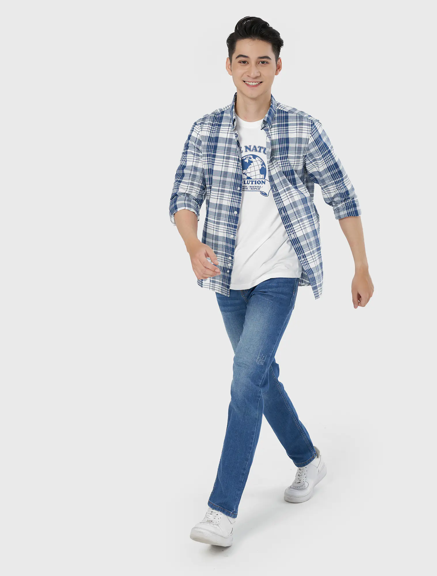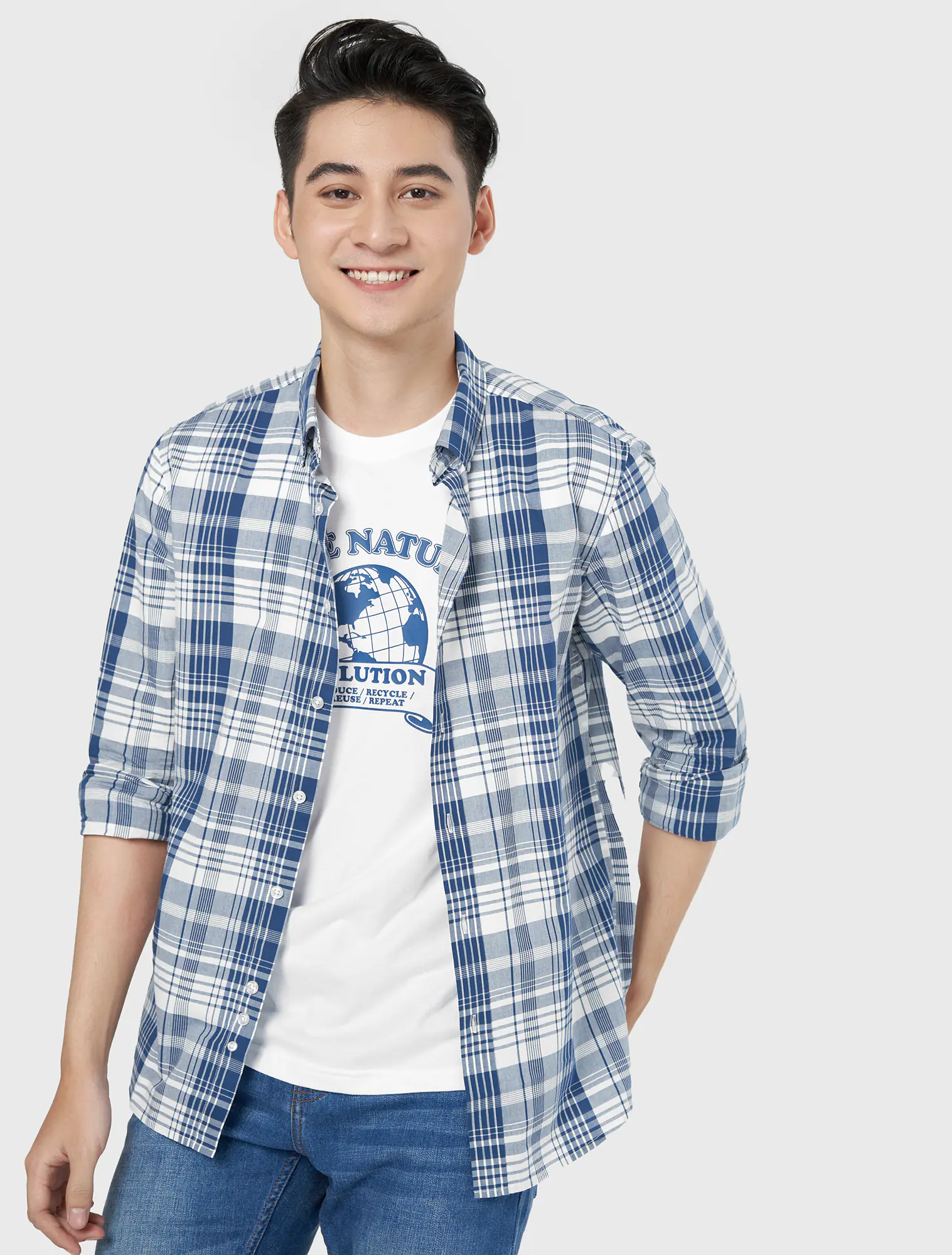 Áo sơ mi chất liệu 100% cotton USA, họa tiết kẻ caro