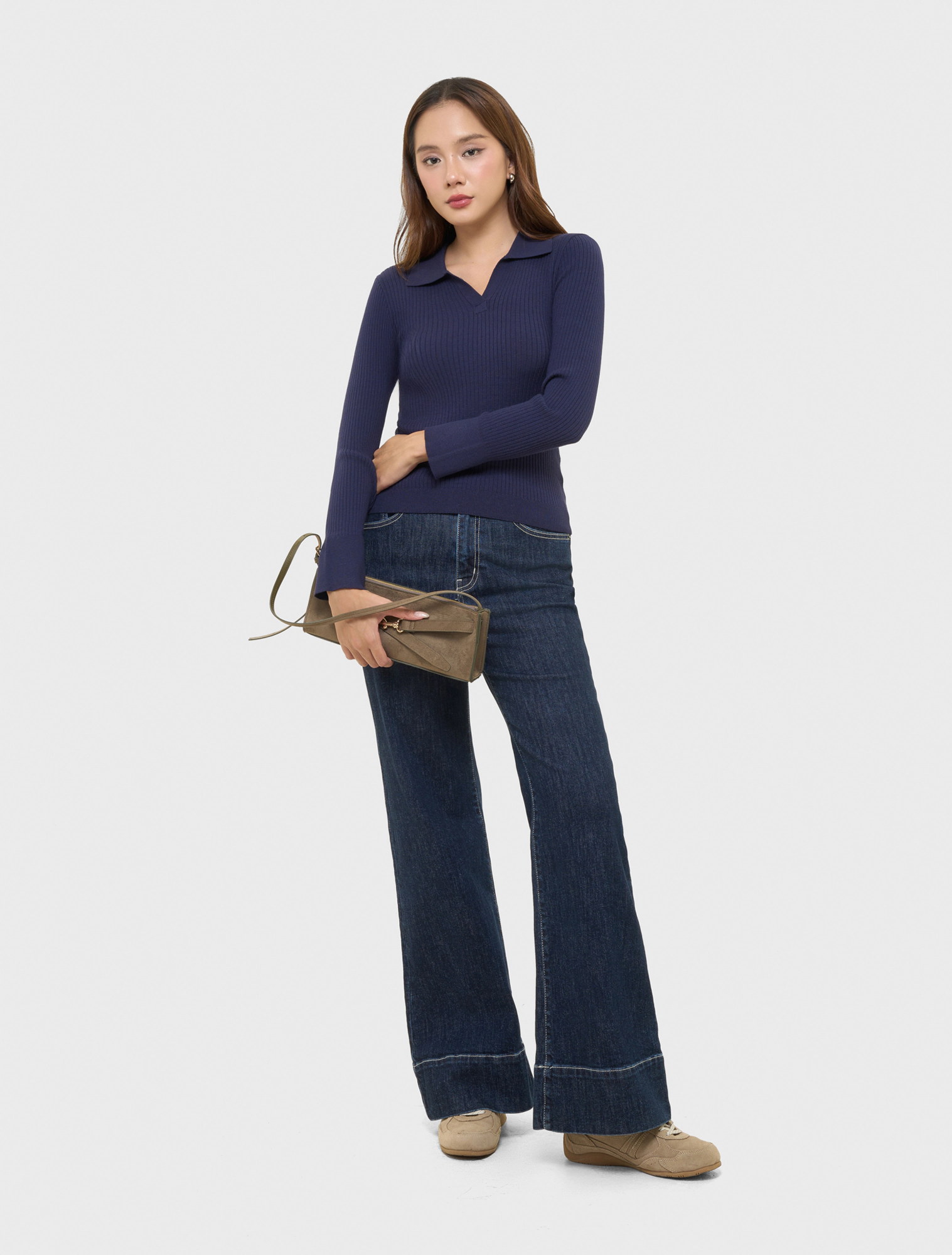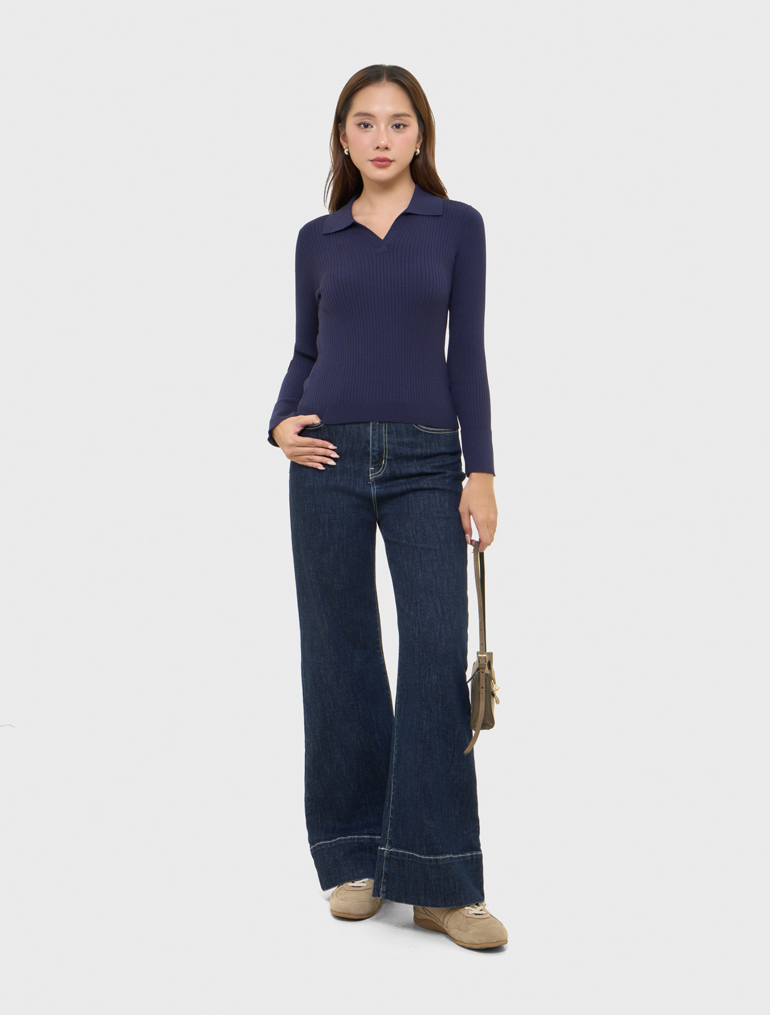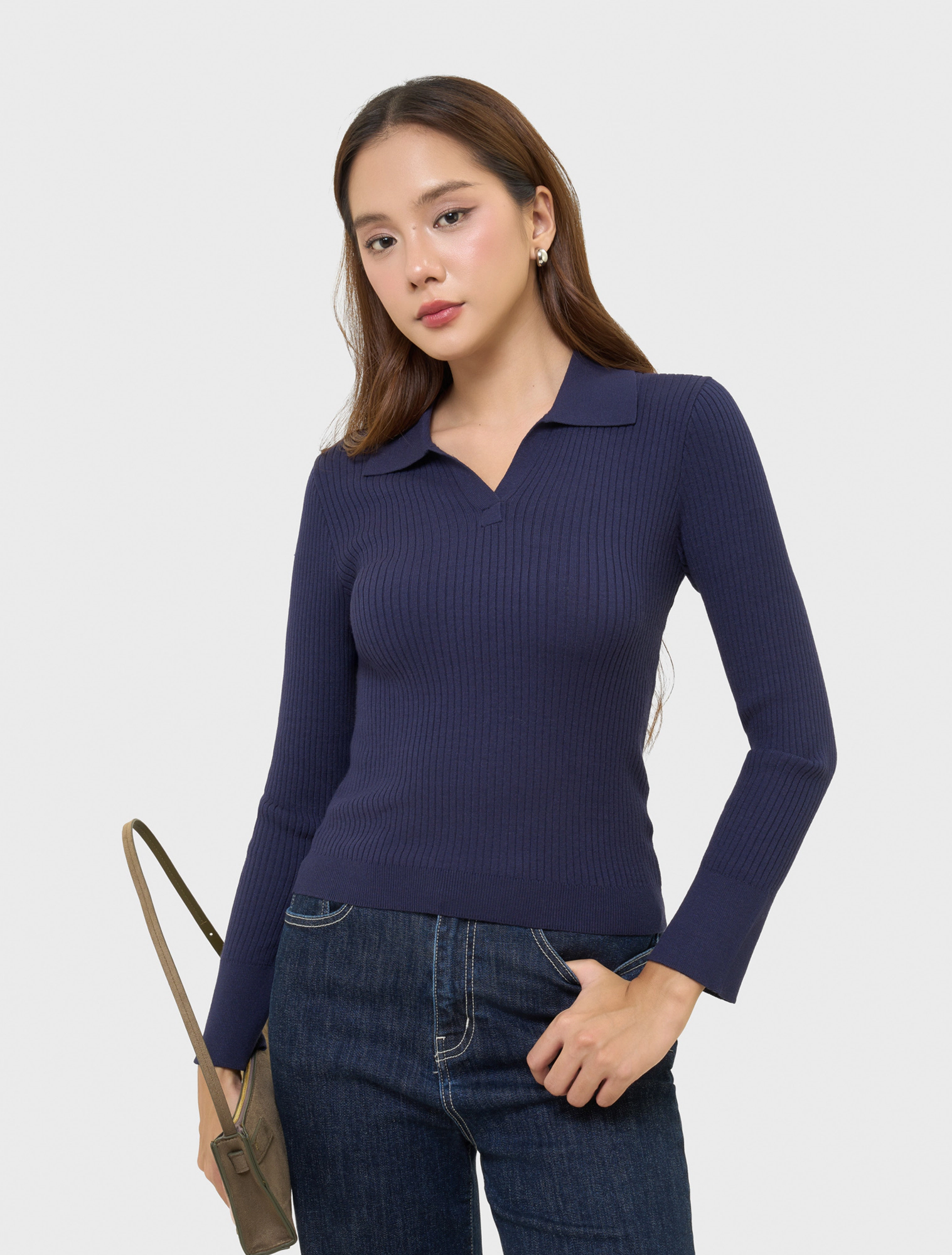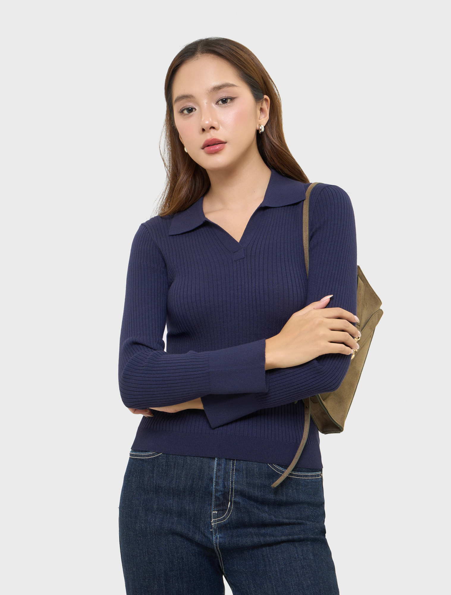 Áo len nữ dài tay, cổ bẻ.