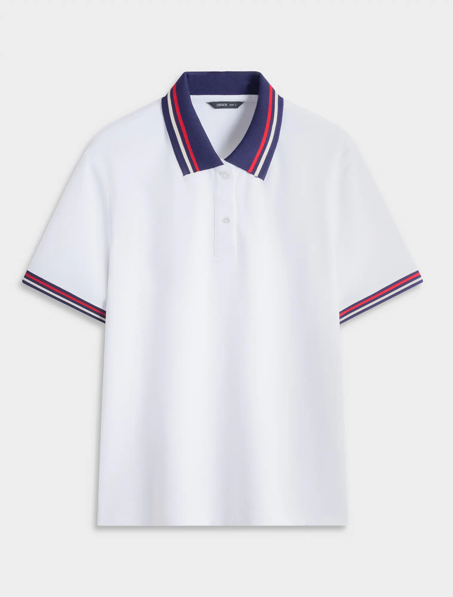 Áo polo nữ dáng basic với điểm nhấn là phần cổ kẻ phối màu. Sản phẩm là một lựa chọn mới mẻ cho khách hàng, có thể ứng dụng nhiều hoàn cảnh khác nhau.