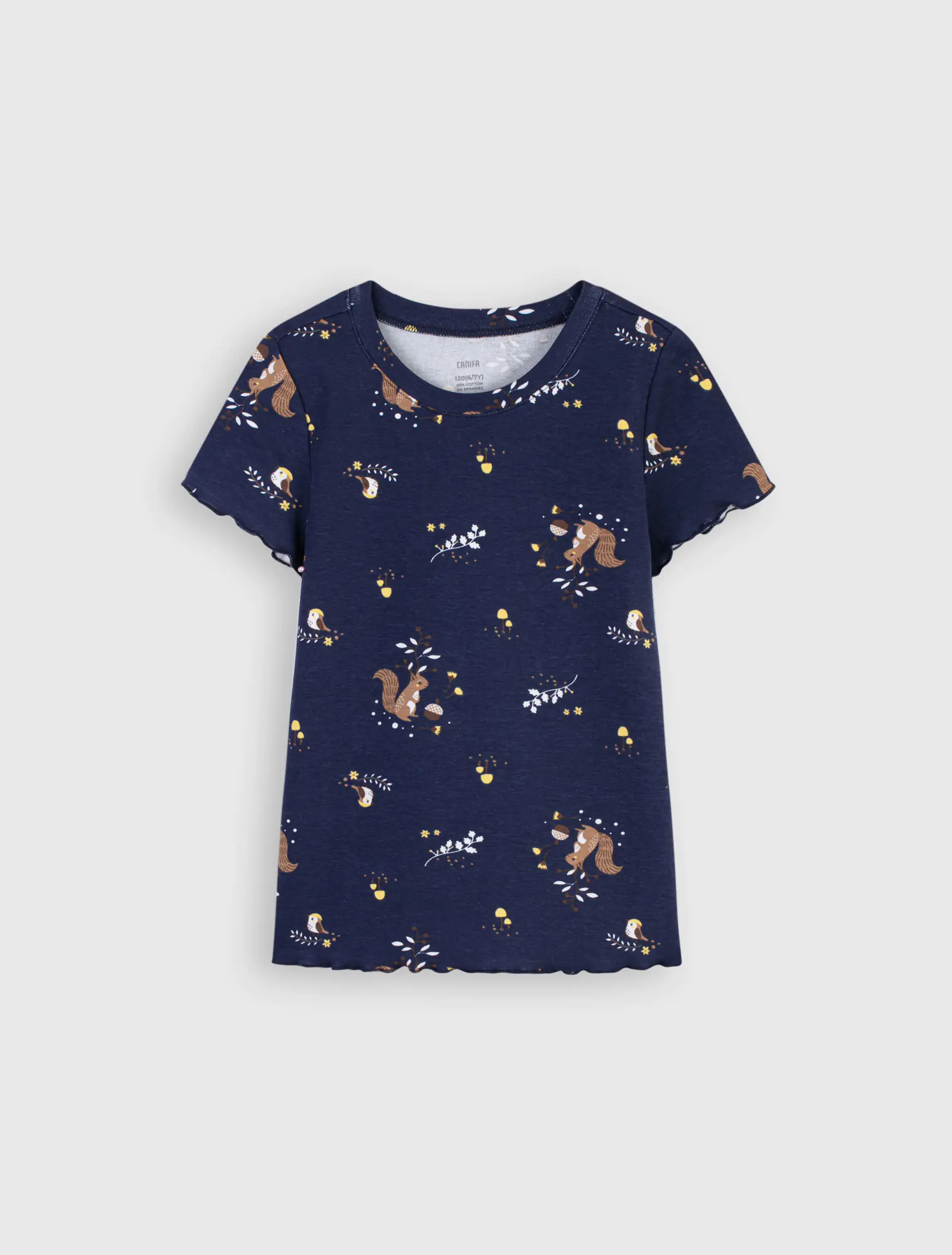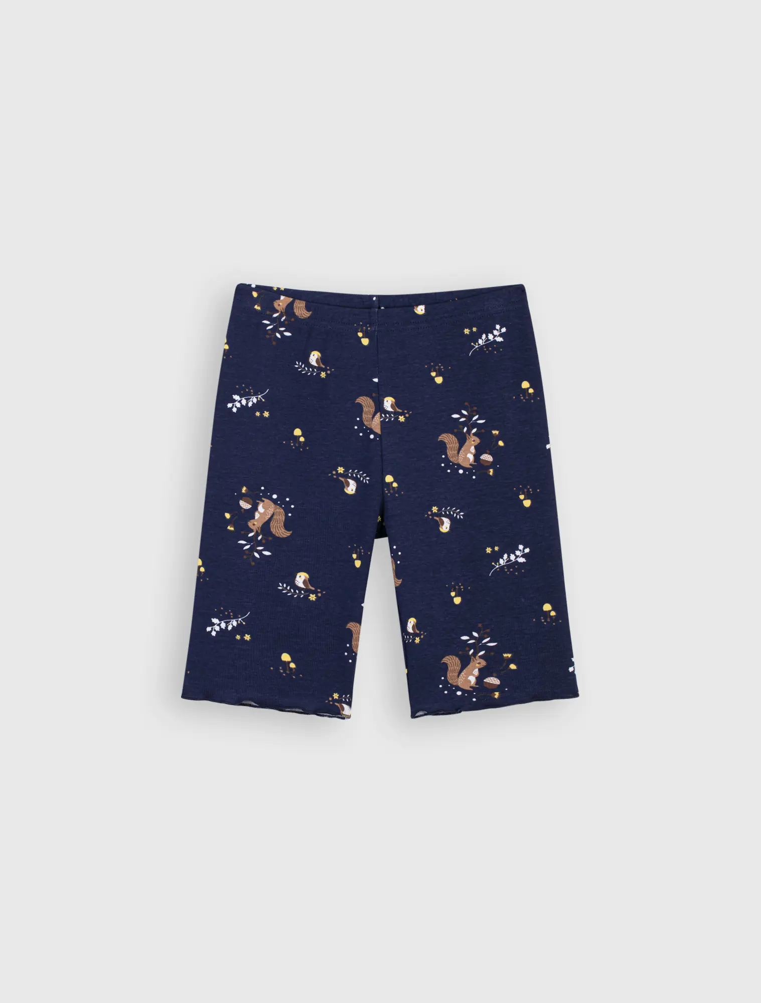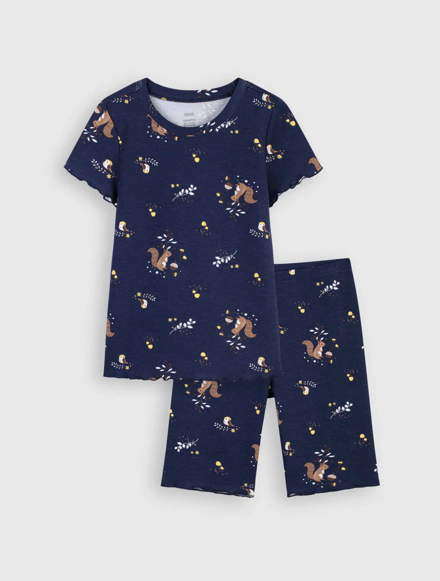Bộ mặc nhà dáng regular, áo cổ tròn tay cộc, quần soóc cạp chun.