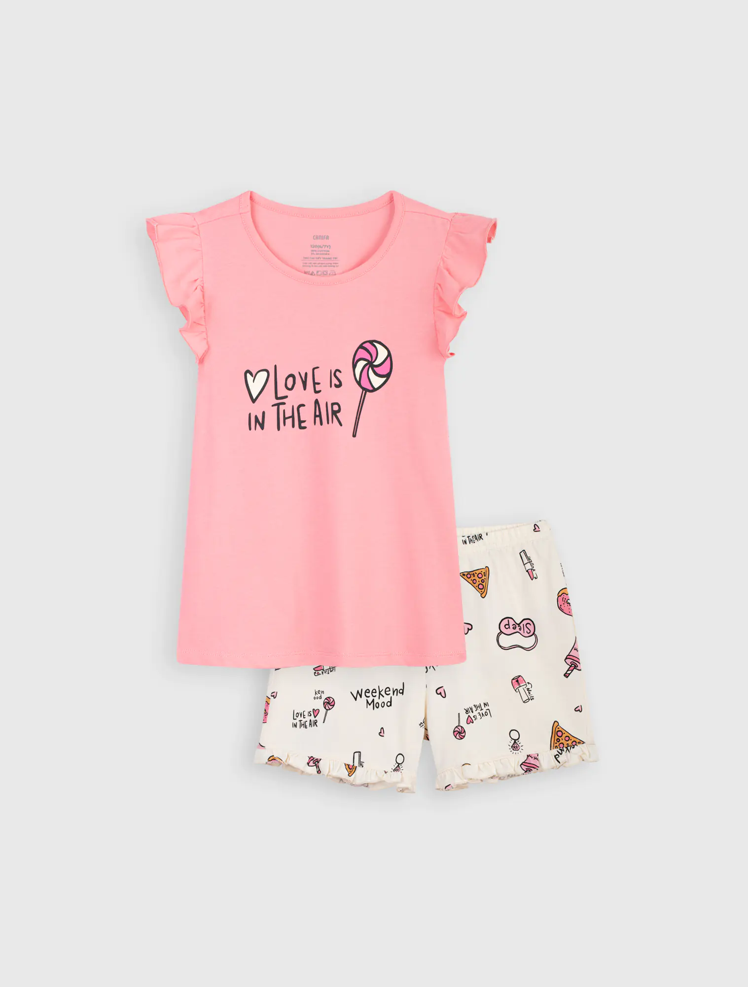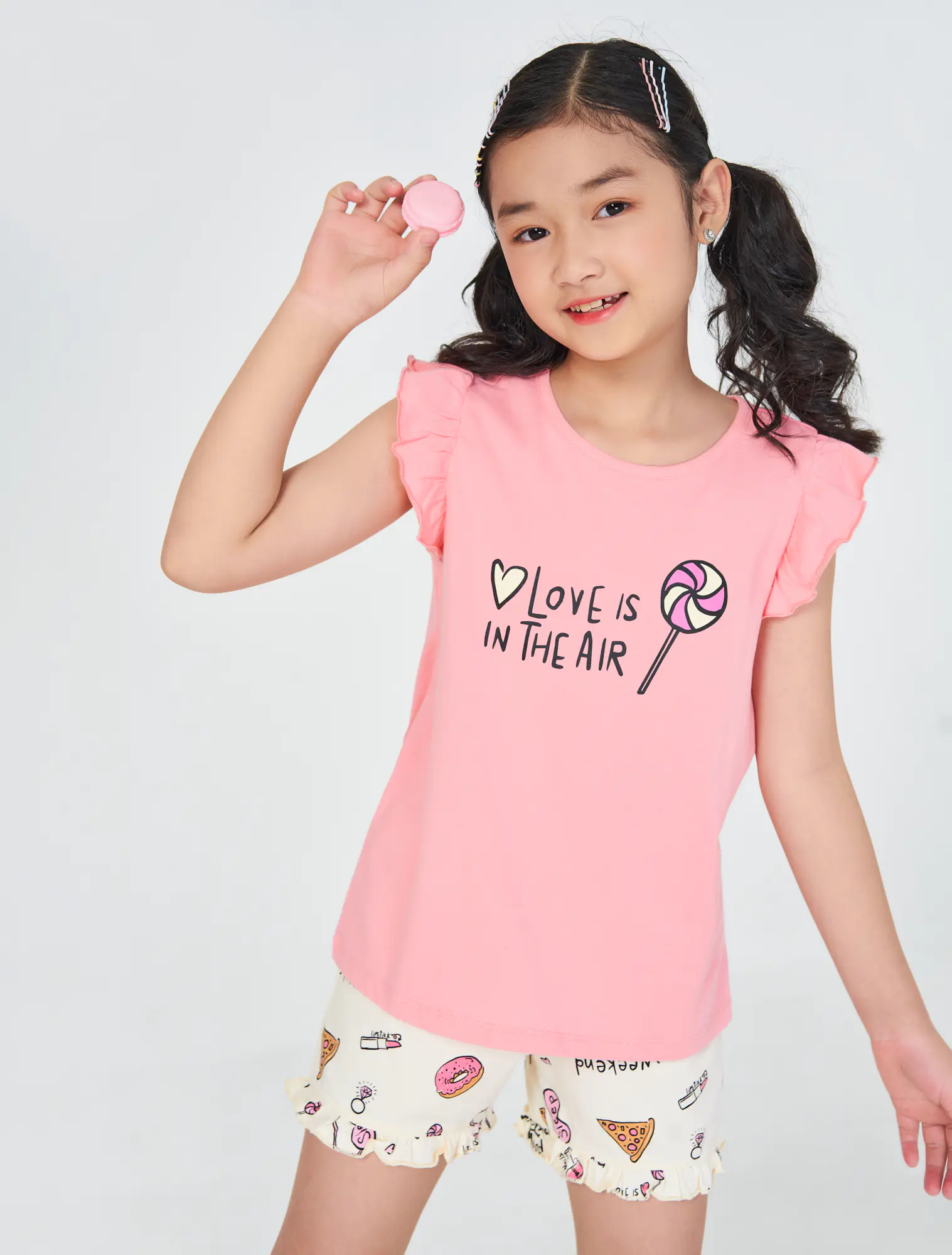 Bộ mặc nhà dành cho bé gái in họa tiết dễ thương form thoải mái cho bé