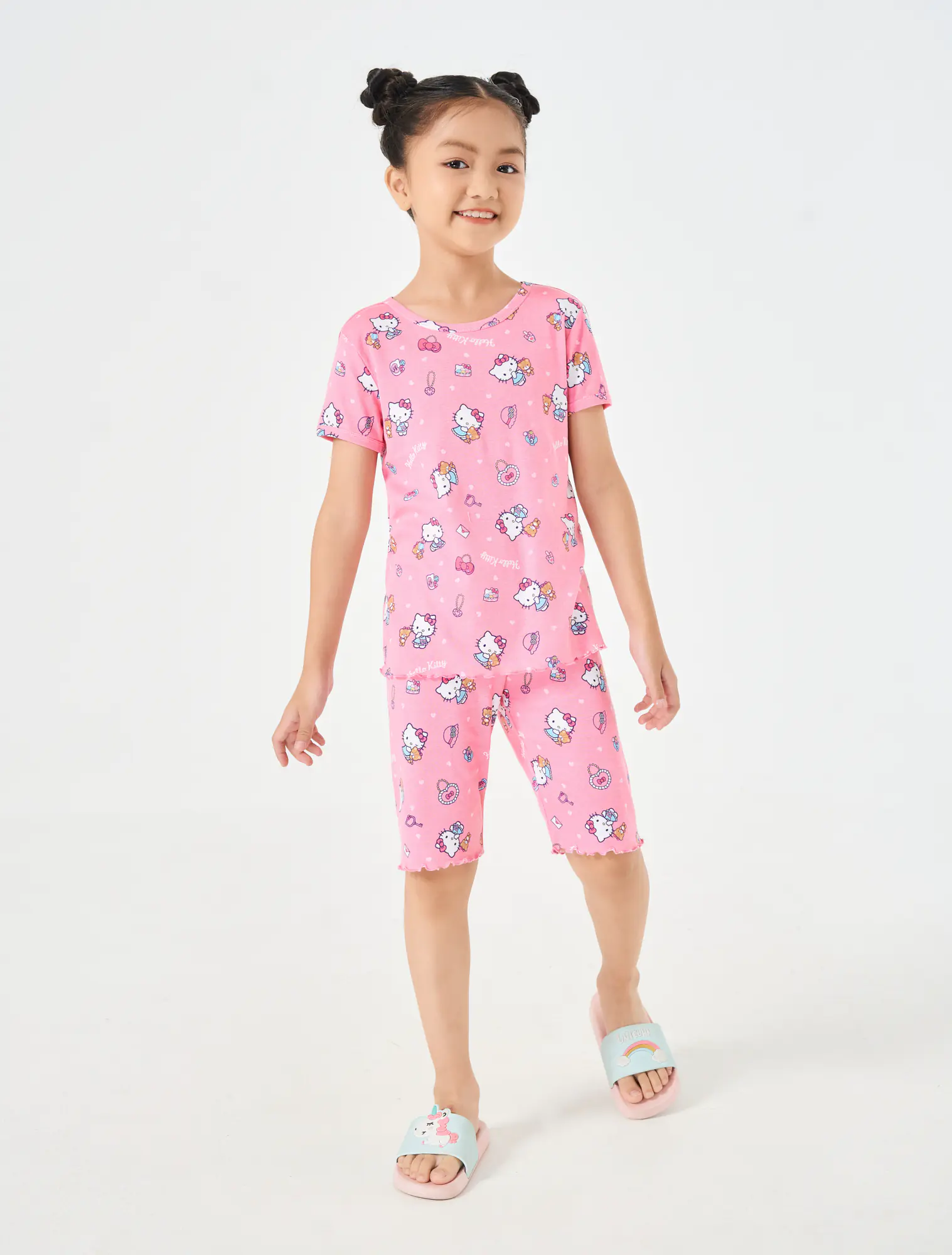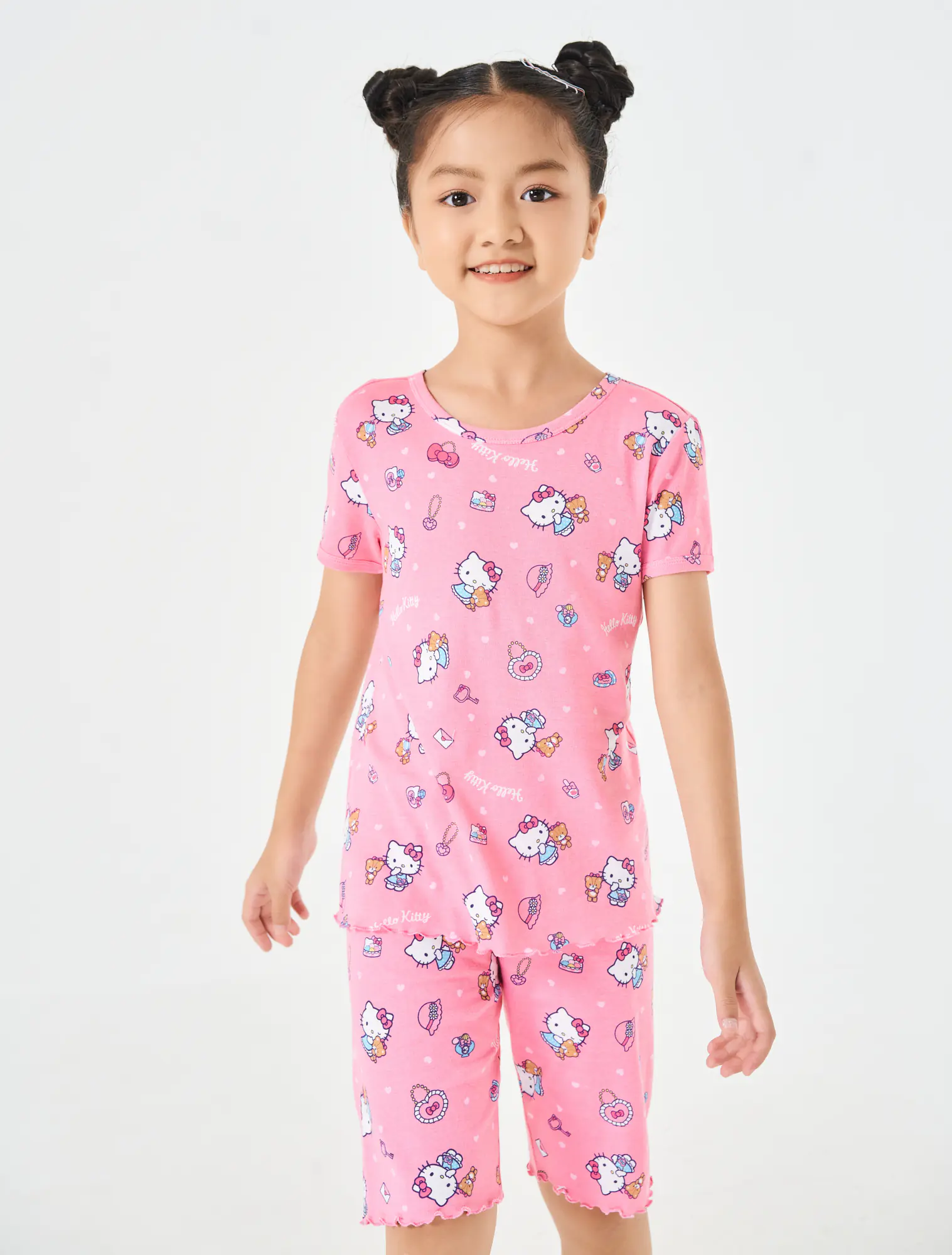 Bộ mặc nhà bé gái in họa tiết dễ thương chất liệu thoáng mát thoải mái.