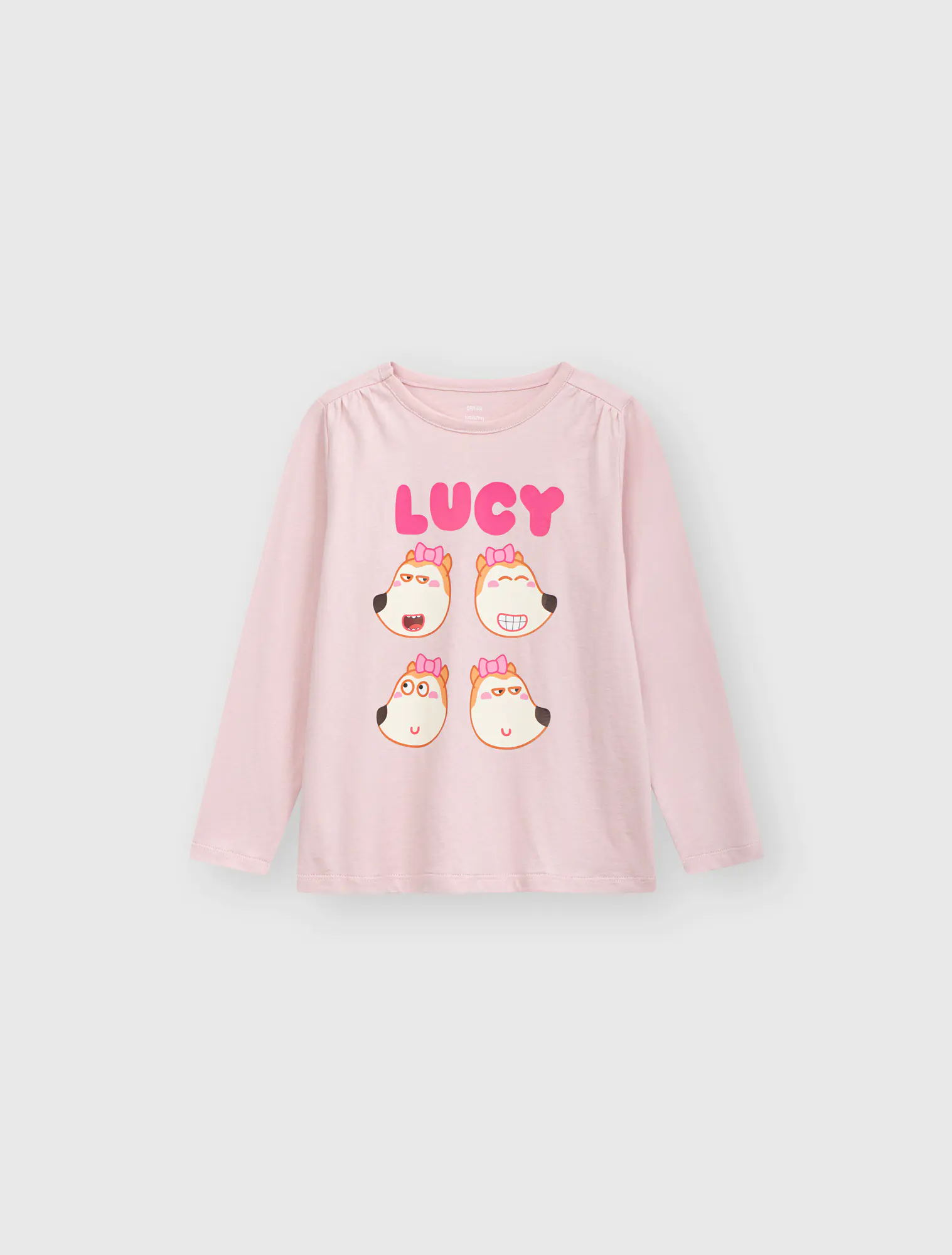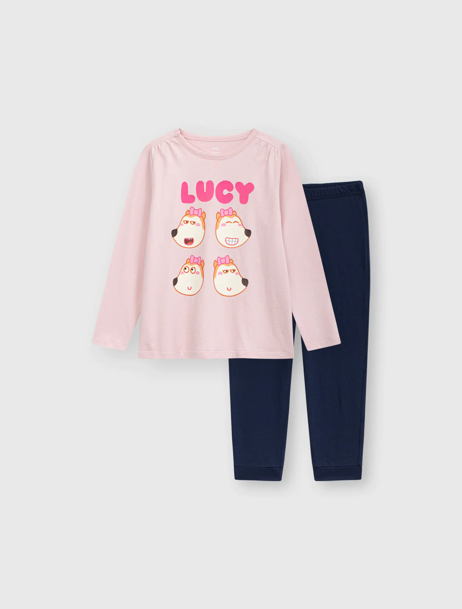 Bộ mặc nhà bé gái, chất liệu cotton mềm mại, hình in nhân vật Wolfoo đáng yêu ngộ nghĩnh, phom dáng cơ bản pha chút nhúm vai điệu đà cho bé gái, phù hợp mặc trong thời tiết giao mùa.