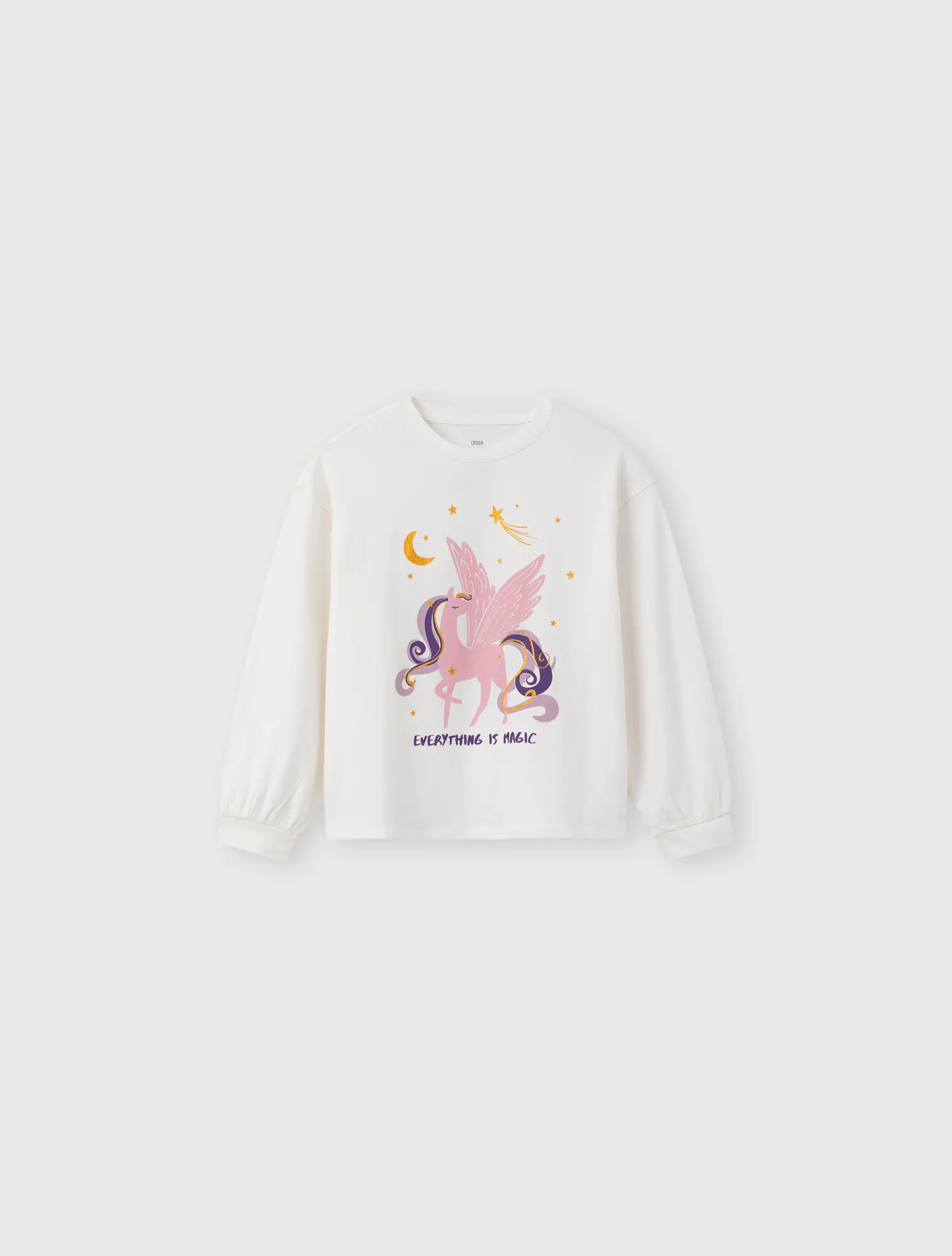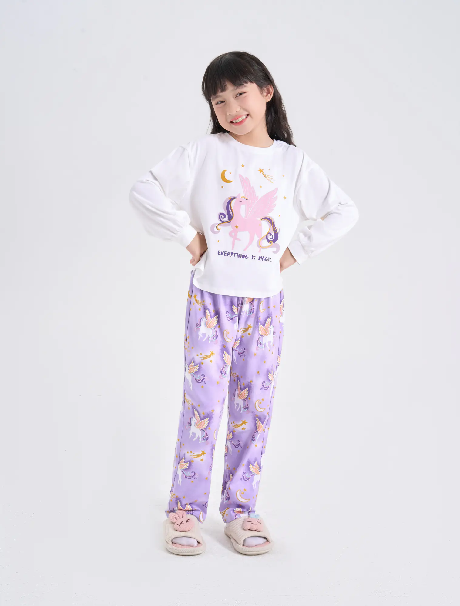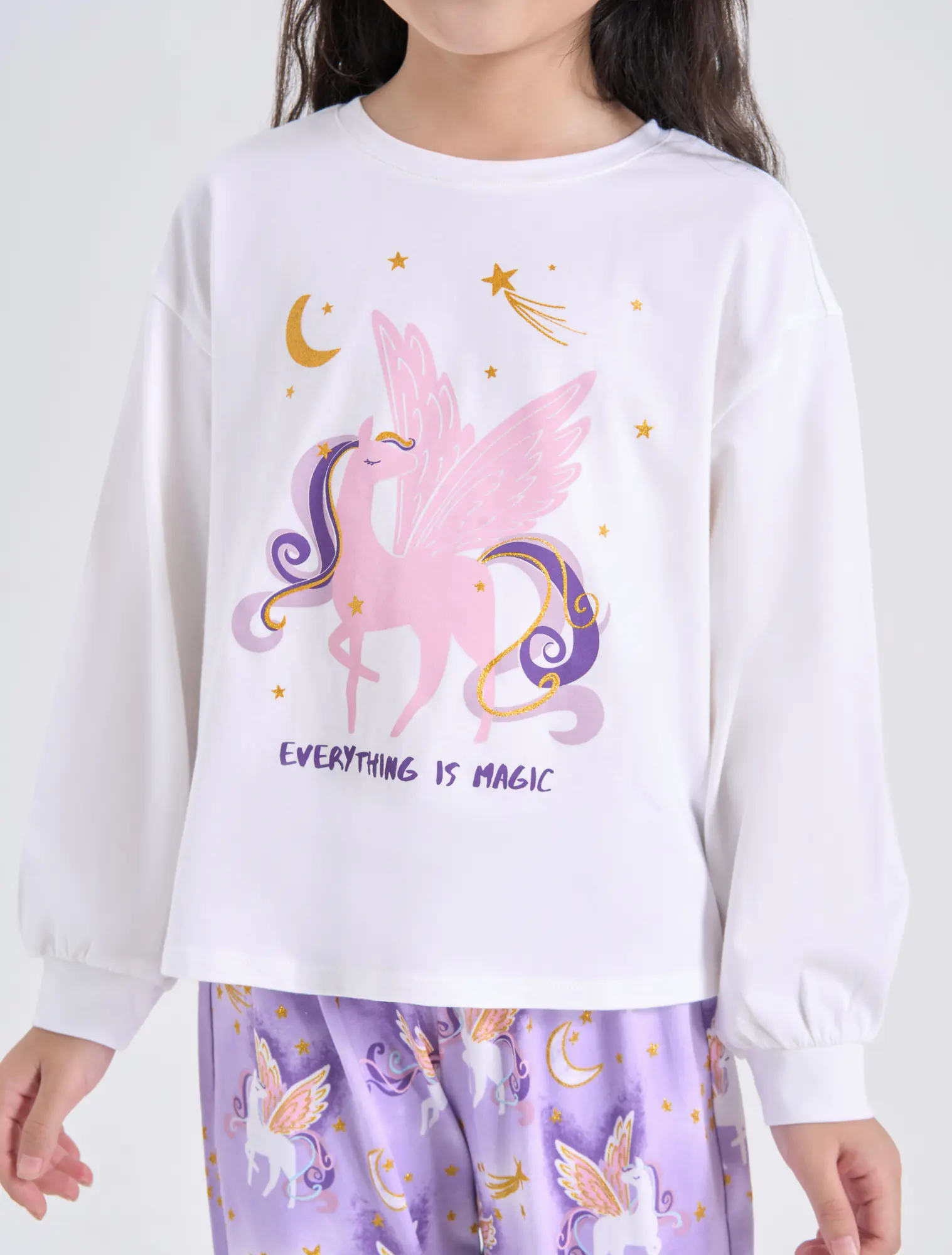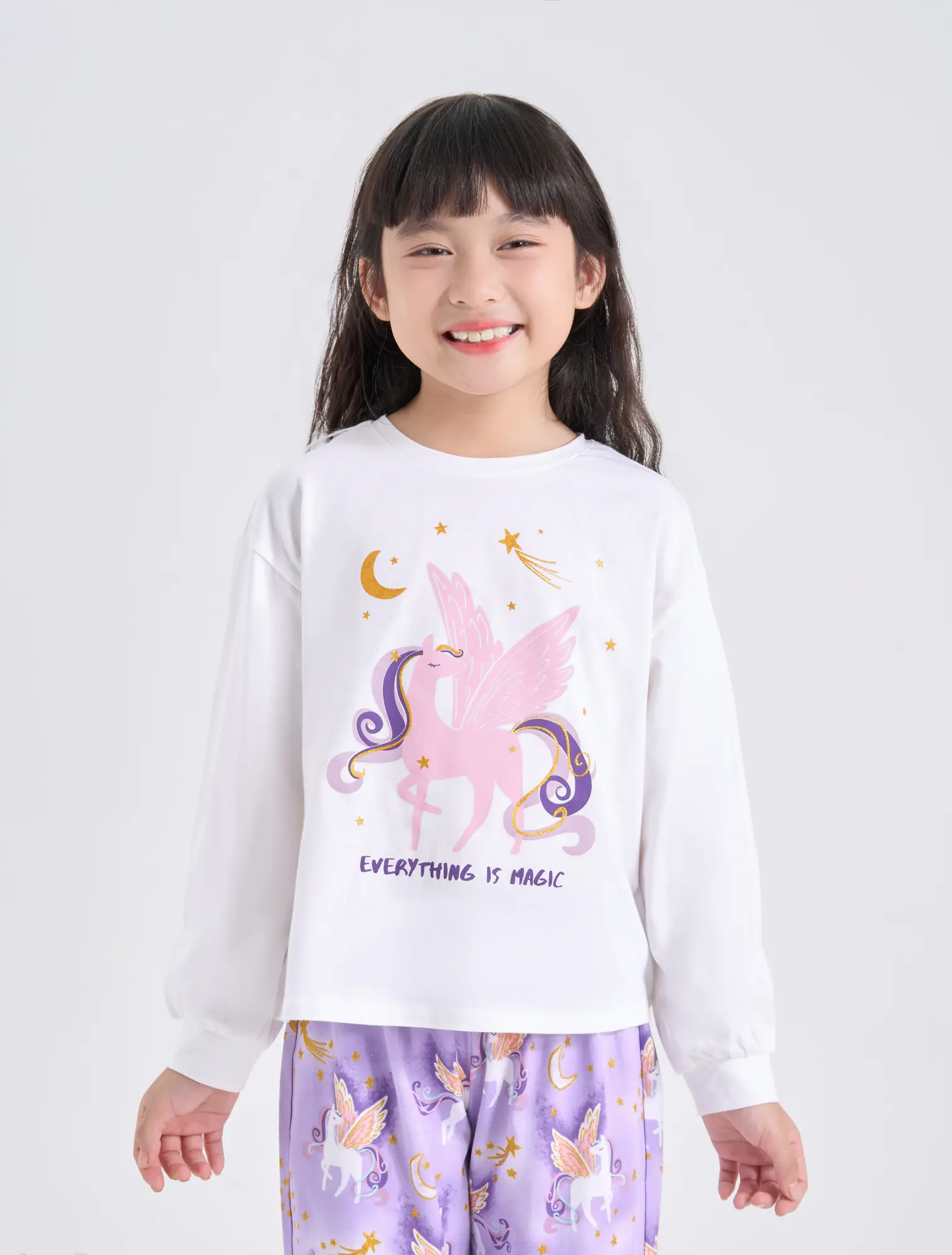 Bộ mặc nhà bé gái chất liệu cotton mềm mại, hình in đáng yêu ngộ nghĩnh, phom dáng cơ bản cho bé gái, phù hợp mặc trong thời tiết giao mùa.