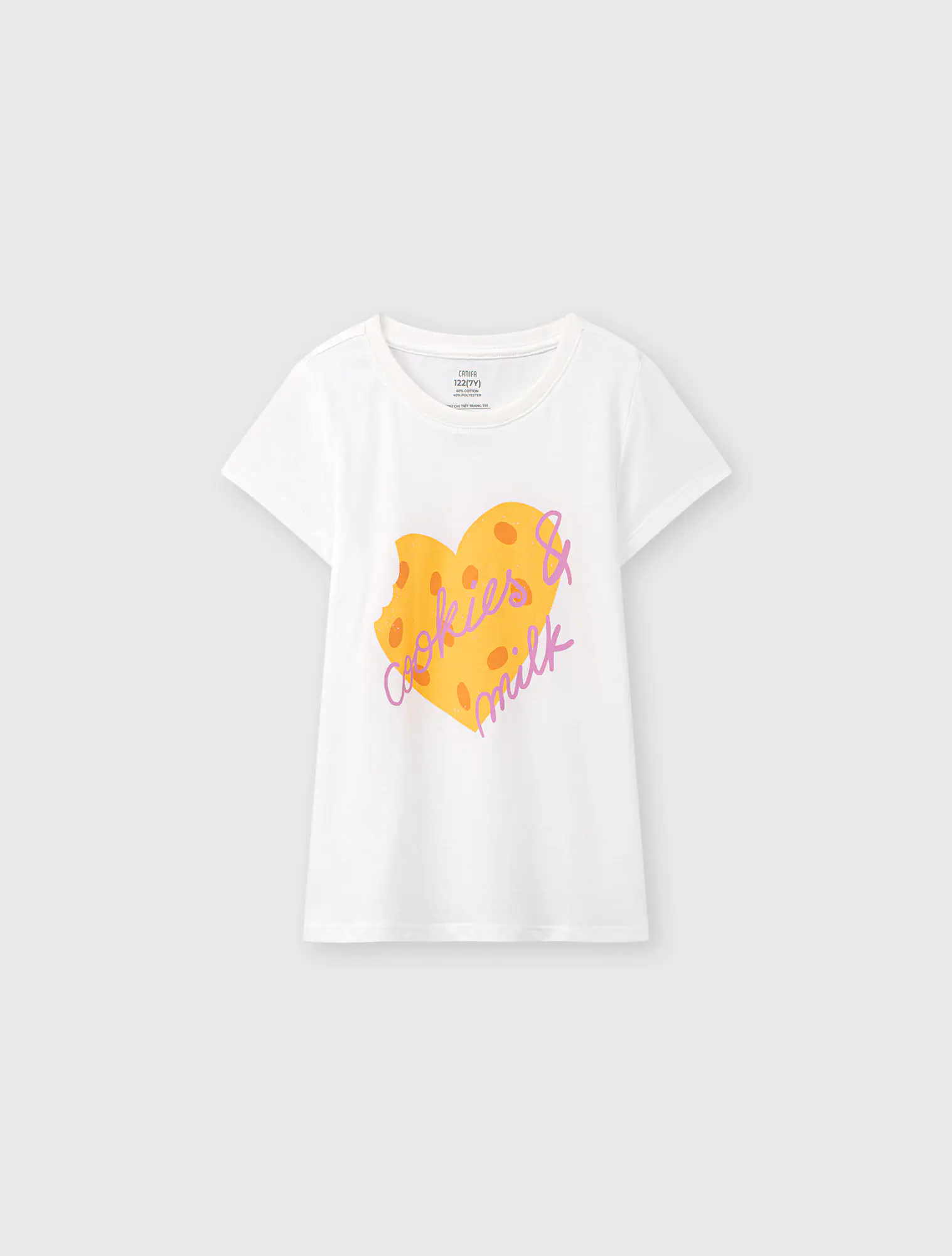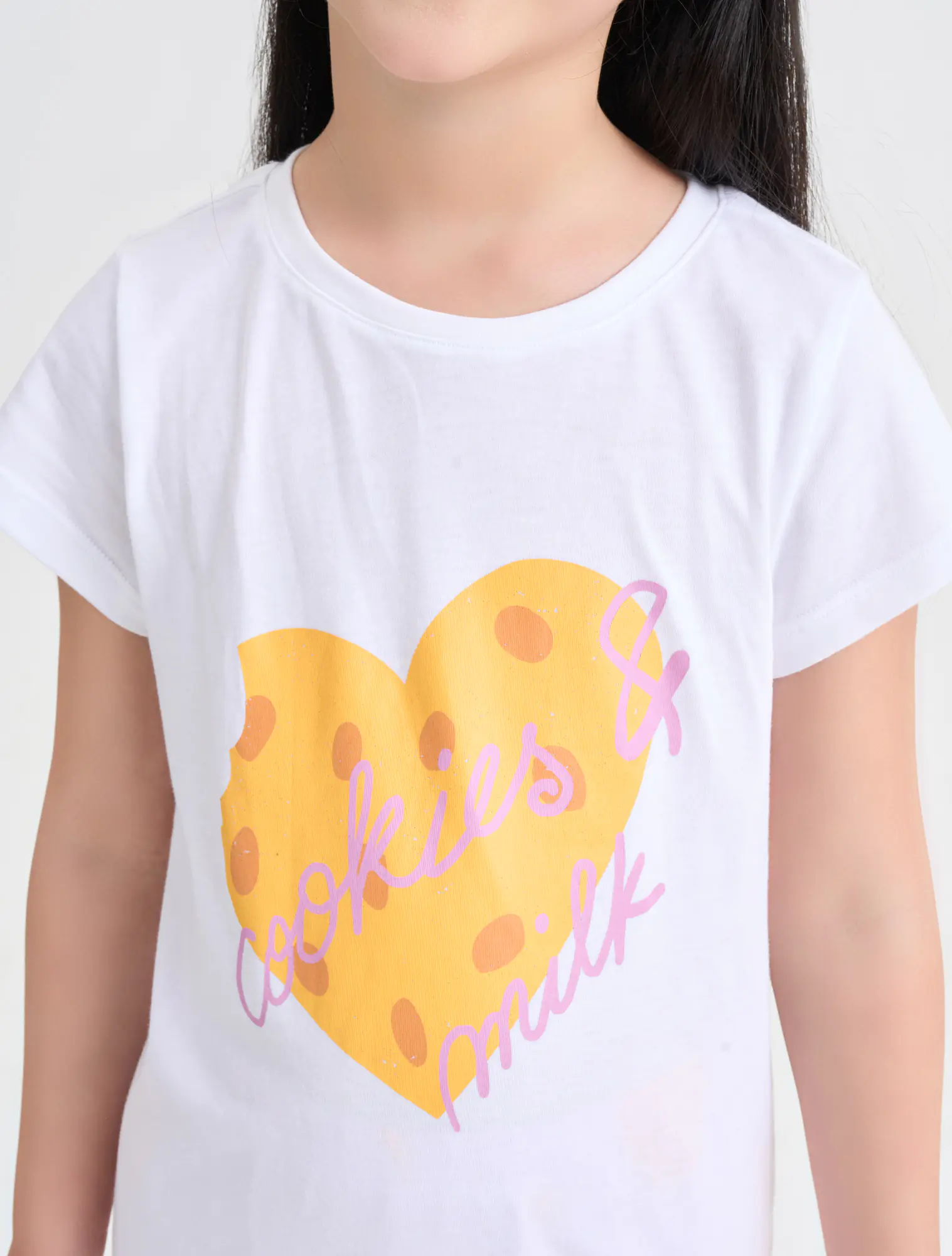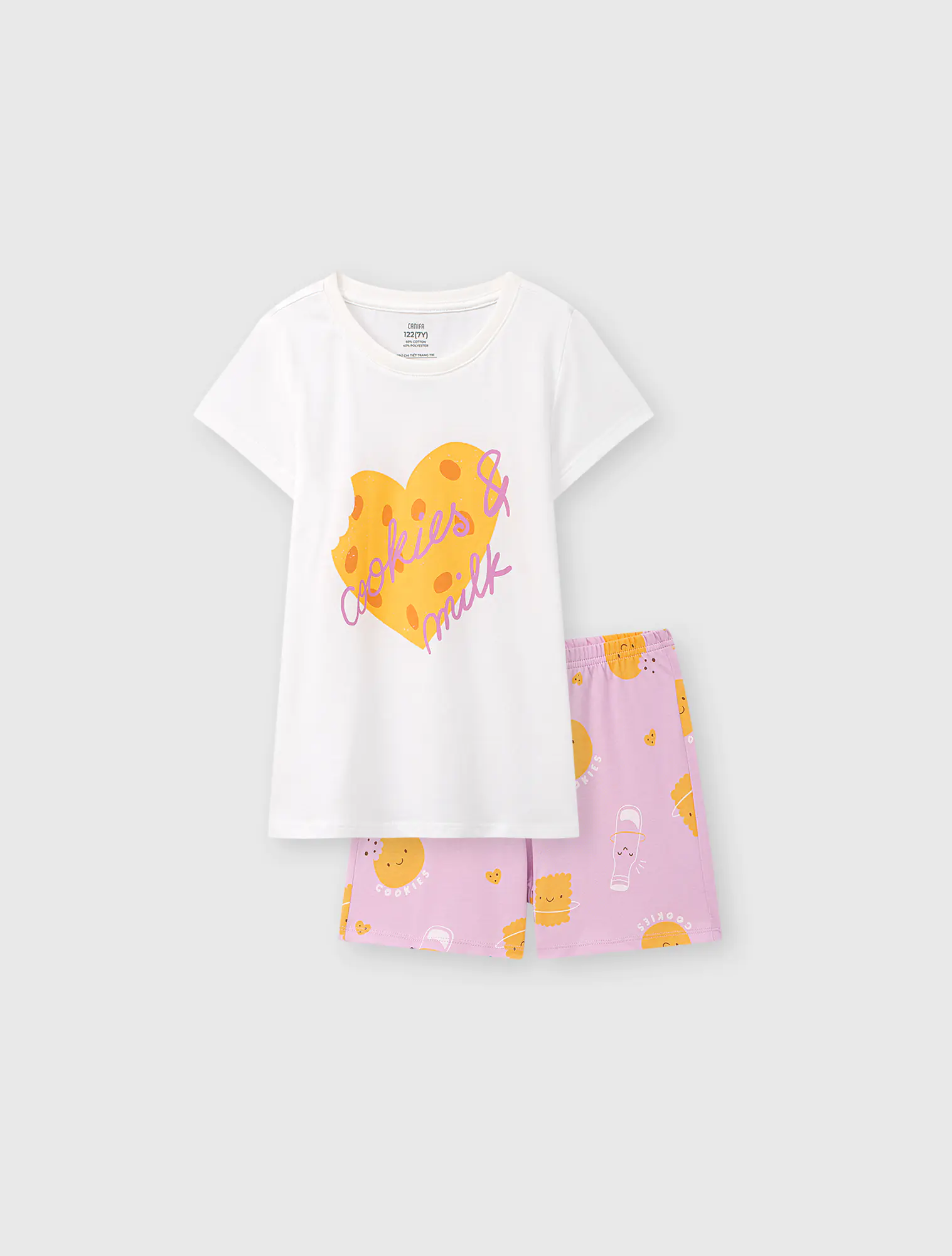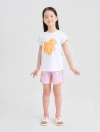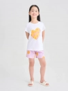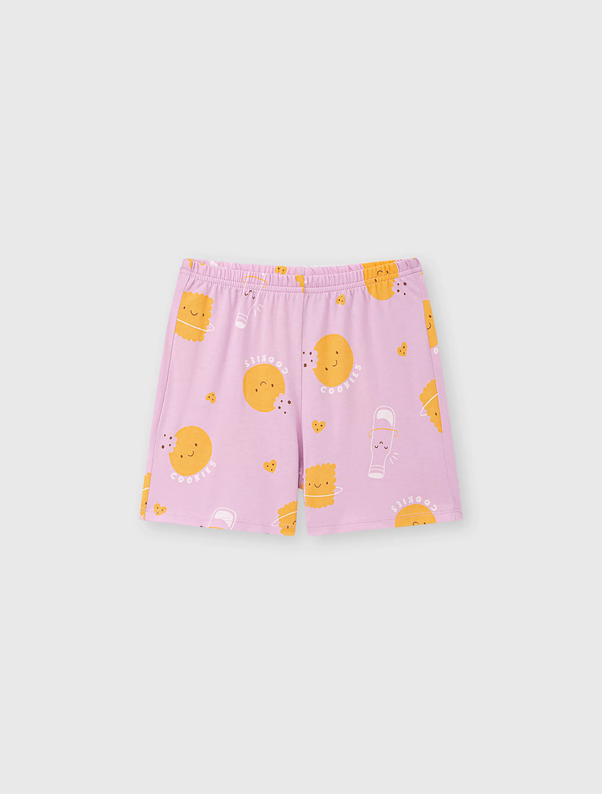 Bộ mặc nhà bé gái áo ngắn tay, quần soóc. Phom dáng cơ bản dễ mặc. Màu sắc và hình in dễ thương, tươi sáng.