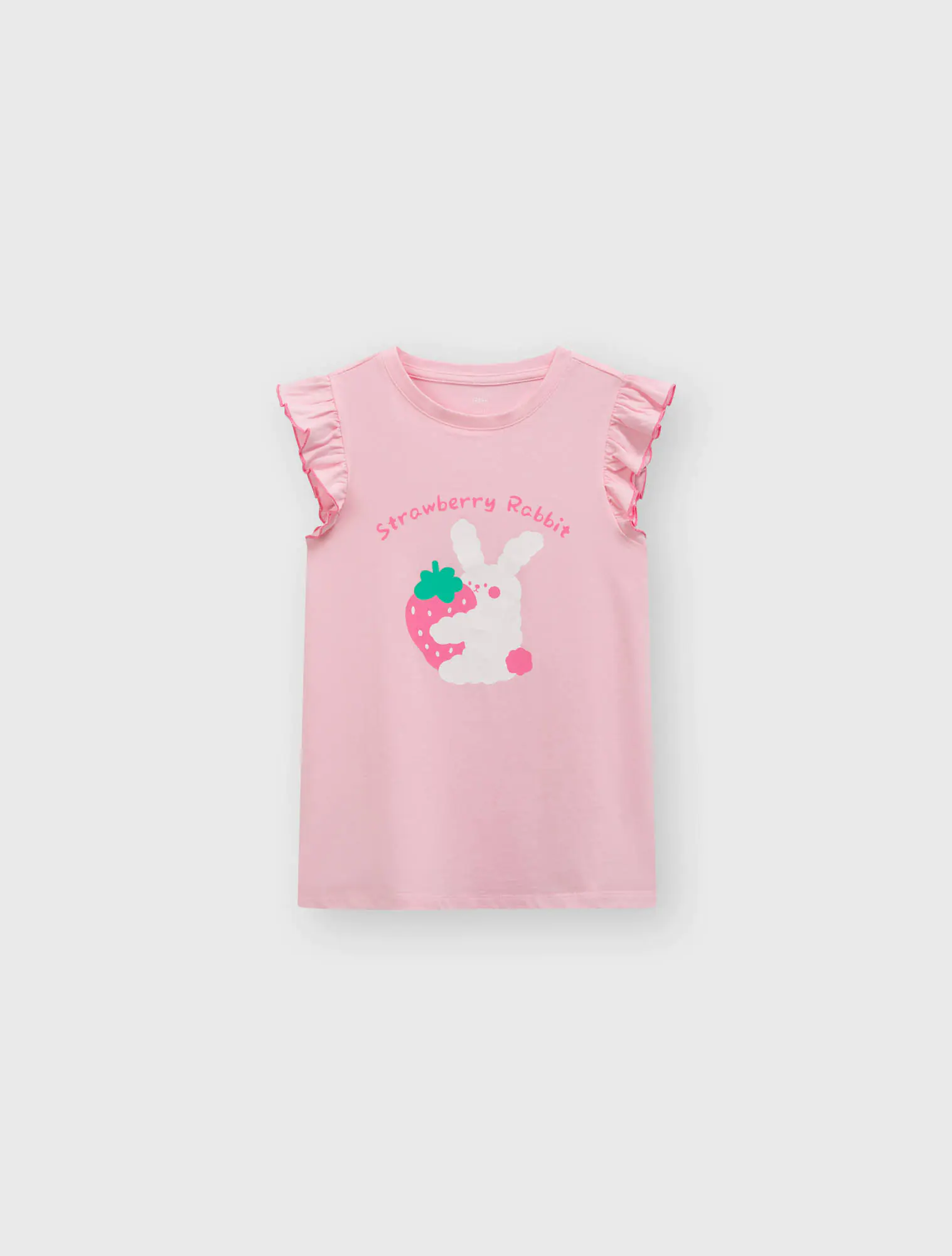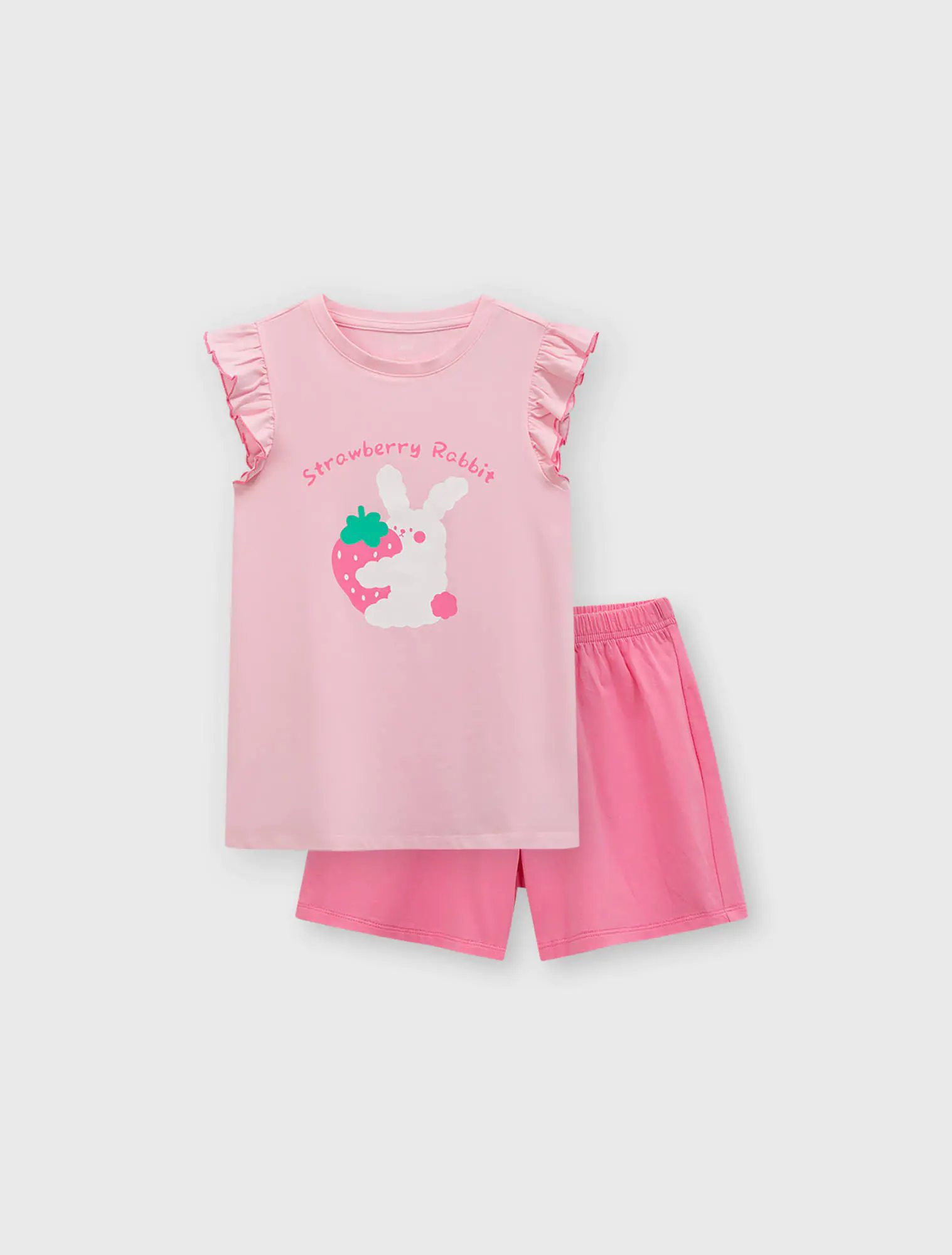 Bộ mặc nhà bé gái tay xòe in hoa tiết