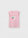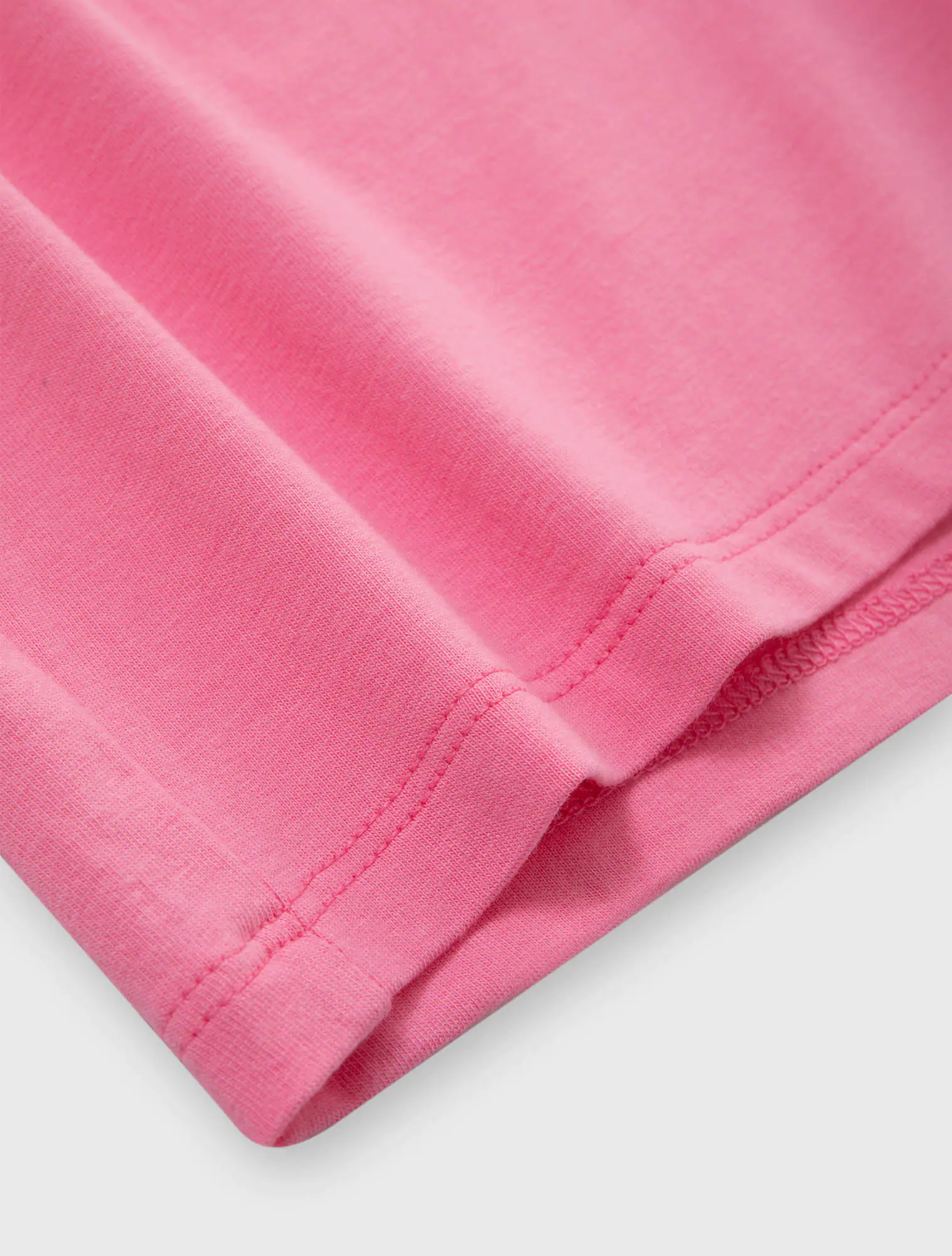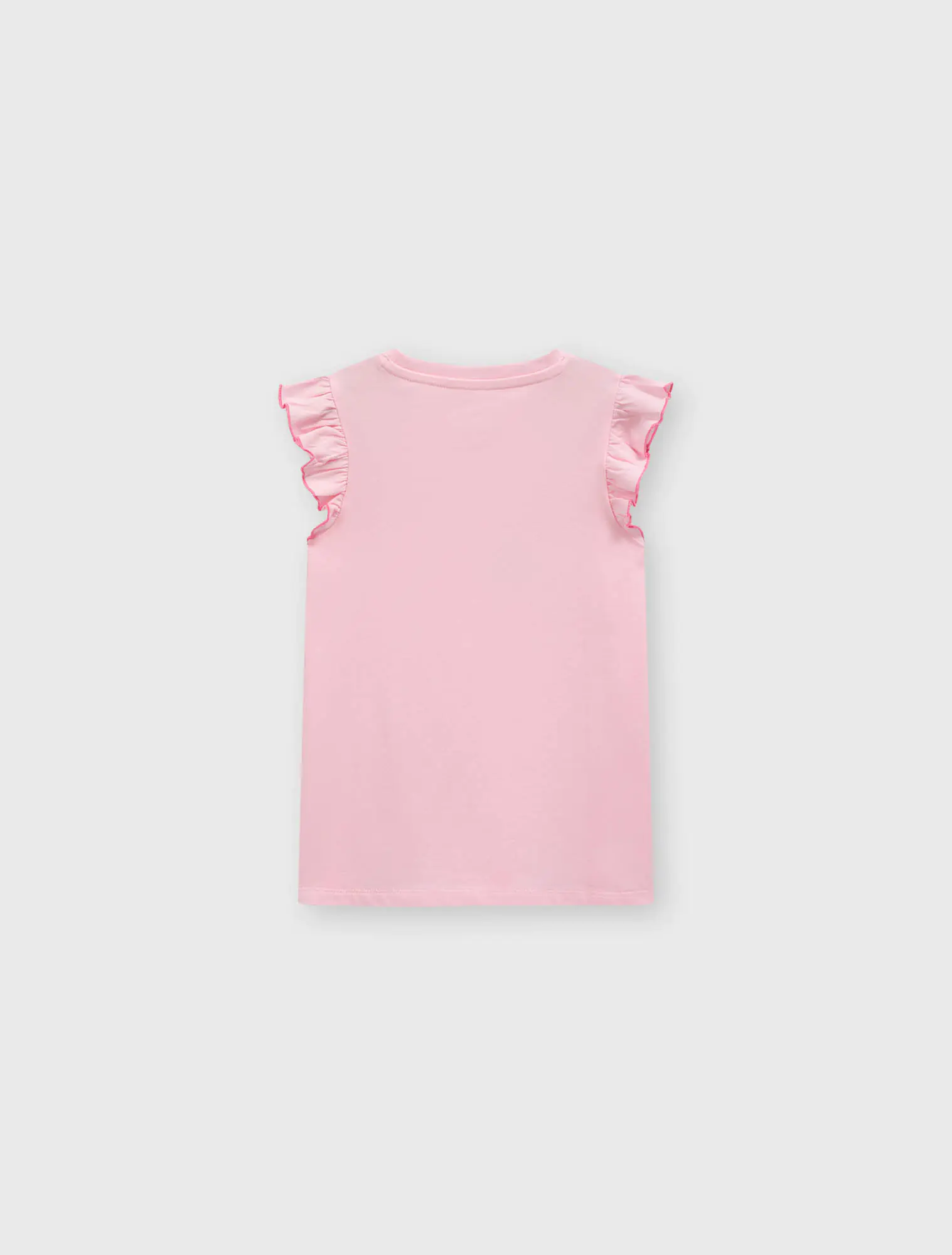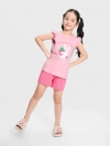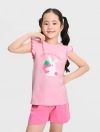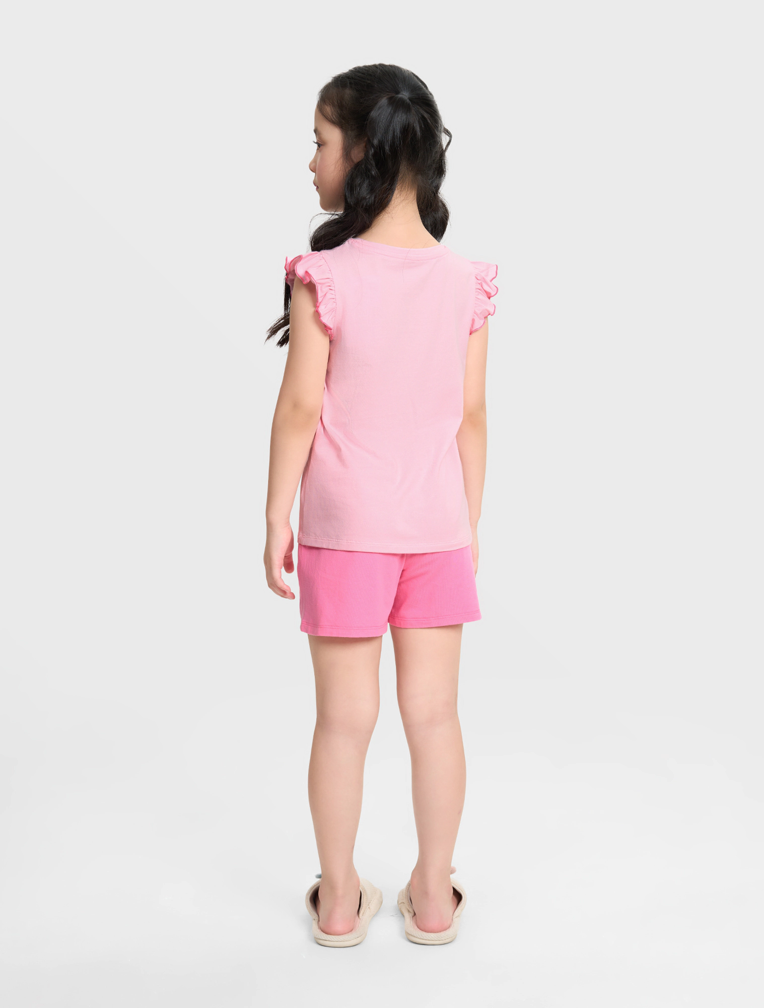 Bộ mặc nhà mùa hè bé gái. Phom dáng cơ bản dễ mặc, áo sát nách vai áo kẹp bản bèo nhún nữ tính, quần đùi, phù hợp các hoạt động nghỉ ngơi. HÌnh in đáng yêu, màu sắc dễ thương phù hợp bé gái.