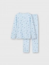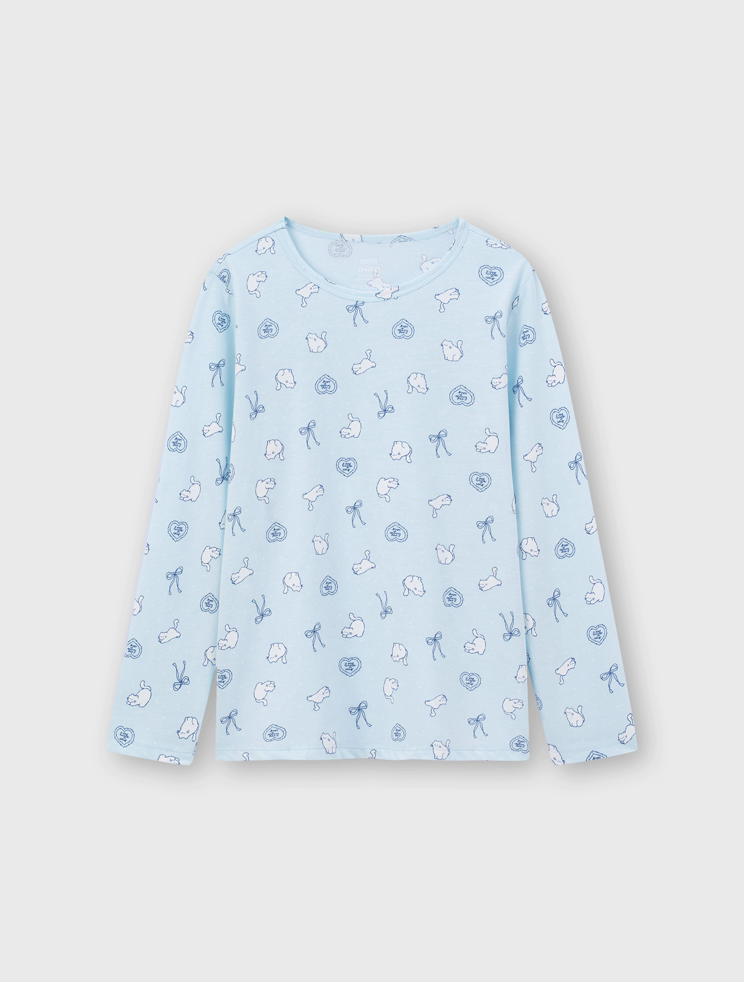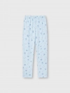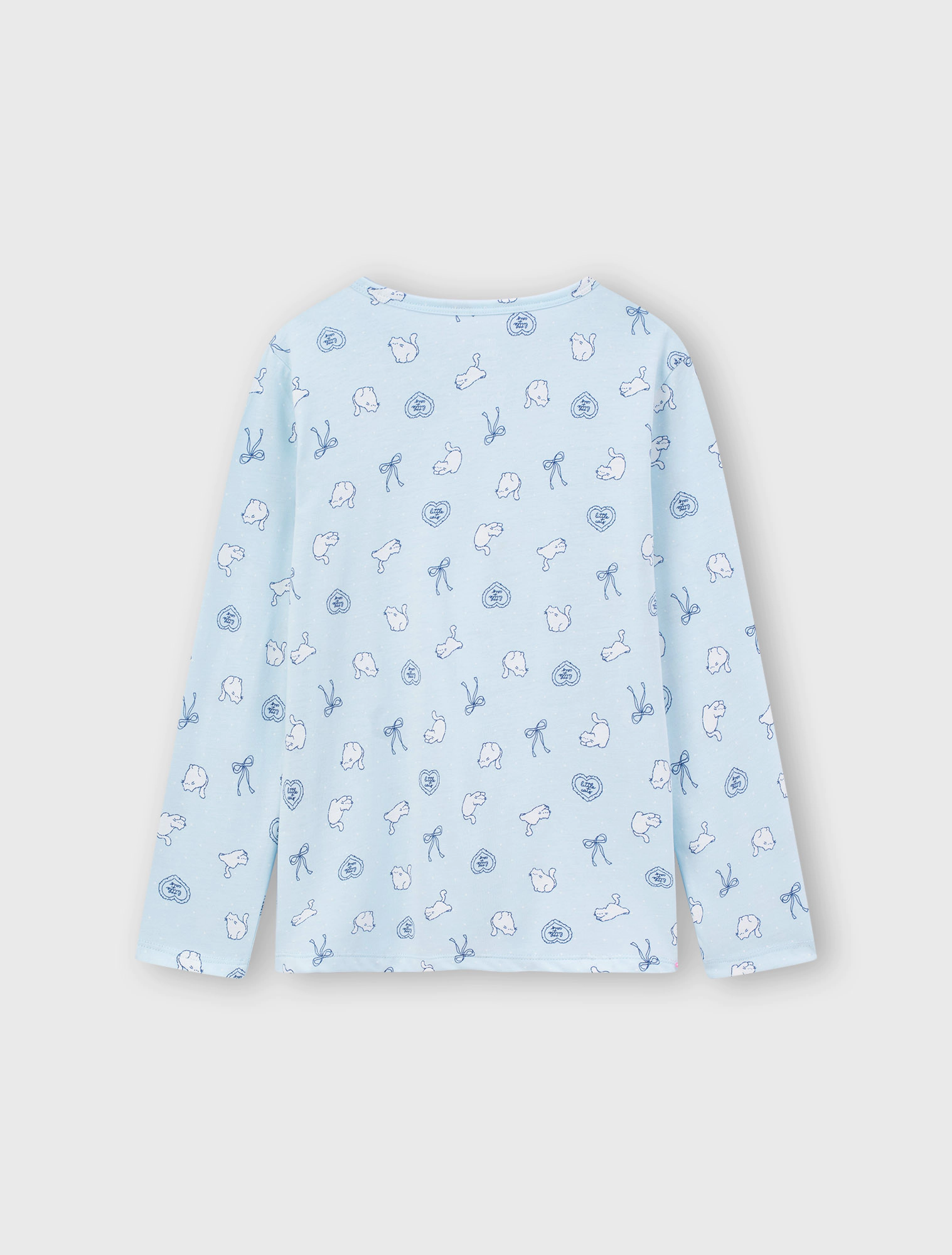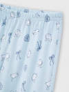 Bộ mặc nhà bé gái, phom dáng cơ bản dễ mặc, quần dài, áo dài tay cổ tròn. Màu sắc và hình in tươi sáng, đáng yêu phù hợp bé gái. Nguyên liệu Cotton pha mềm mại dễ chịu khi mặc.