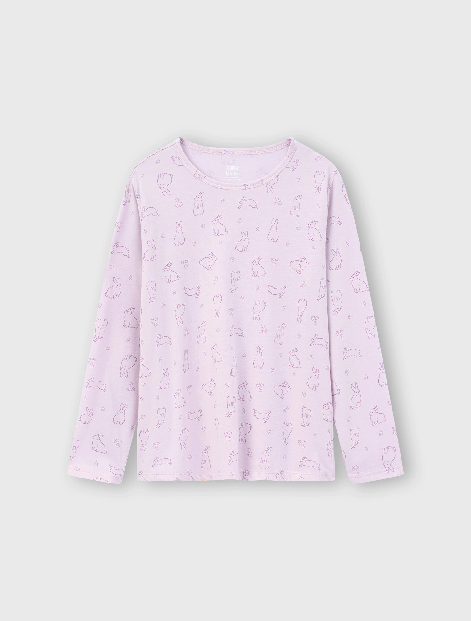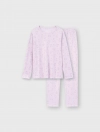 Bộ mặc nhà bé gái, phom dáng cơ bản dễ mặc, quần dài, áo dài tay cổ tròn. Màu sắc và hình in tươi sáng, đáng yêu phù hợp bé gái. Nguyên liệu Cotton pha mềm mại dễ chịu khi mặc.