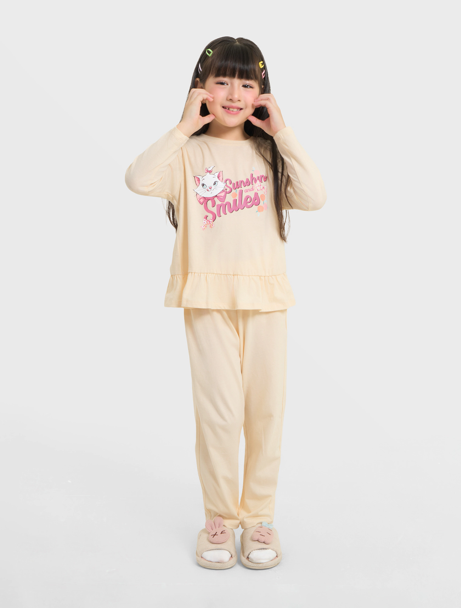 Bộ mặc nhà bé gái dáng suông, hình in dễ thương tạo điểm nhấn.