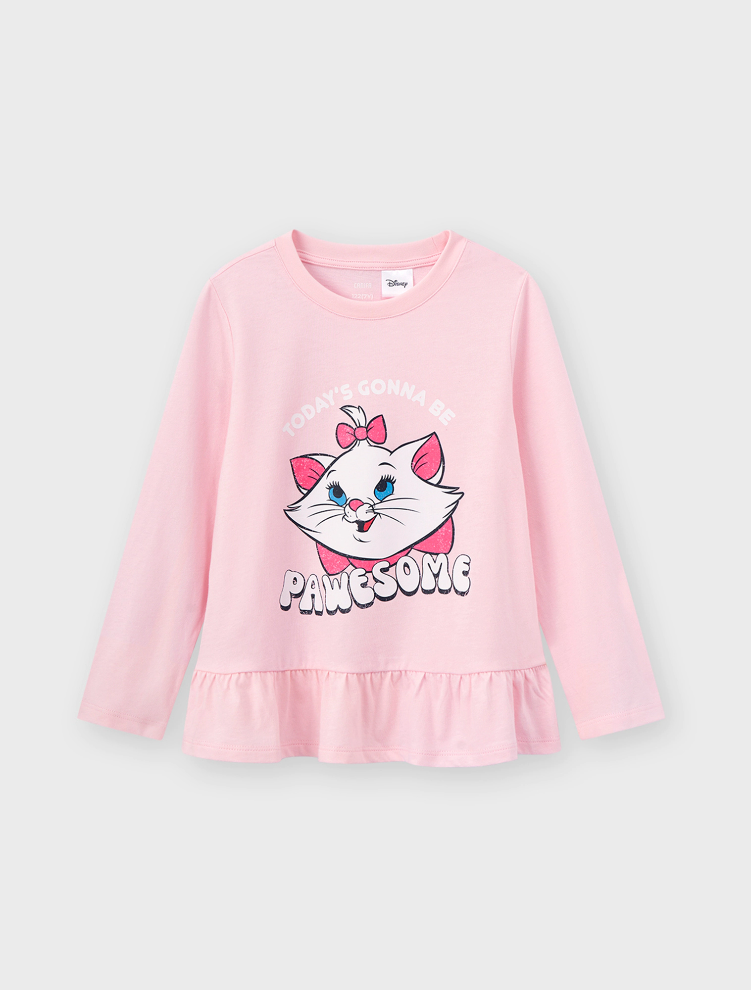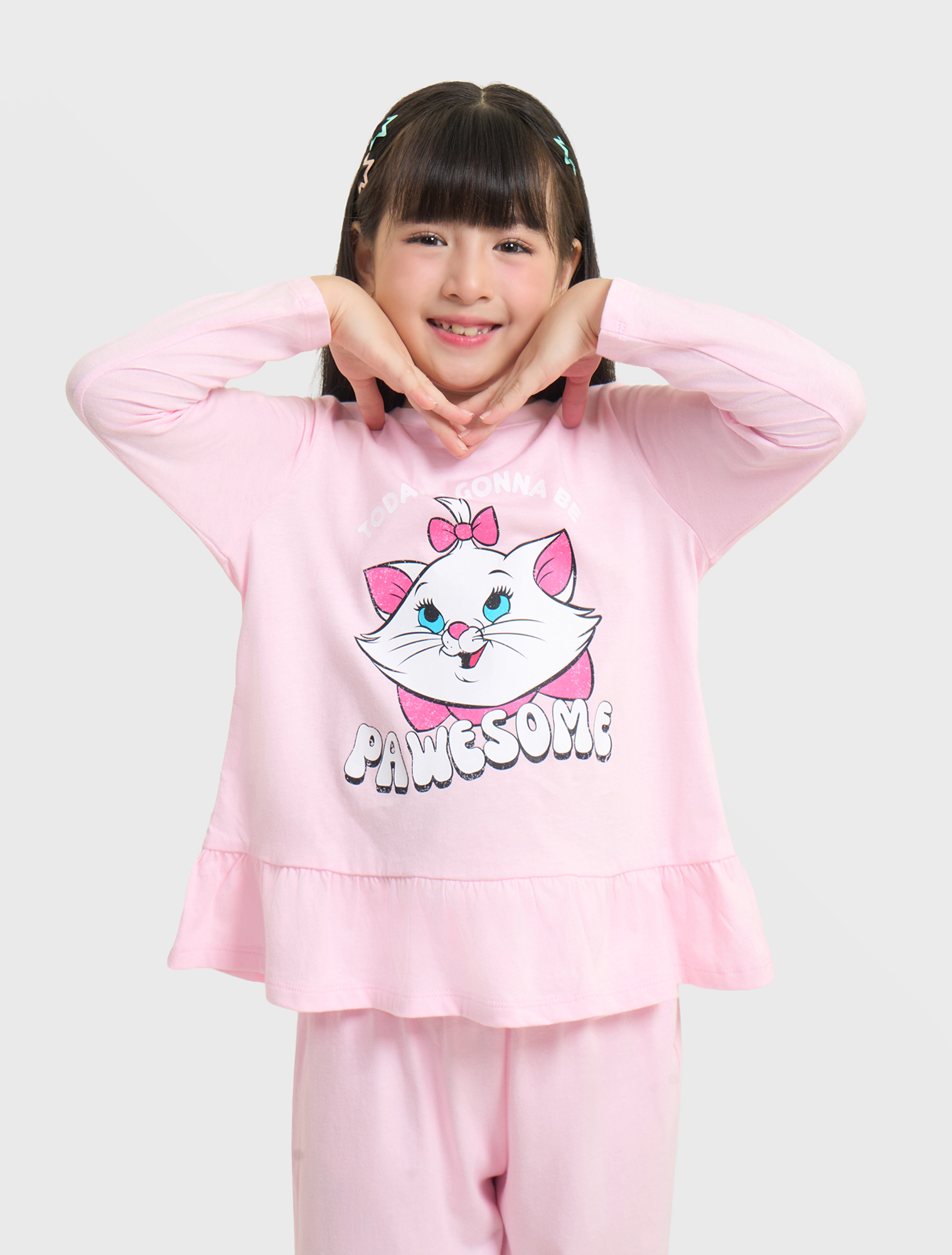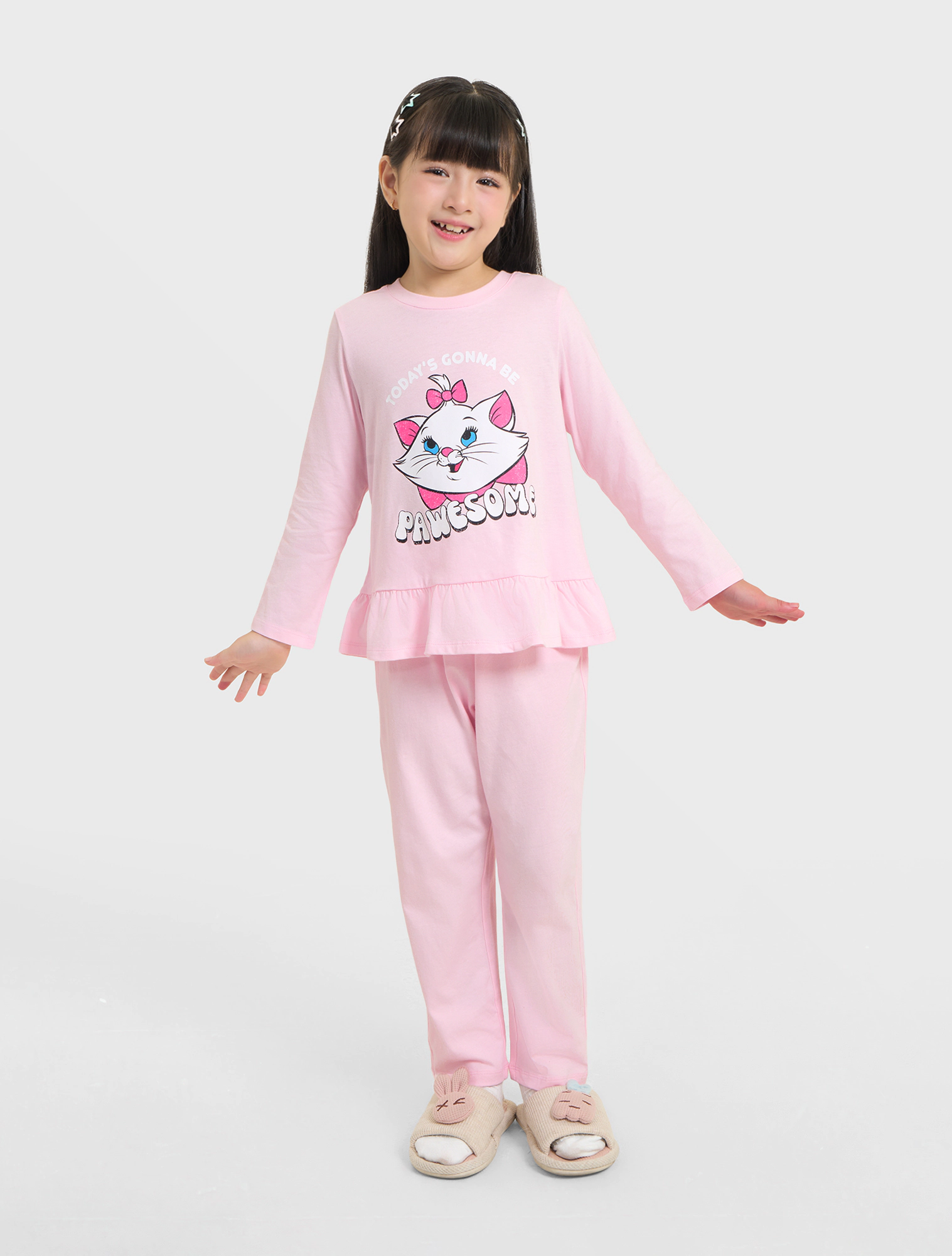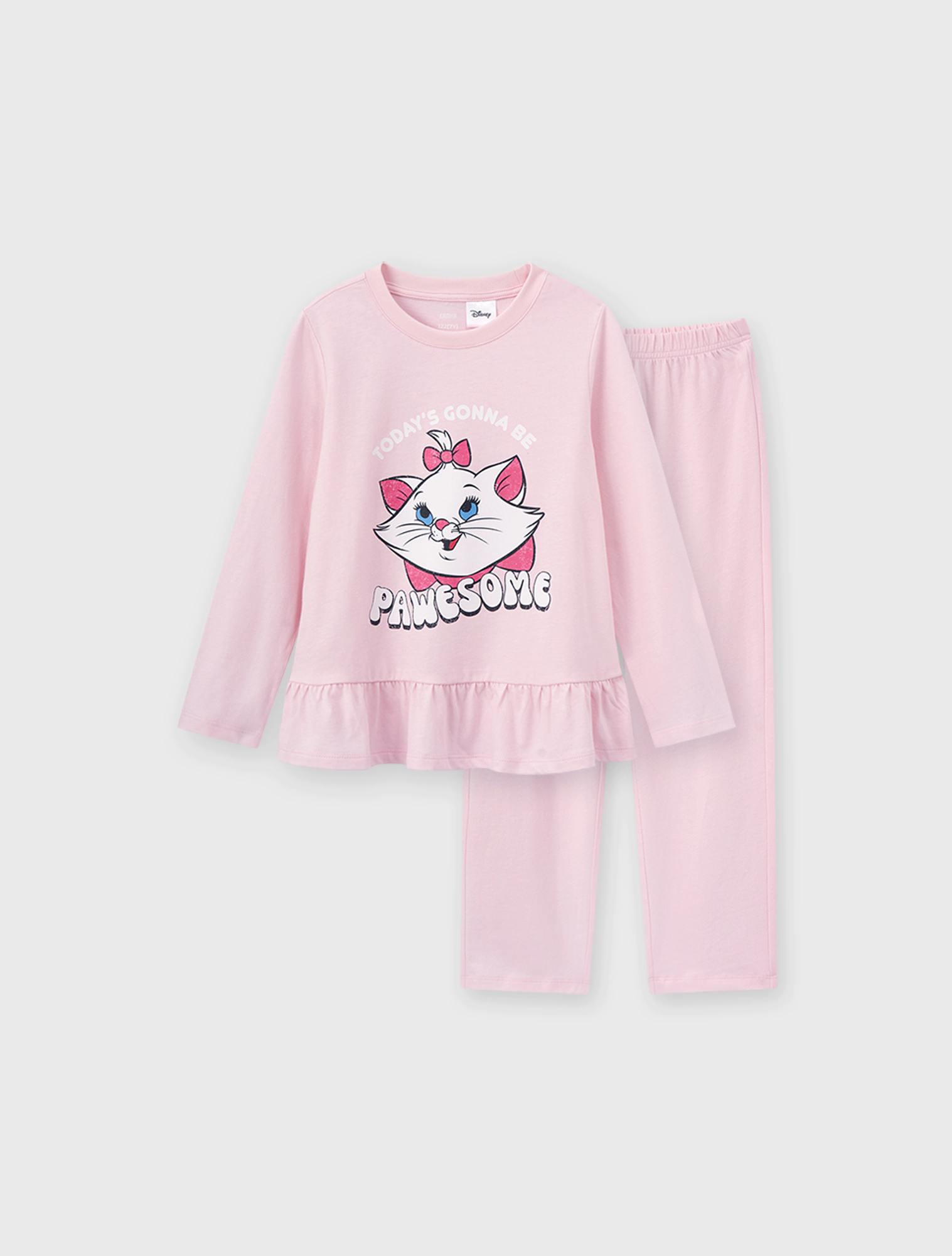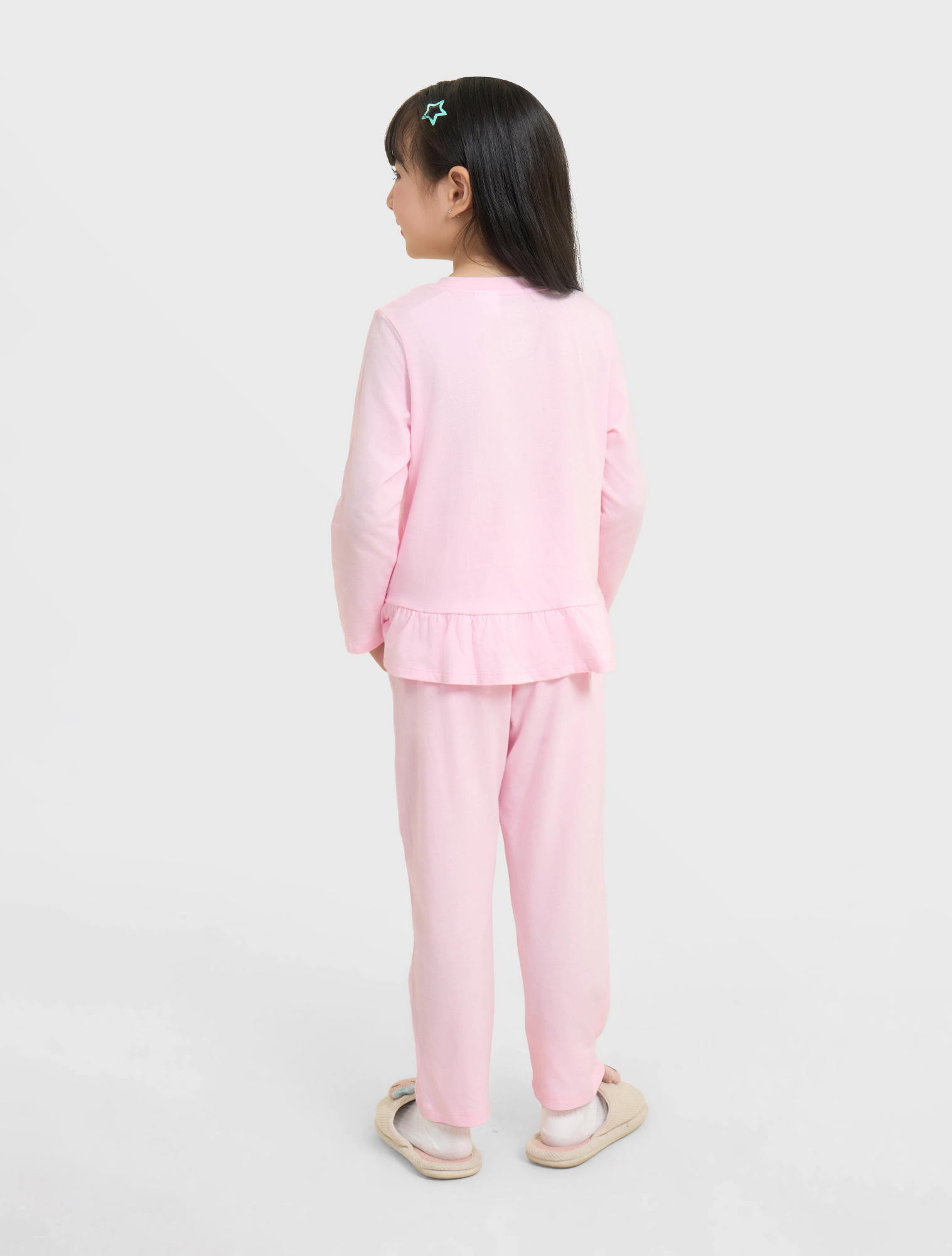 Bộ mặc nhà bé gái dáng suông, hình in dễ thương tạo điểm nhấn.
