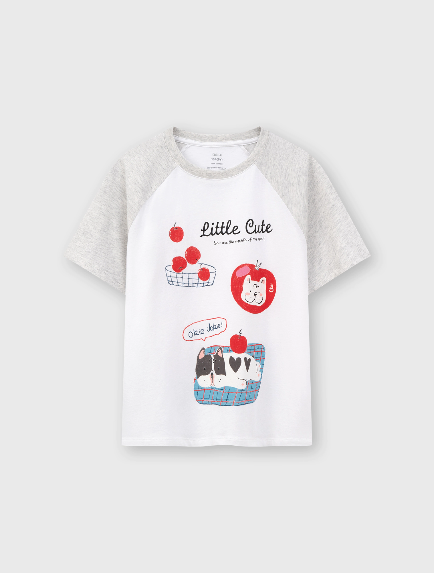 Bộ mặc nhà bé gái có hình in, áo ngắn tay chất liệt dệt kim 100% cotton mềm mại thoáng mát