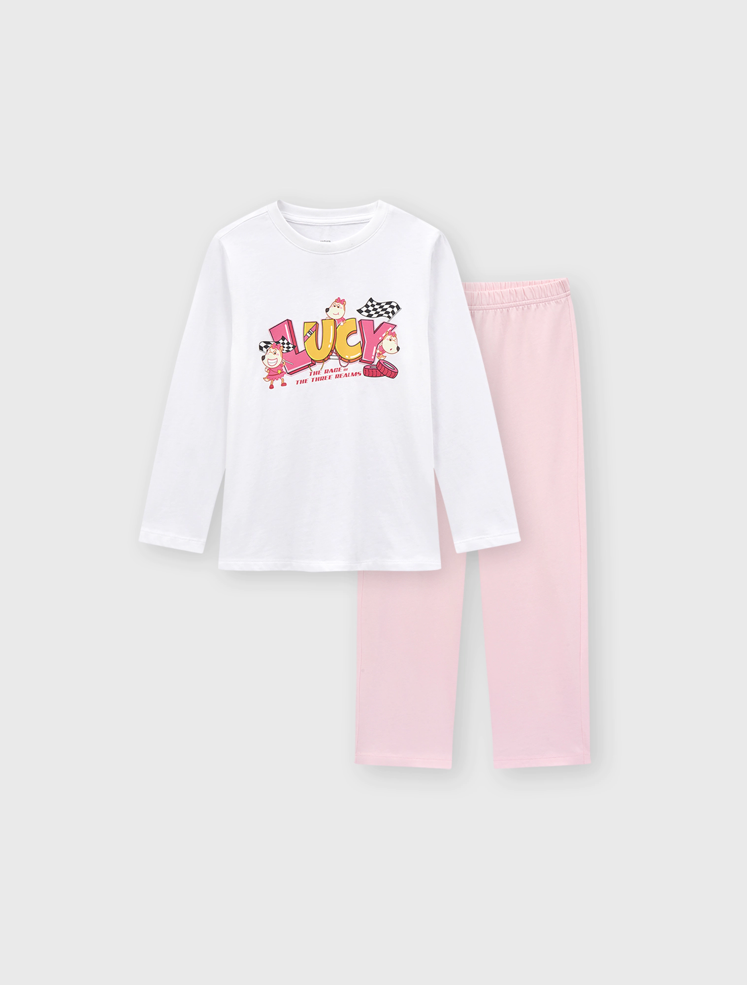 Bộ đồ mặc nhà bé gái hình in Wolfoo đáng yêu.