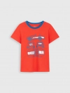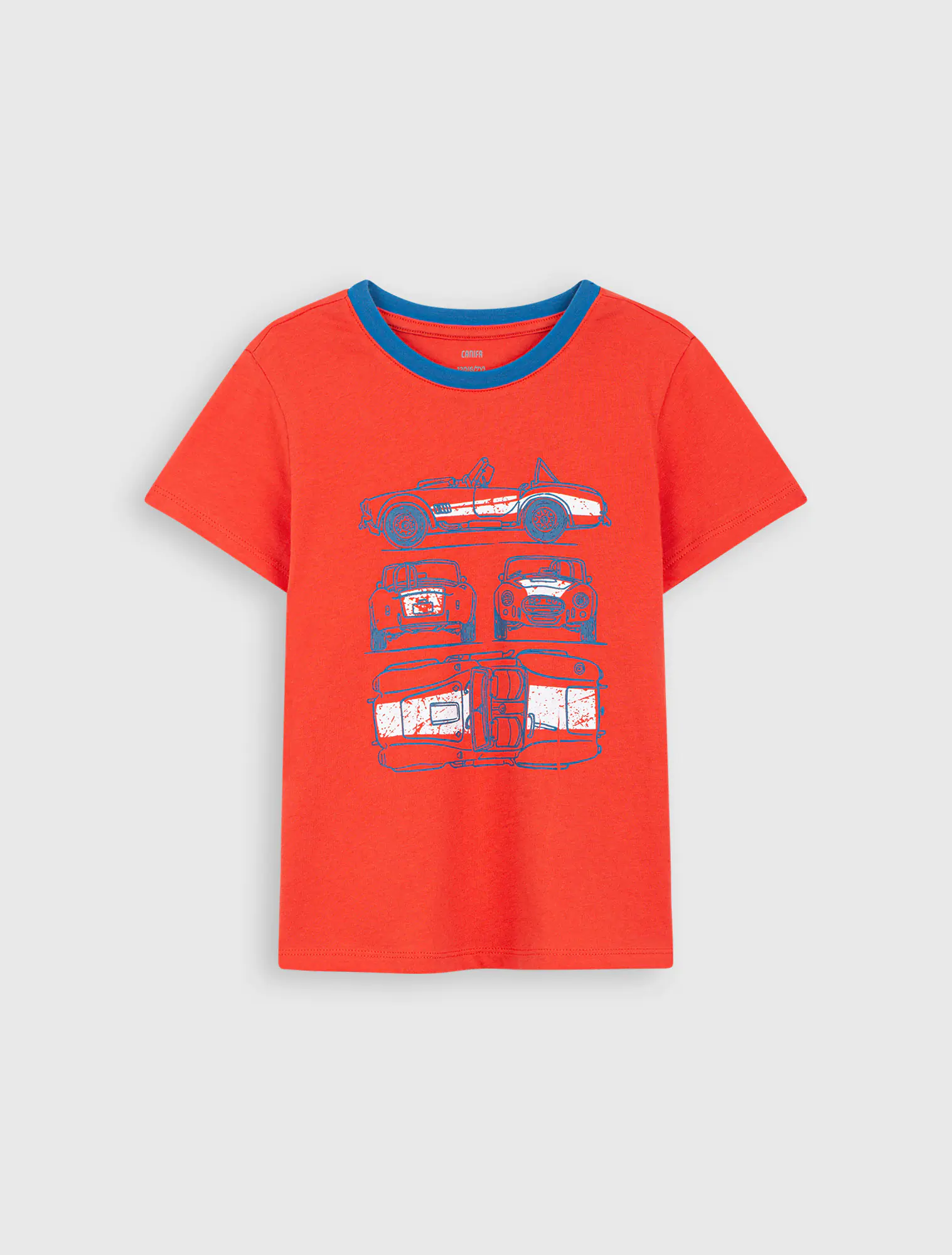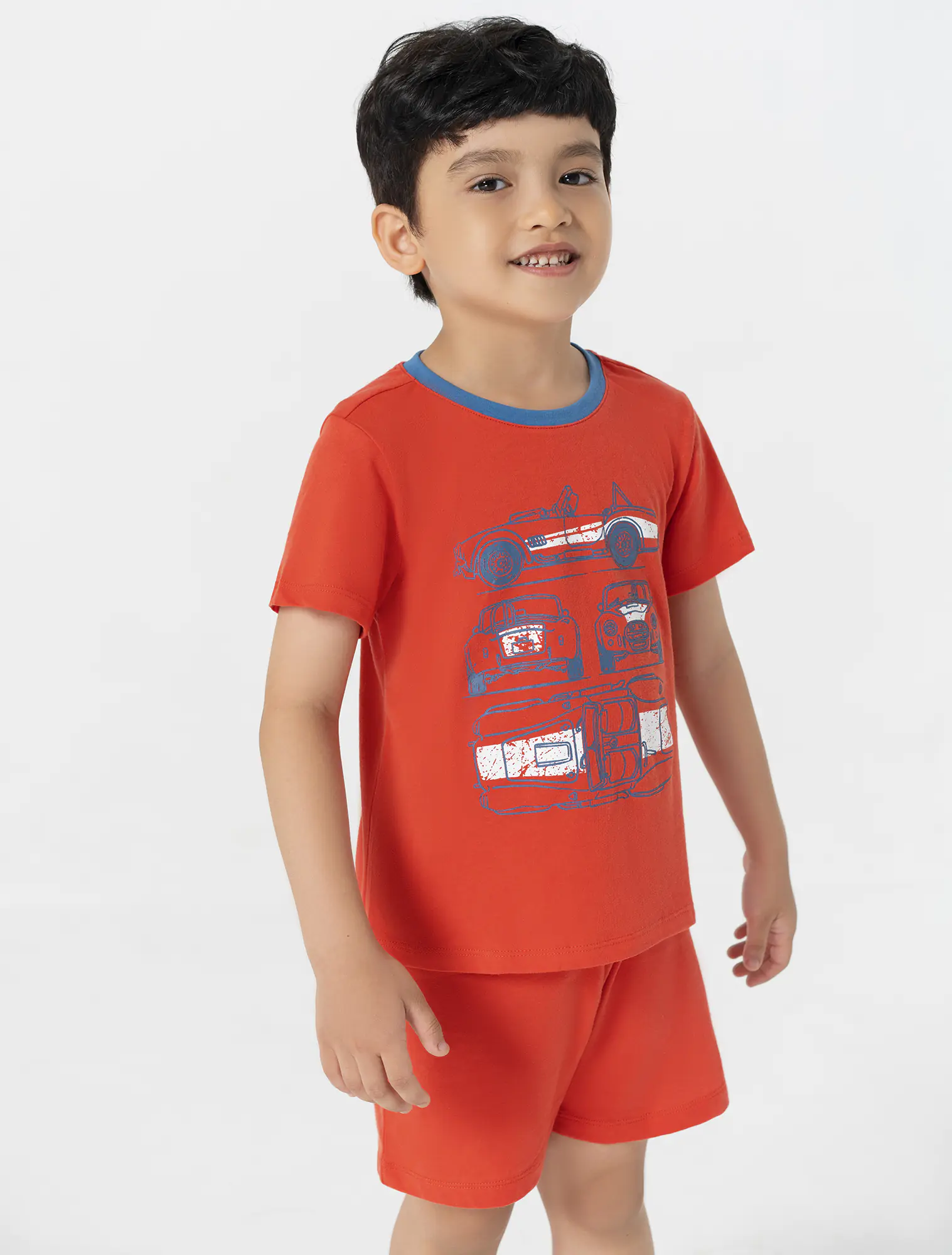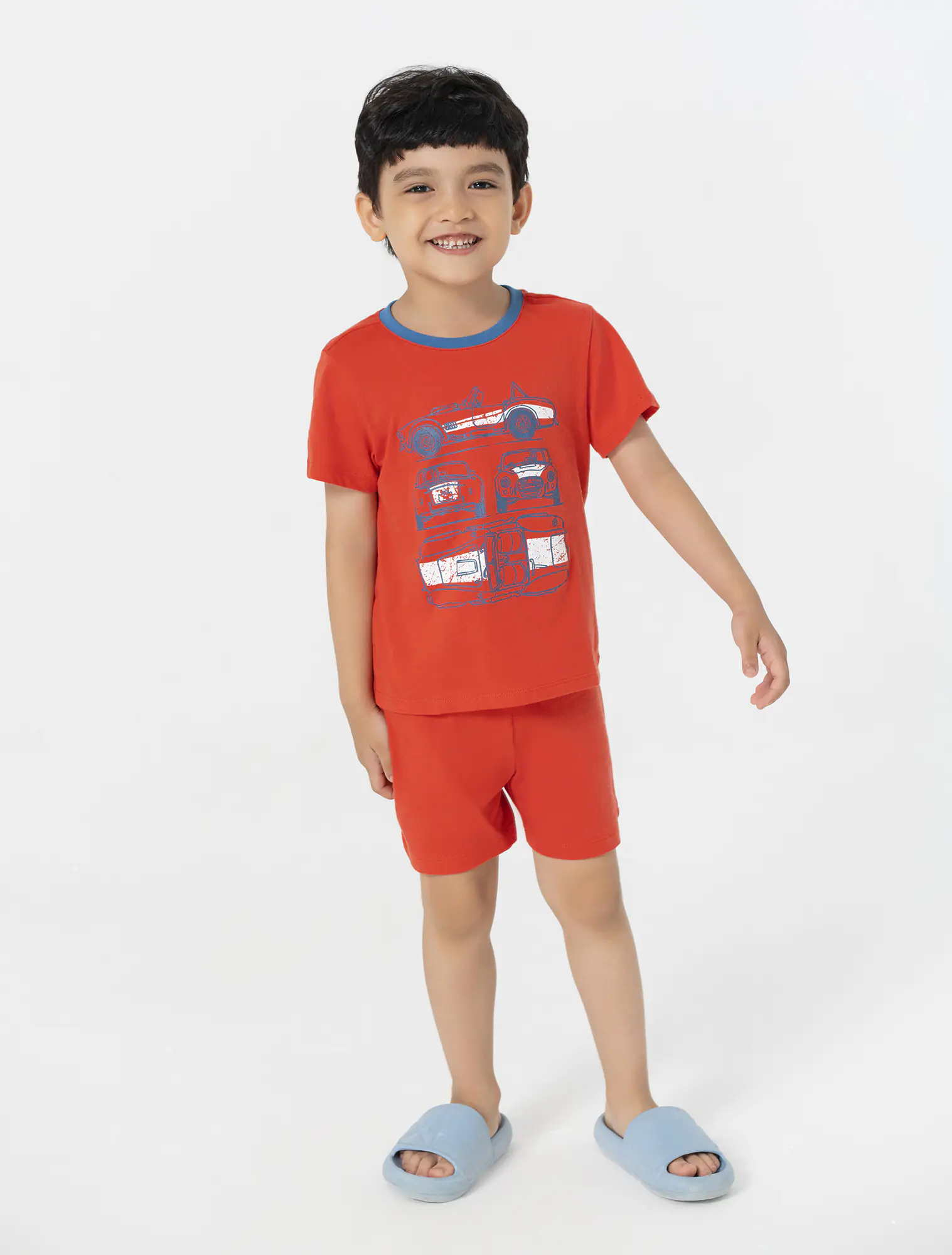 Bộ mặc nhà chất liệu 100% cotton, hình in to trước ngực, phom regular, cổ bằng bo khác màu