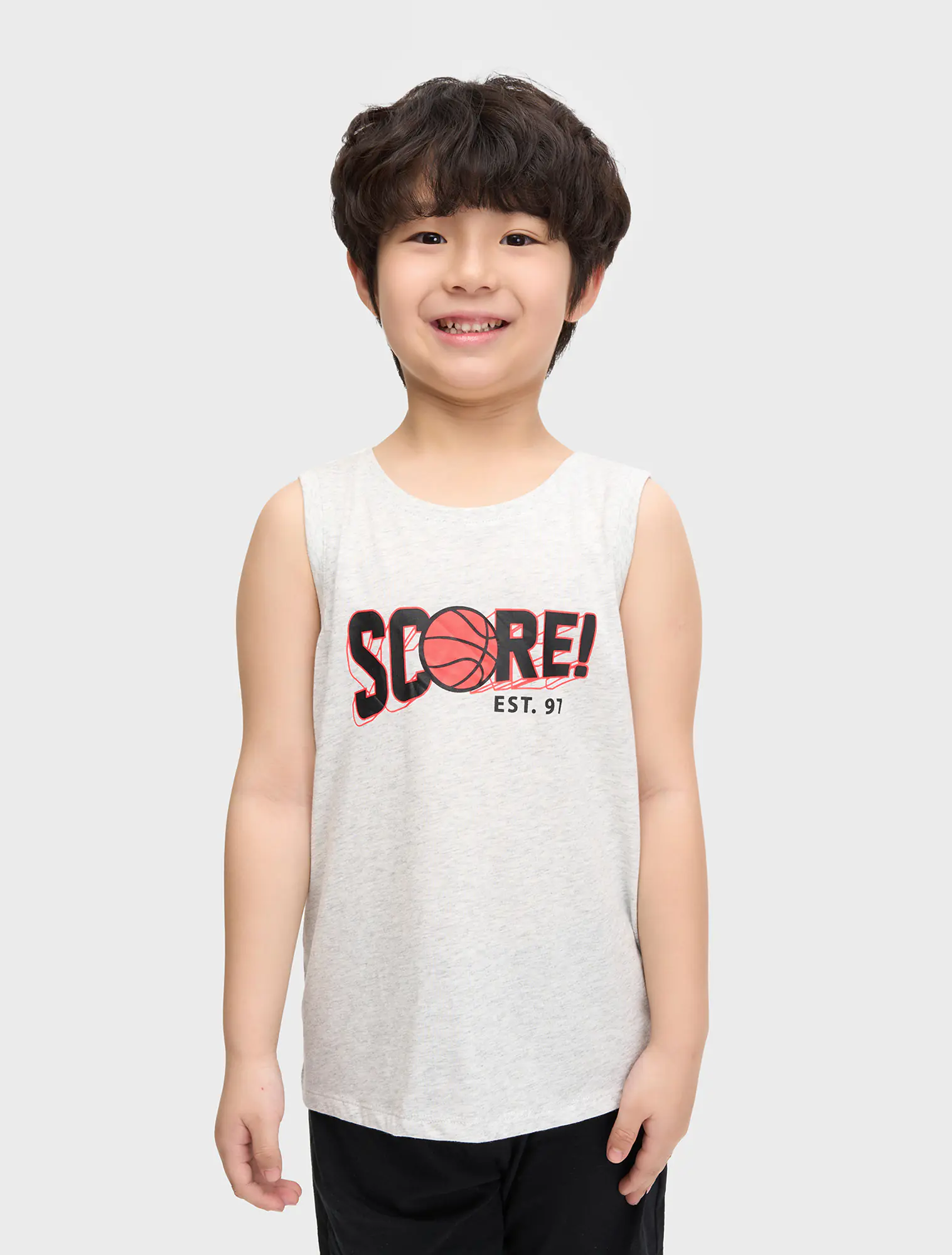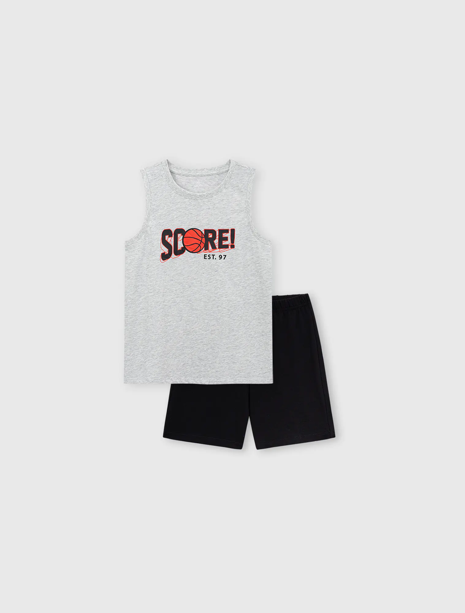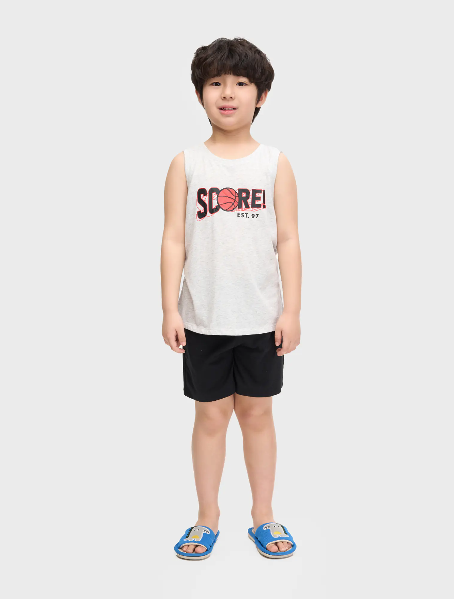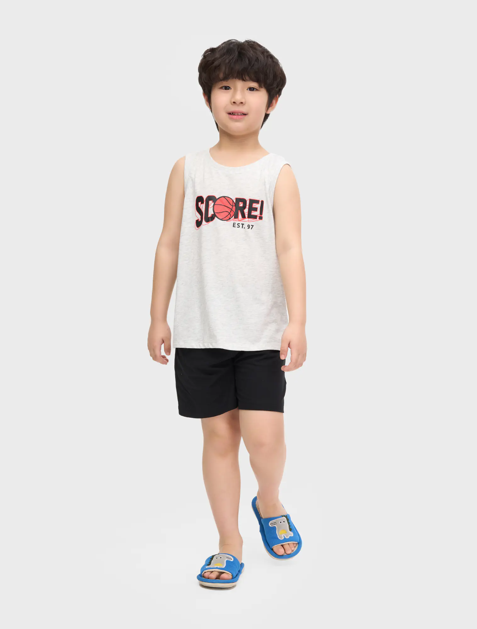 Bộ mặc nhà bé trai áo sát nách, quần cộc. Kiểu dáng cơ bản, dễ sử dụng. Màu sắc, hình in nam tính.