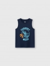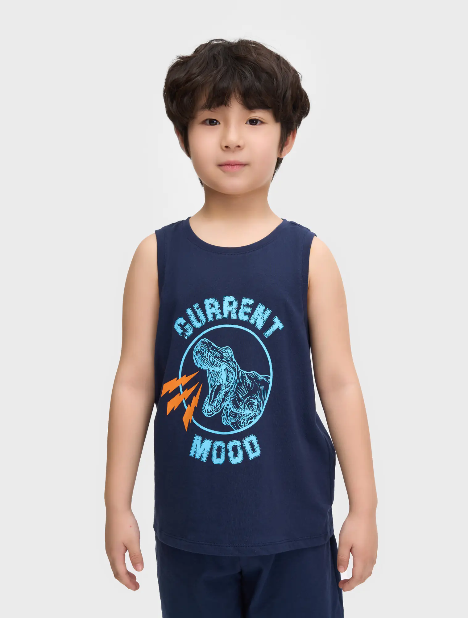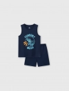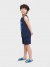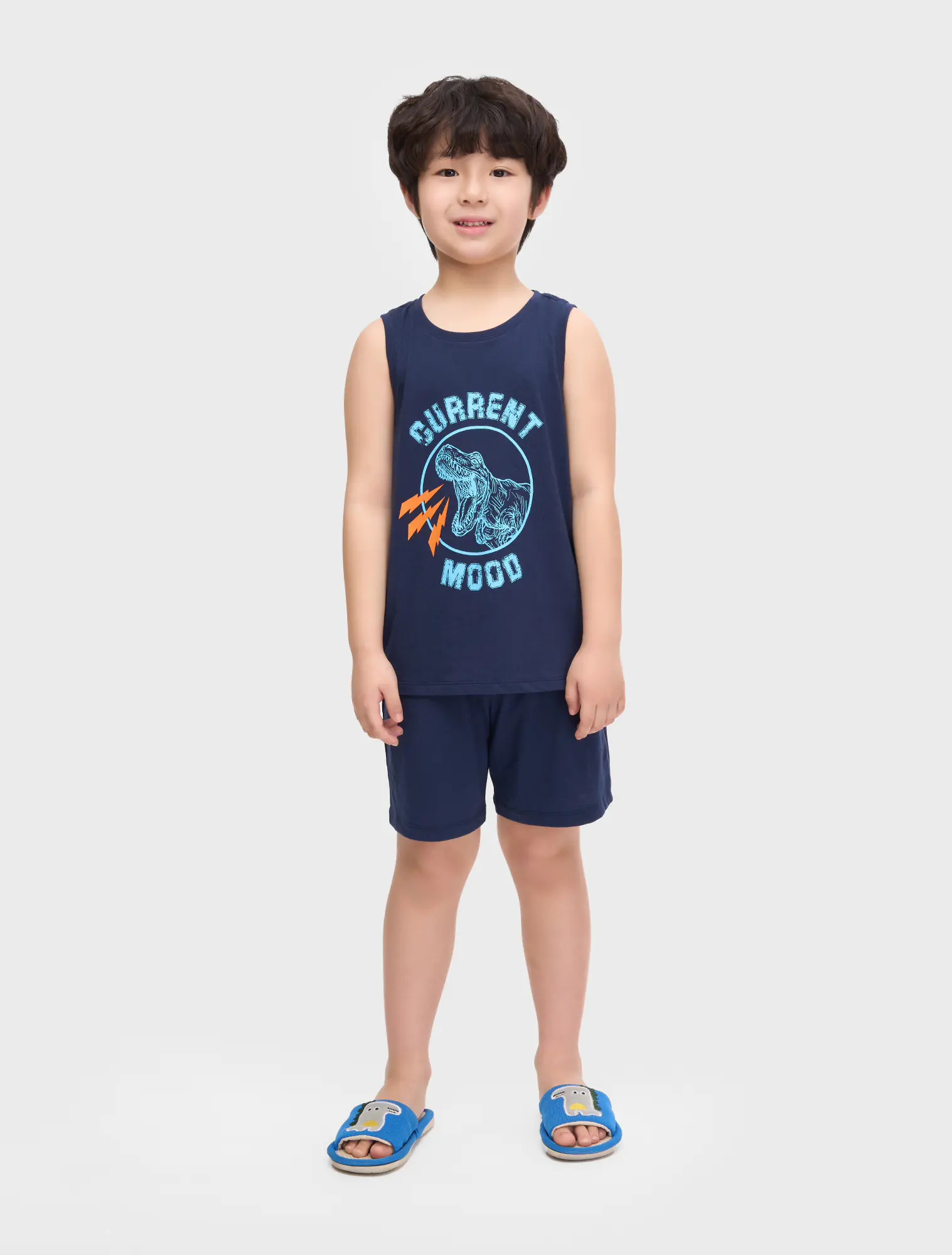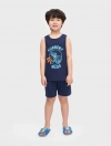 Bộ mặc nhà bé trai áo sát nách, quần cộc. Kiểu dáng cơ bản, dễ sử dụng. Màu sắc, hình in nam tính.