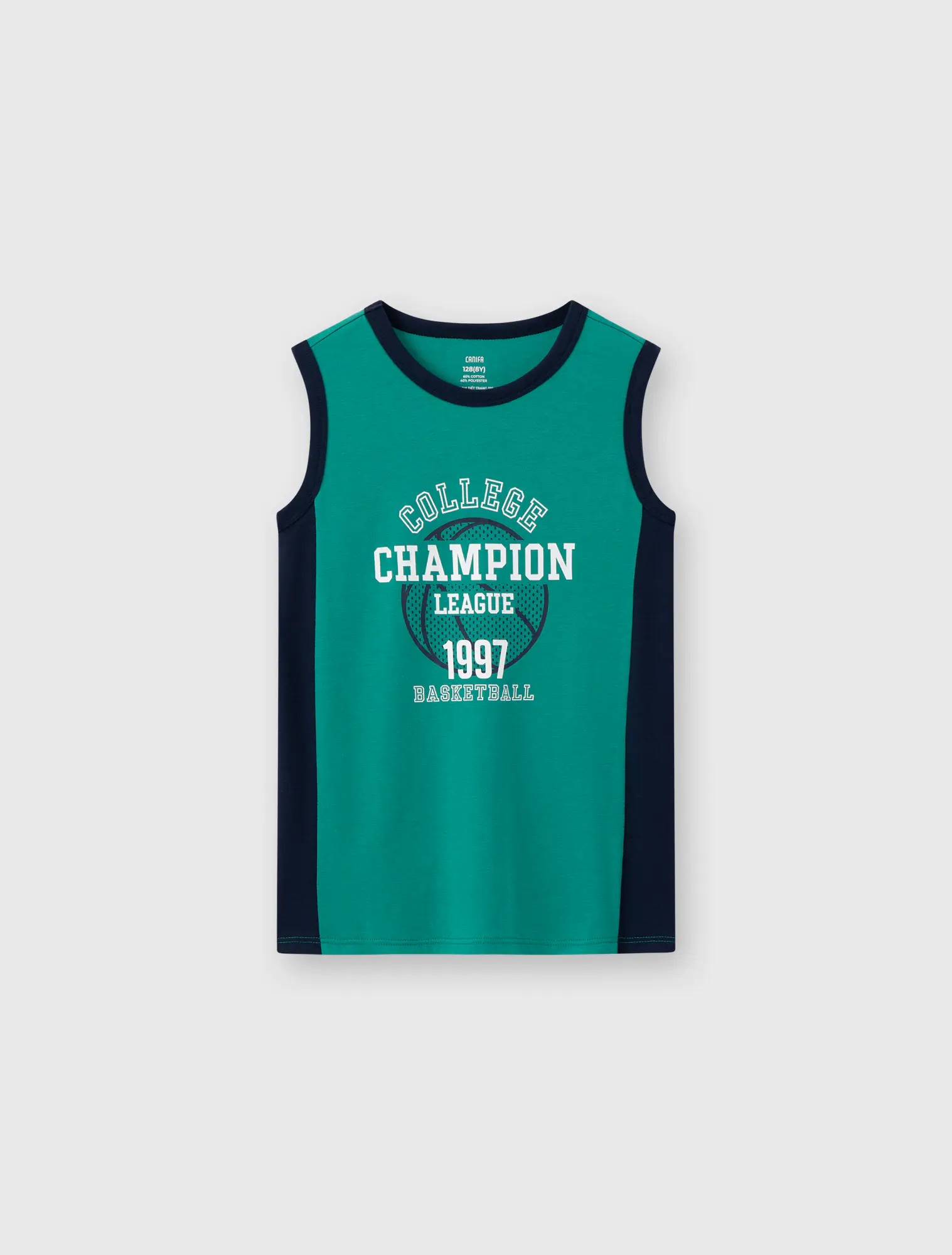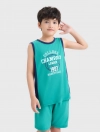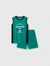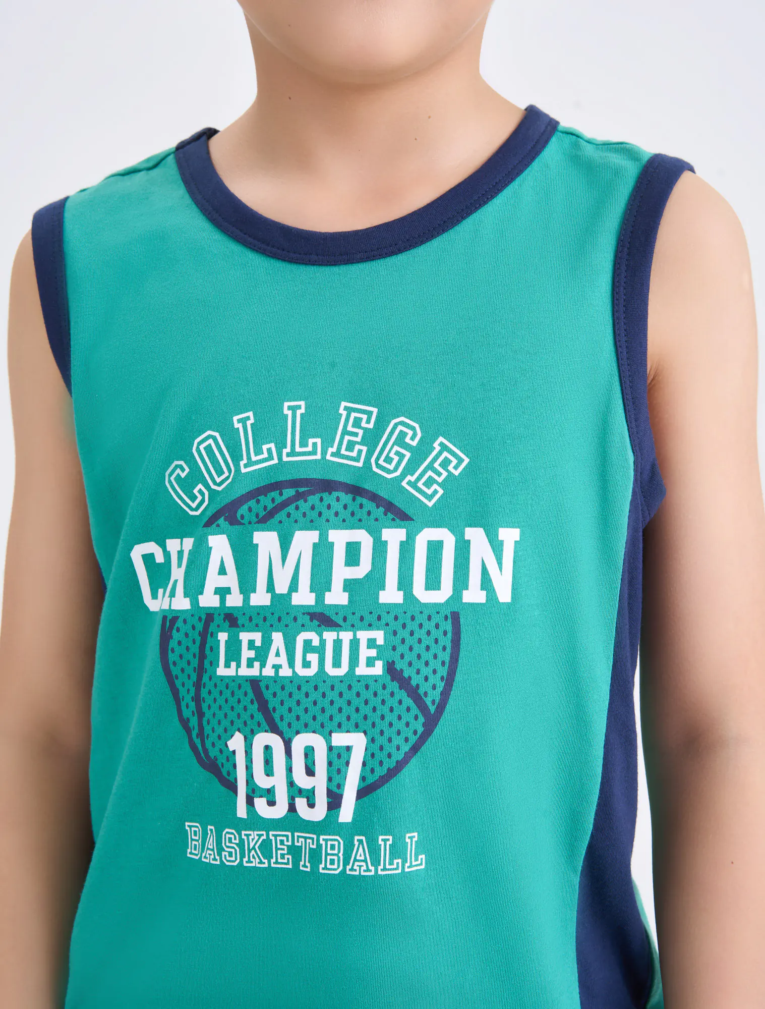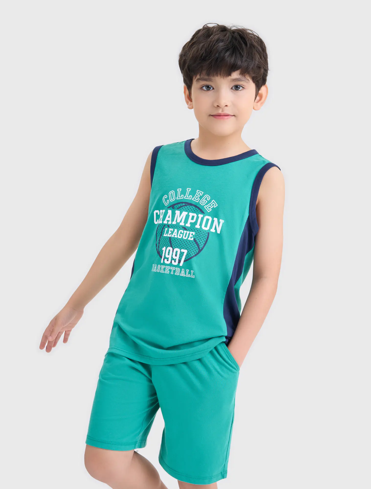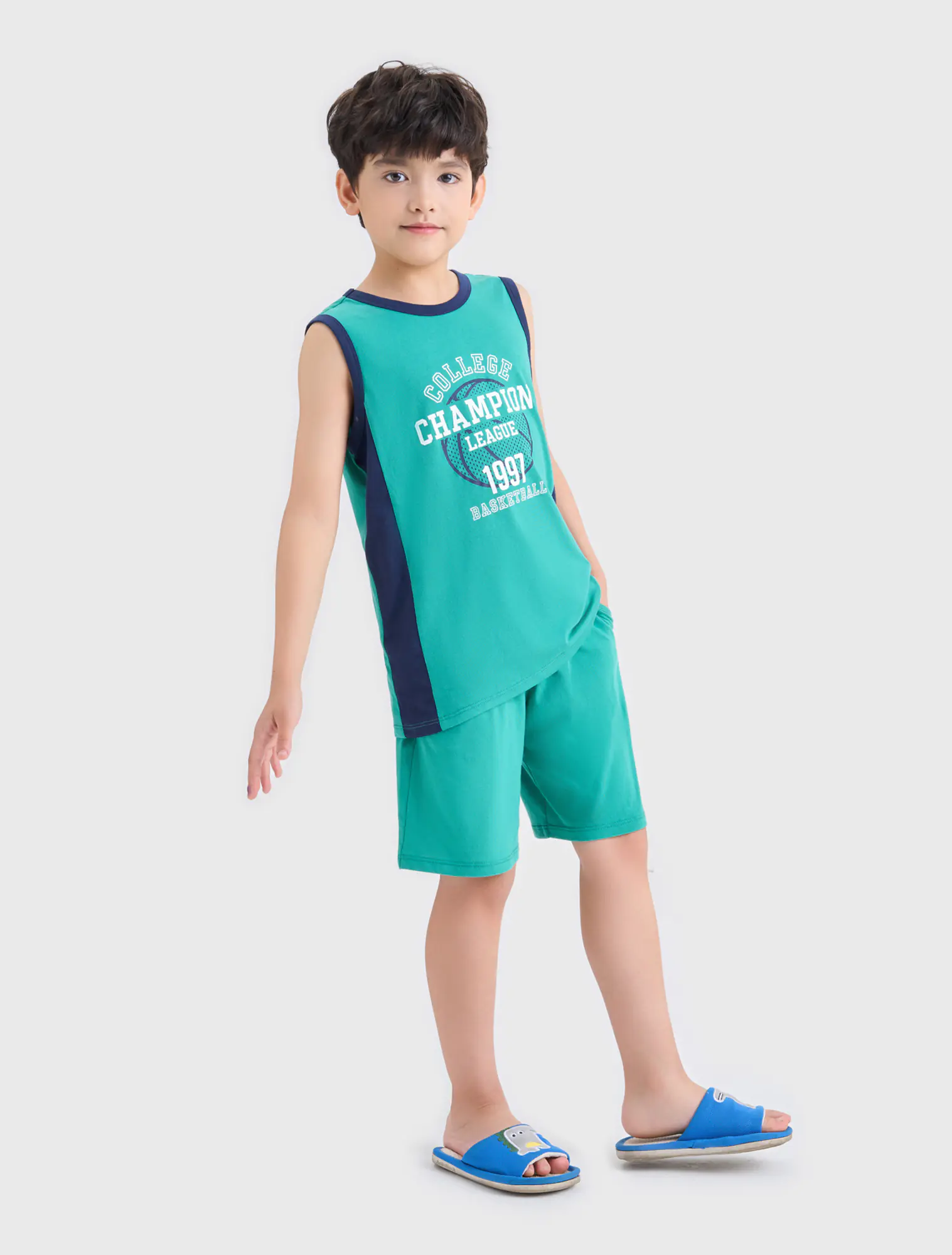 Bộ mặc nhà bé trai áo ba lỗ, quần sooc. Phom dáng cơ bản dễ mặc, màu sắc và hình in phù hợp bé trai.