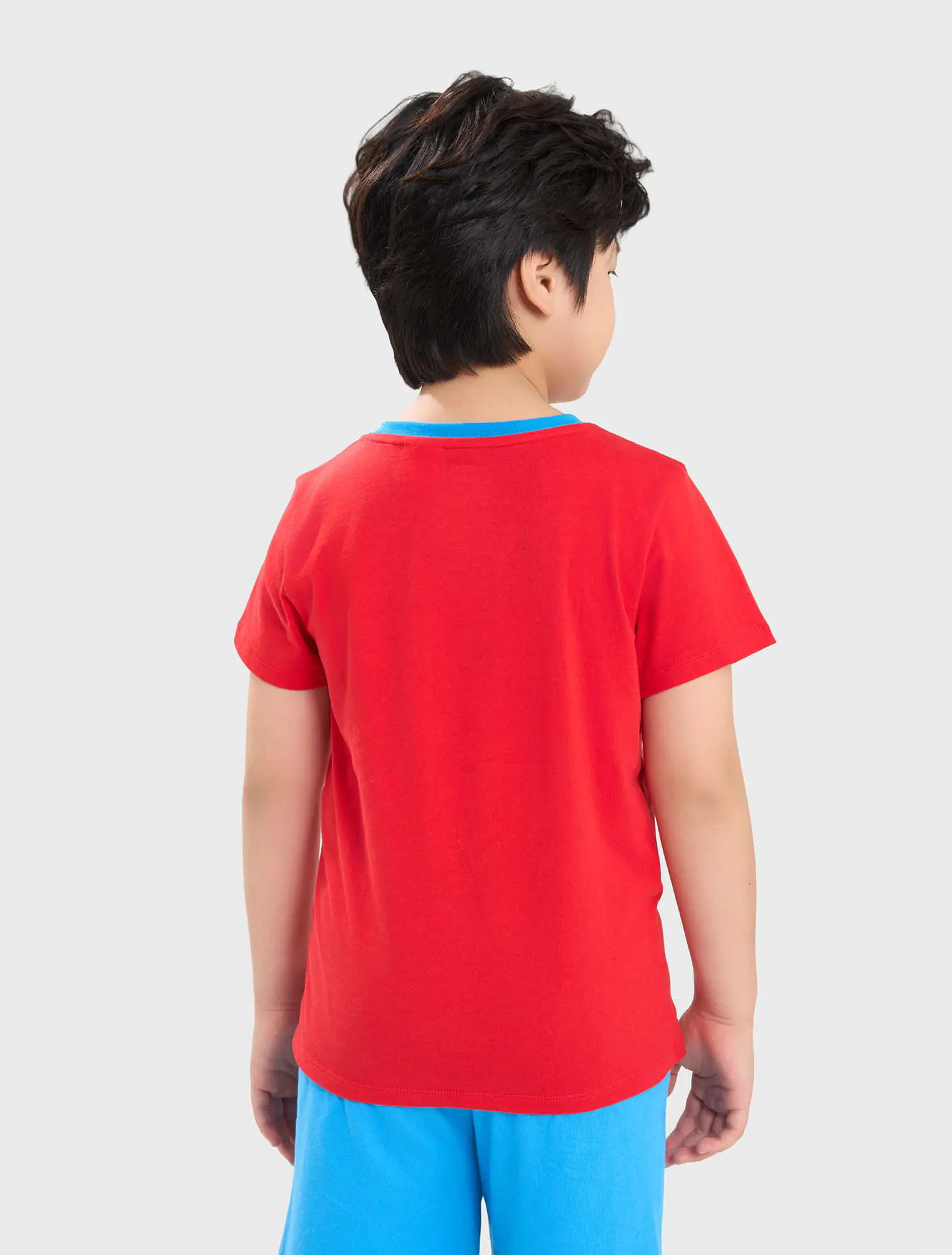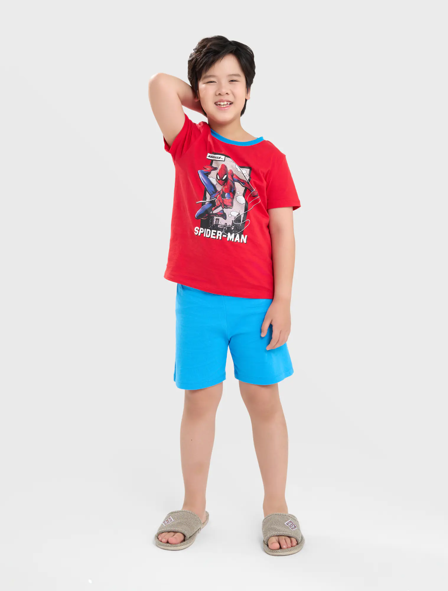 Bộ mặc nhà bé trai áo ngắn tay quần soóc. Phom dáng cơ bản dễ mặc. Hình in nhân nhật Spiderman bắt mắt, màu sắc sạch sẽ nam tính.