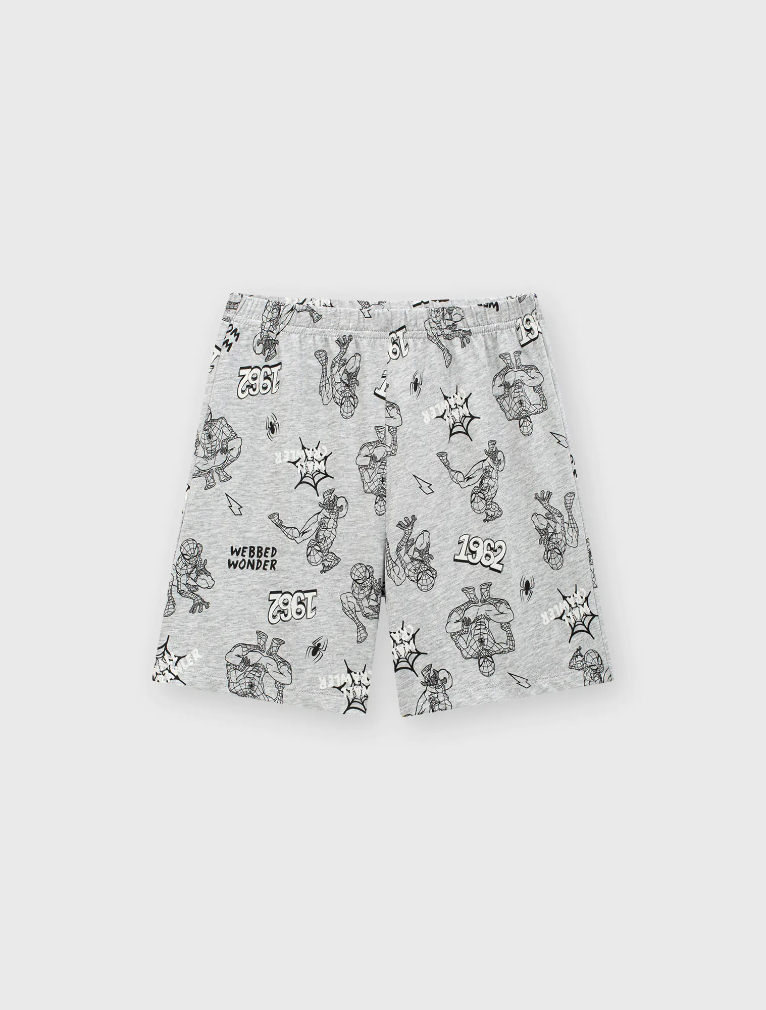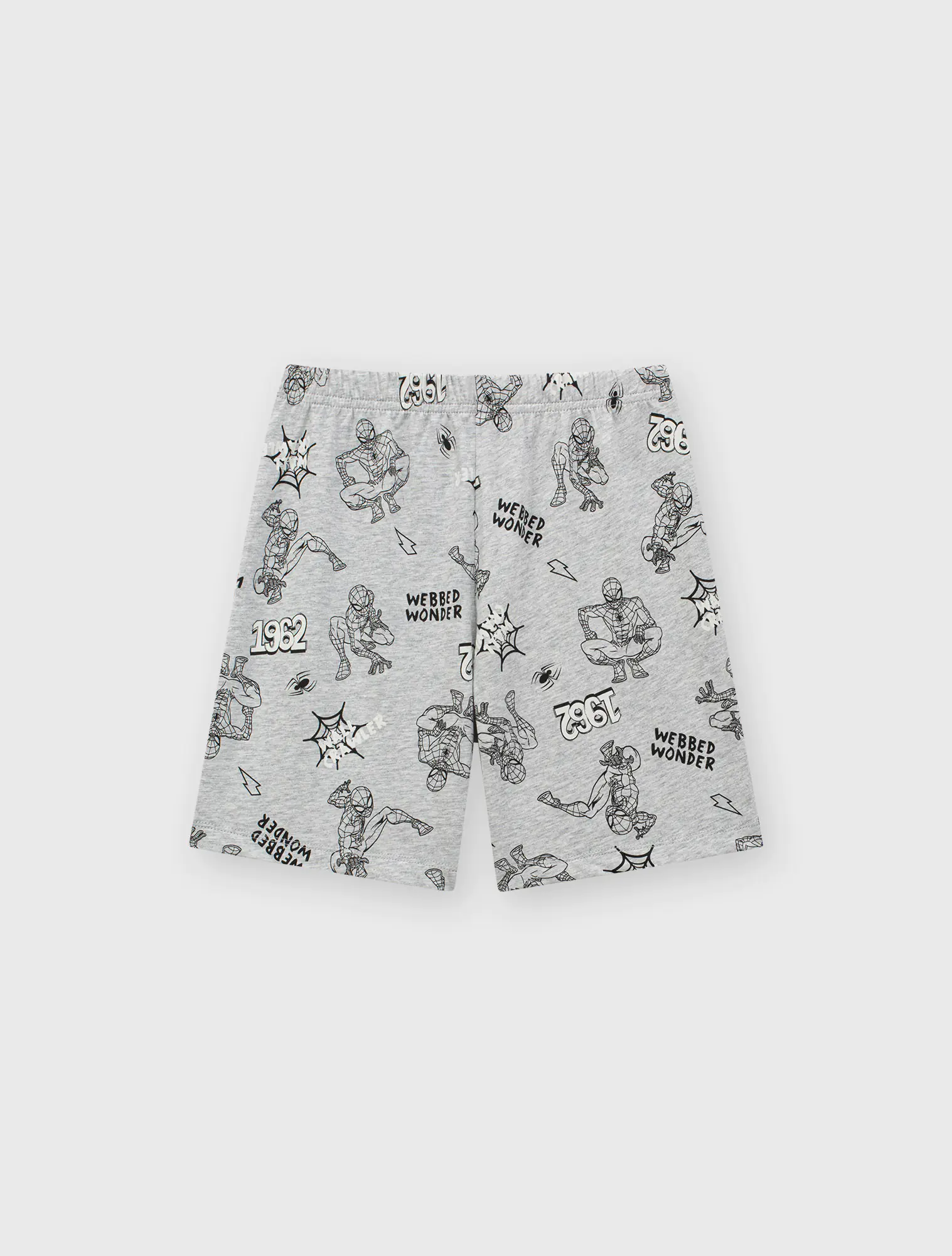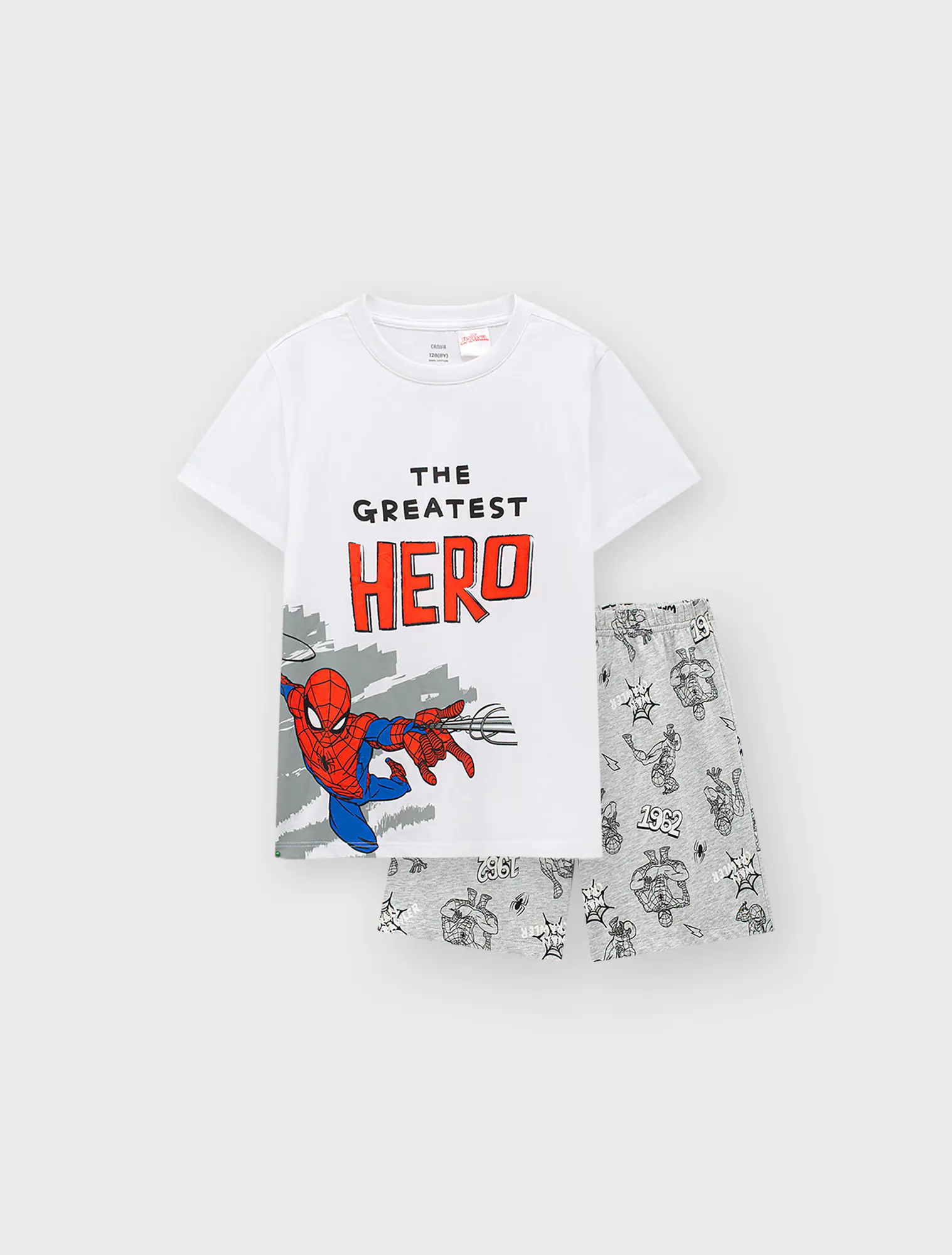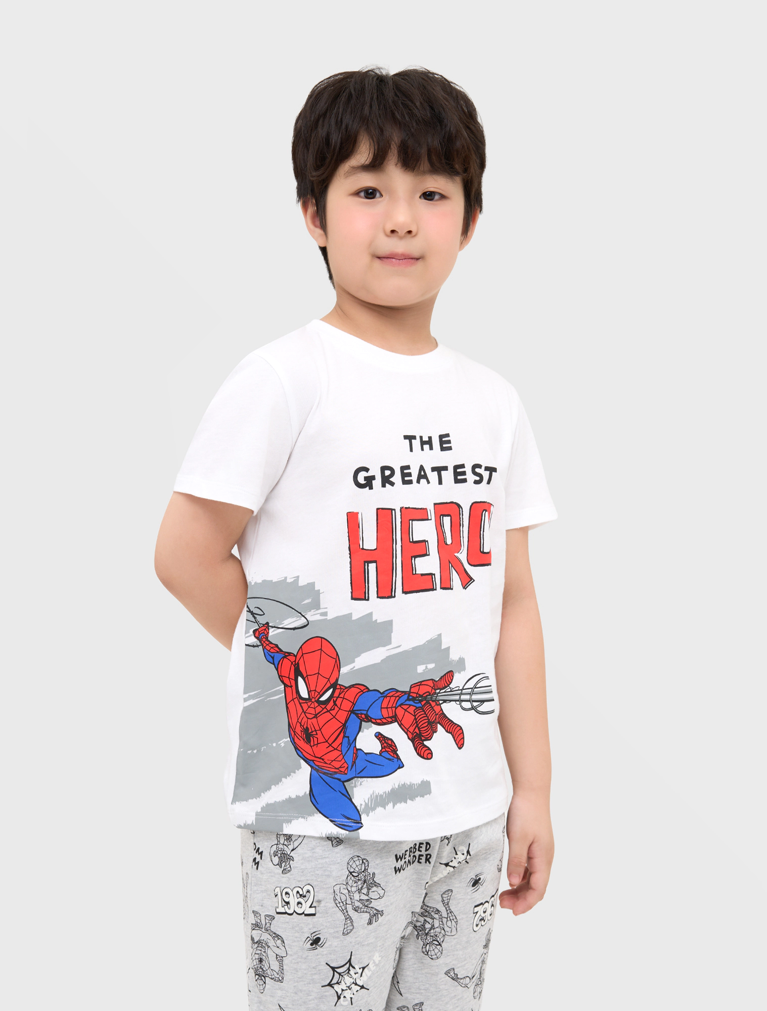 Bộ mặc nhà bé trai áo ngắn tay quần soóc. Phom dáng cơ bản dễ mặc. Hình in nhân nhật Spiderman bắt mắt, màu sắc sạch sẽ nam tính.