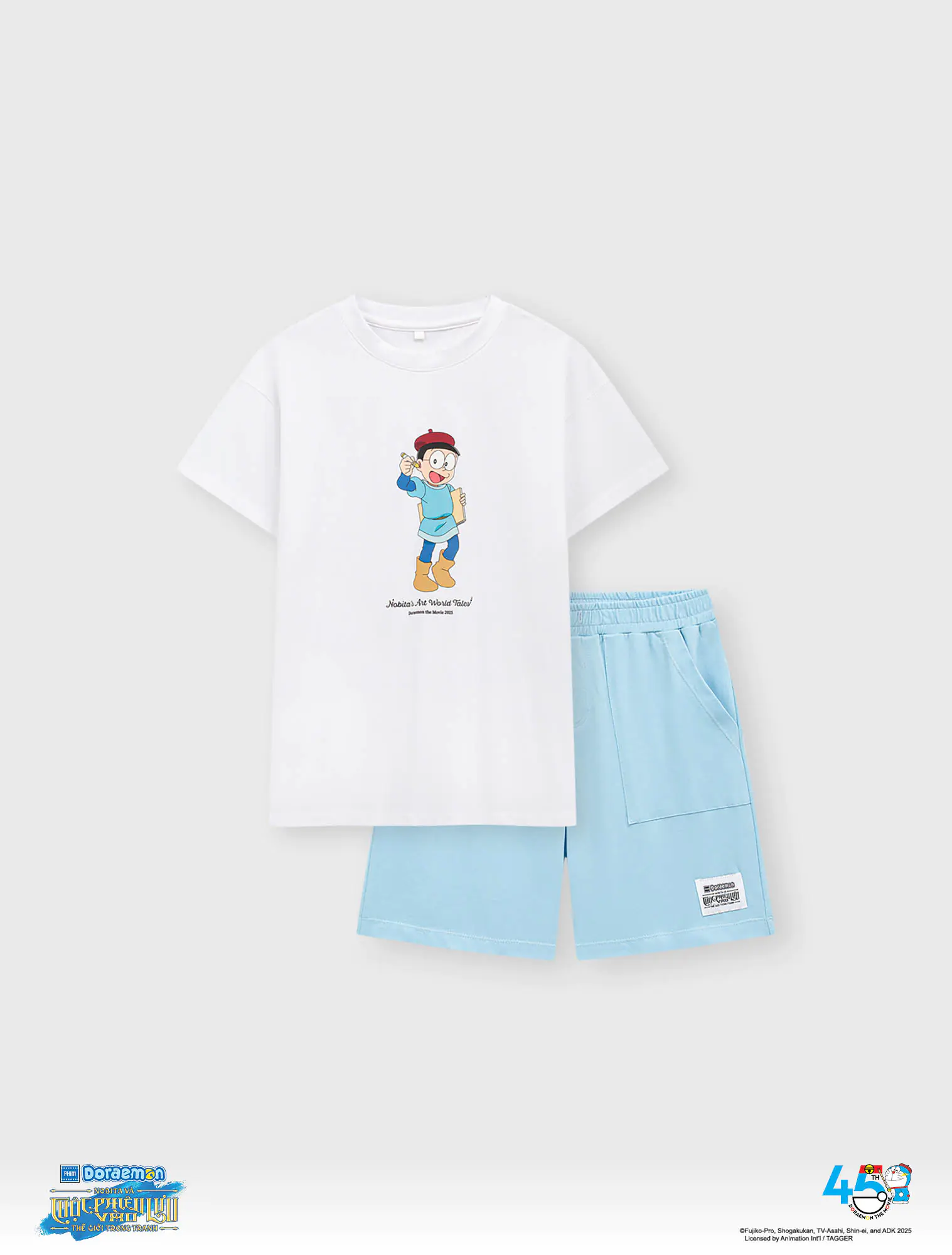 Set đồ bé trai với hình in Doraemon nổi bật, mang đến tinh thần năng động và khỏe khoắn cho mùa hè. Dáng áo suông rộng rãi, quần soóc tiện lợi, tạo cảm giác dễ chịu cho bé trong mọi hoạt động. Chất liệu cotton mềm mại, co giãn, thấm hút tốt.