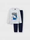 Bộ mặc nhà bé trai. Phom dáng cơ bản, áo dài tay cổ tròn kết hợp quần dài bo gấu dễ mặc. Màu sắc phù hợp bé trai, hình in Pixar thời trang. Chất liệu Cotton pha mềm mại dễ chịu khi mặc.