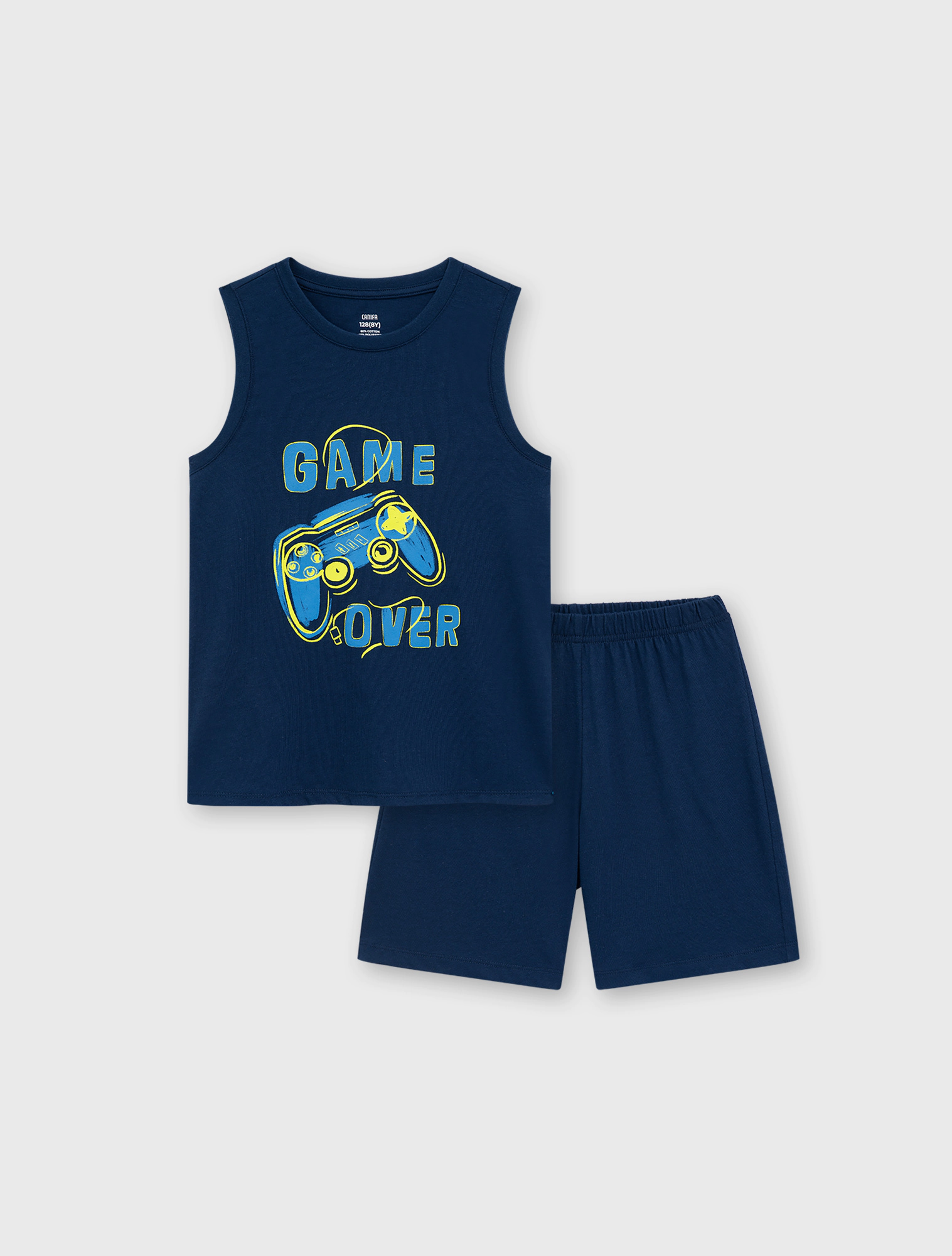 Bộ mặc nhà bé trai phom dáng sát nách dễ mặc, chất liệu cotton pha mềm mại, hình in đa dạng, phù hợp cho các bé sử dụng khi ở nhà và ra ngoài.