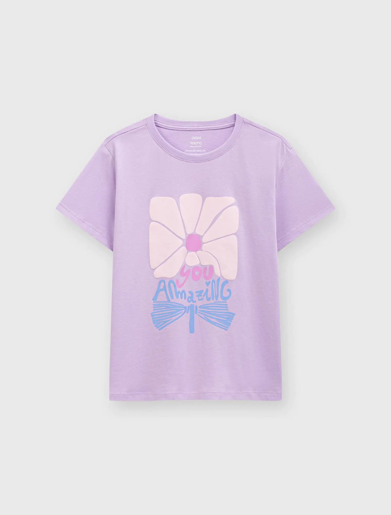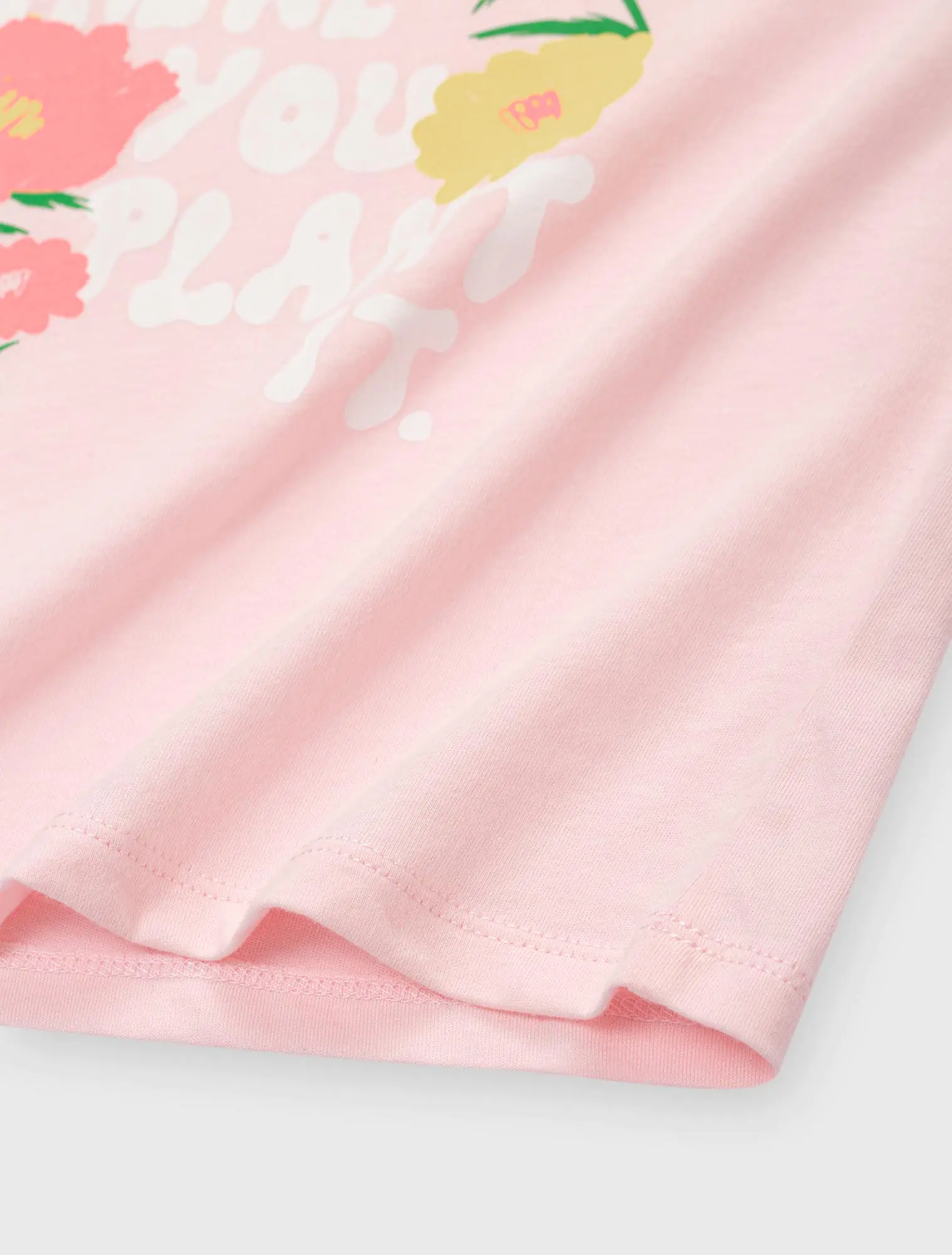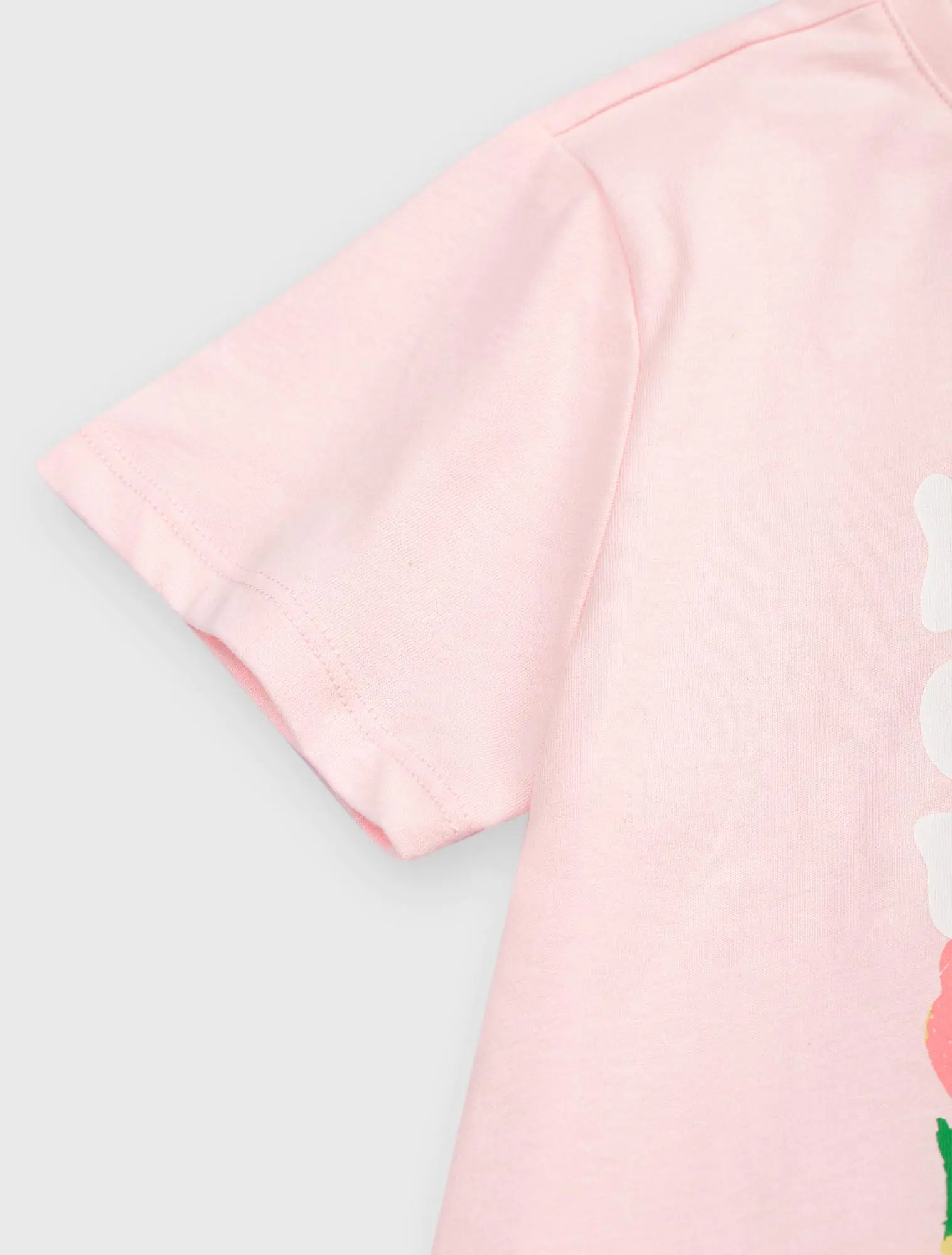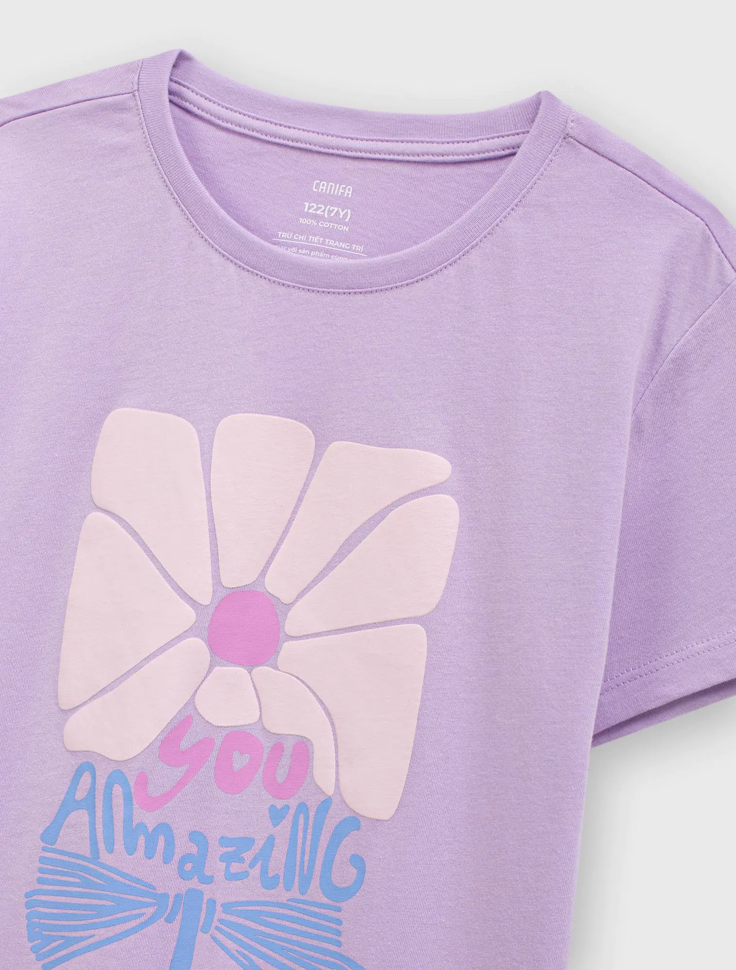 Bộ mặc nhà bé gái áo cộc tay cổ tròn quần chun có hình in