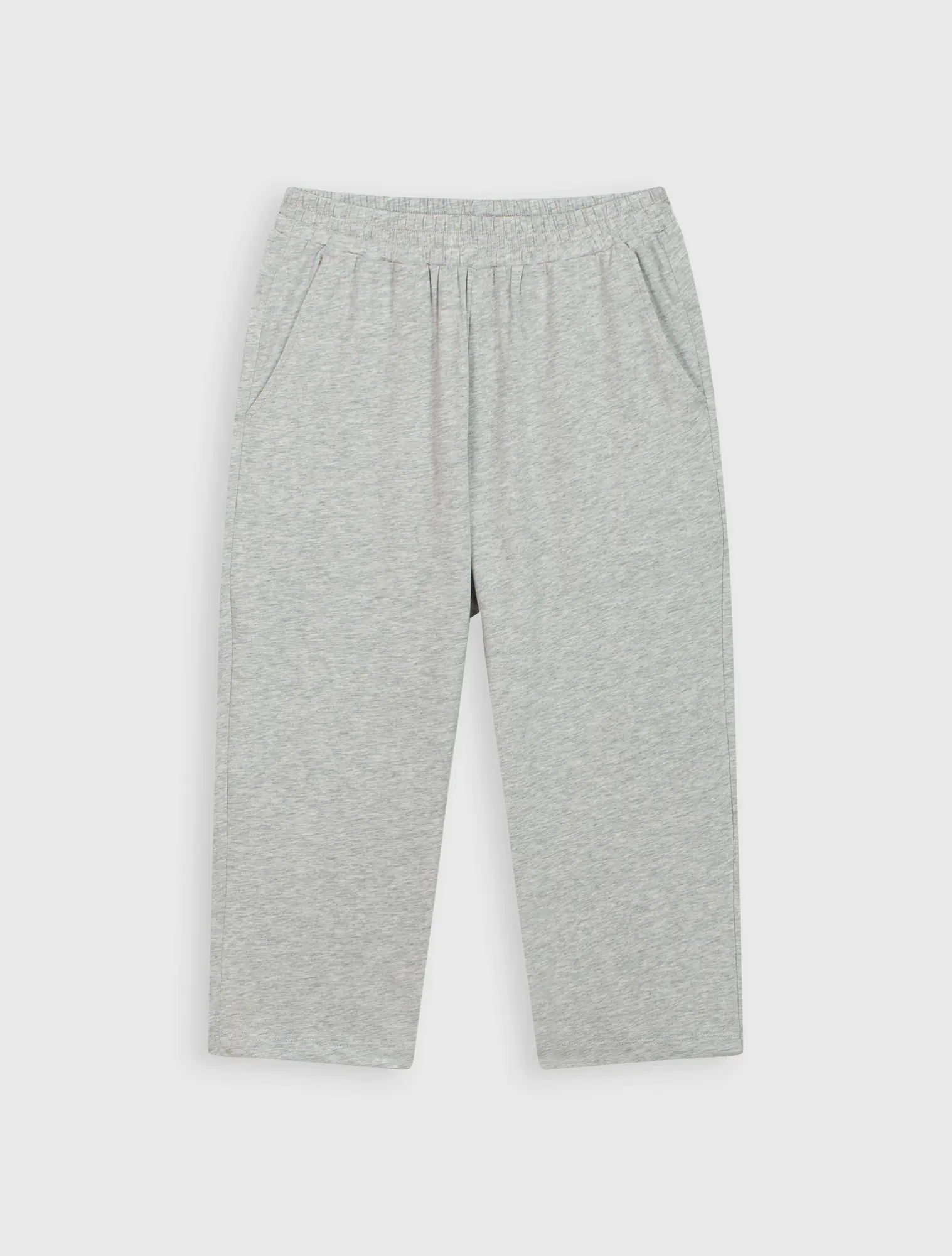 Dáng regular, áo cổ tròn tay cộc, quần lửng.