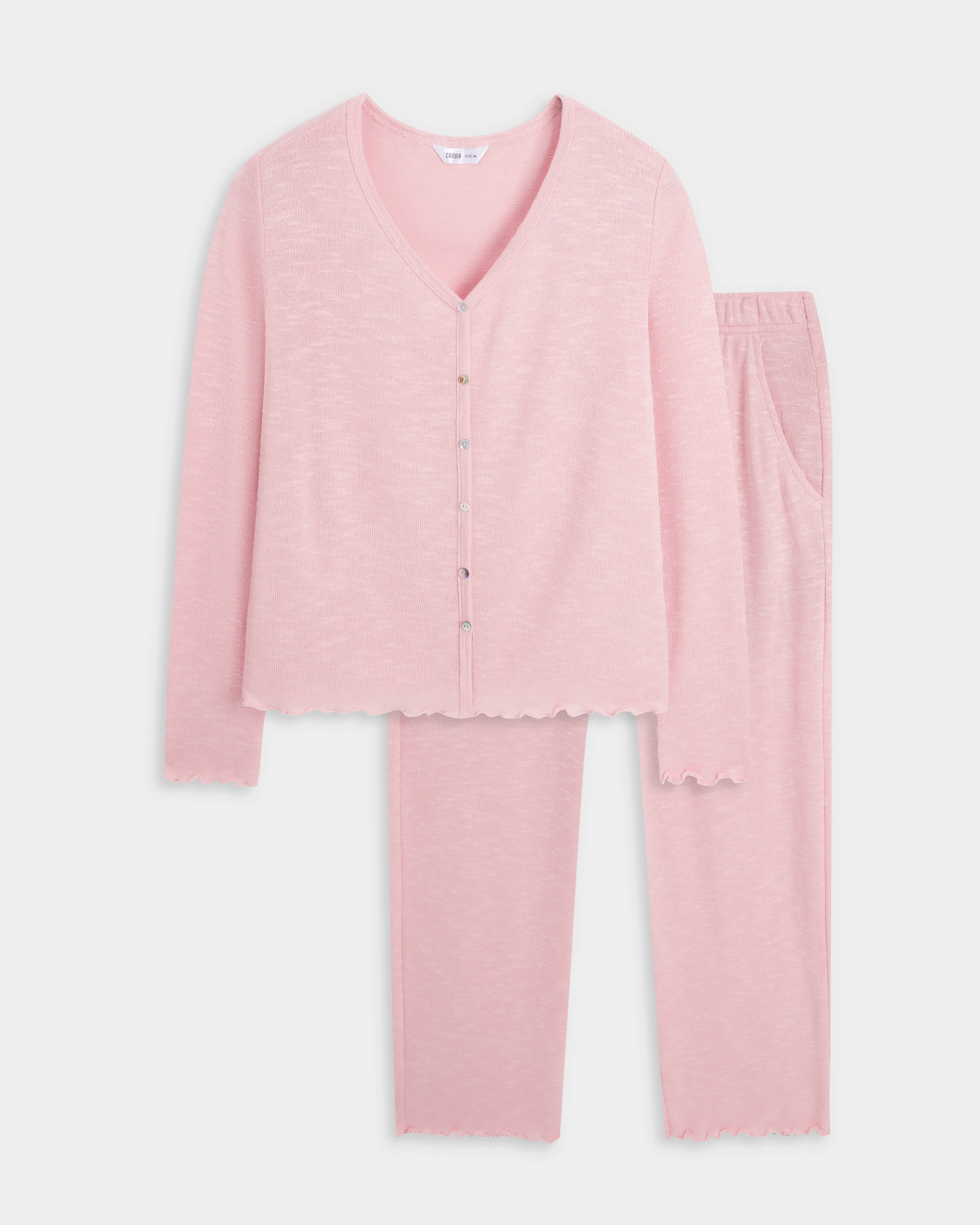 Bộ mặc nhà dáng suông rủ vừa phải, gọn gàng nhưng vẫn rộng rãi thoải mái.