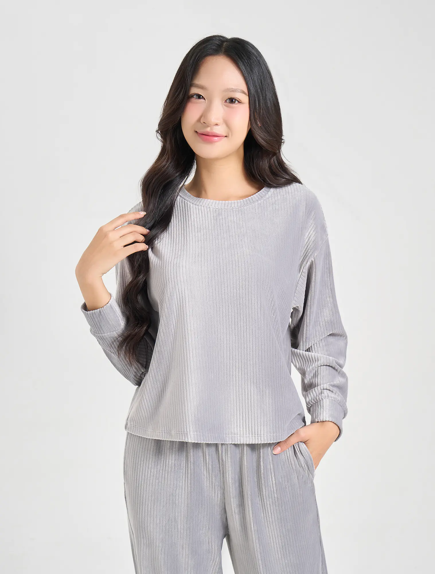 Bộ mặc nhà nữa chất liệu vải nhung cao cấp, dày dặn ấm áp những vẫn mềm mịn, rất thích hợp với thời tiết lạnh của mùa Đông.