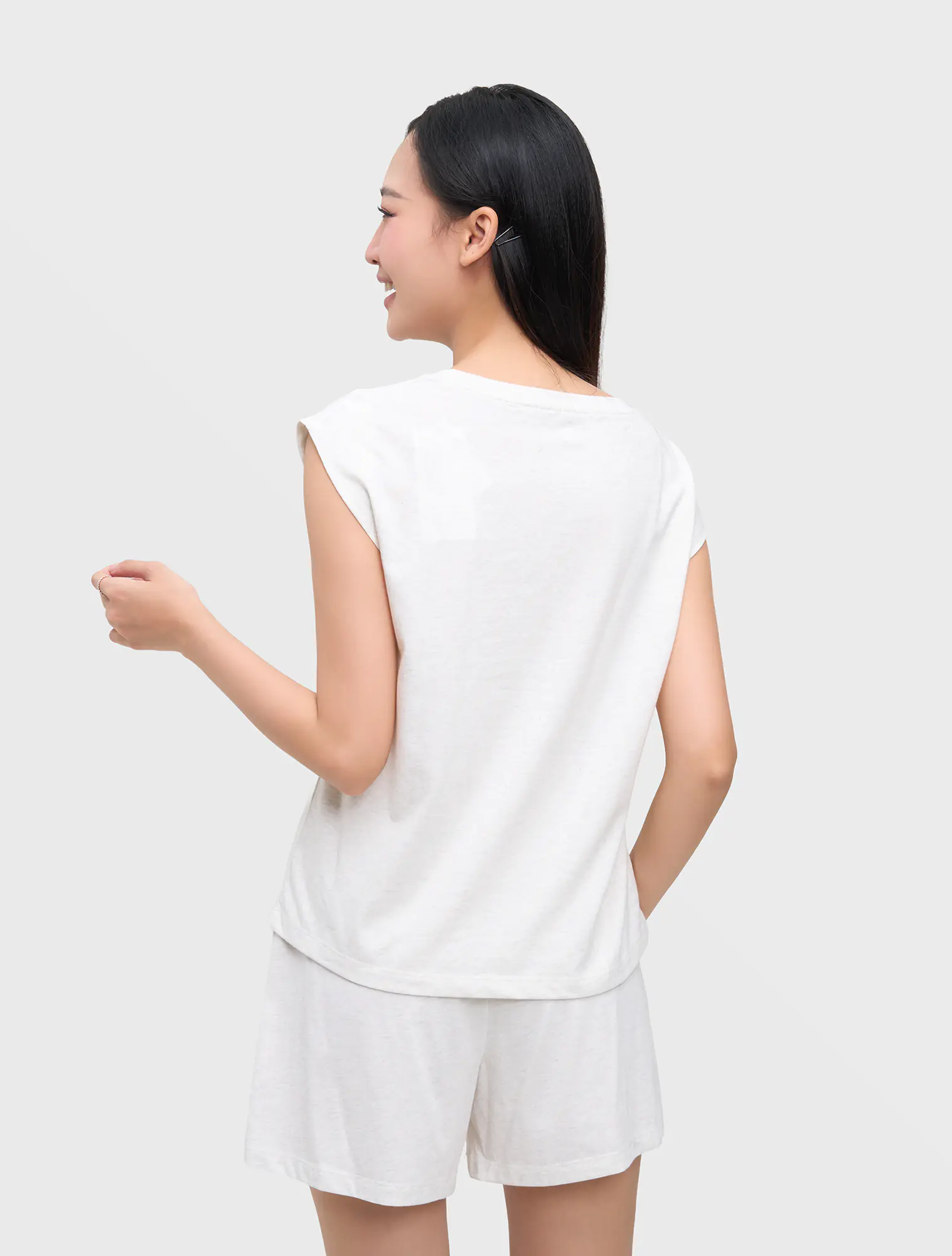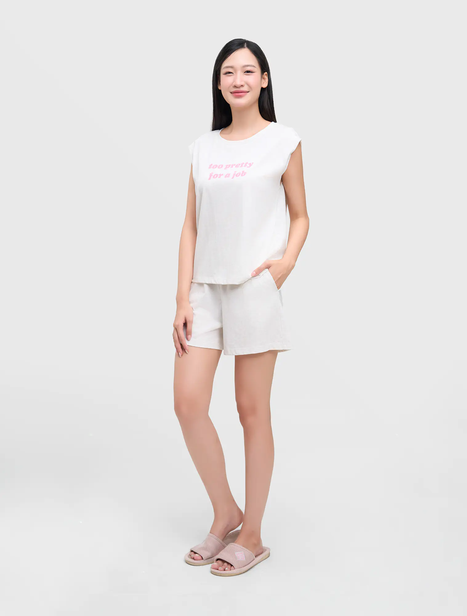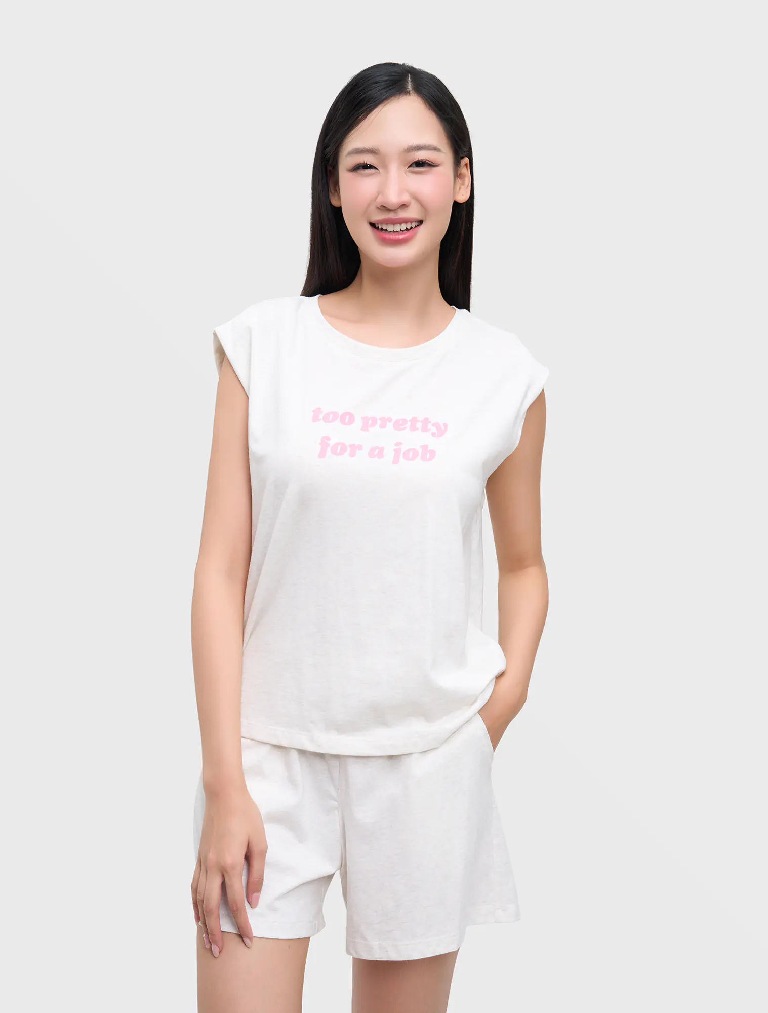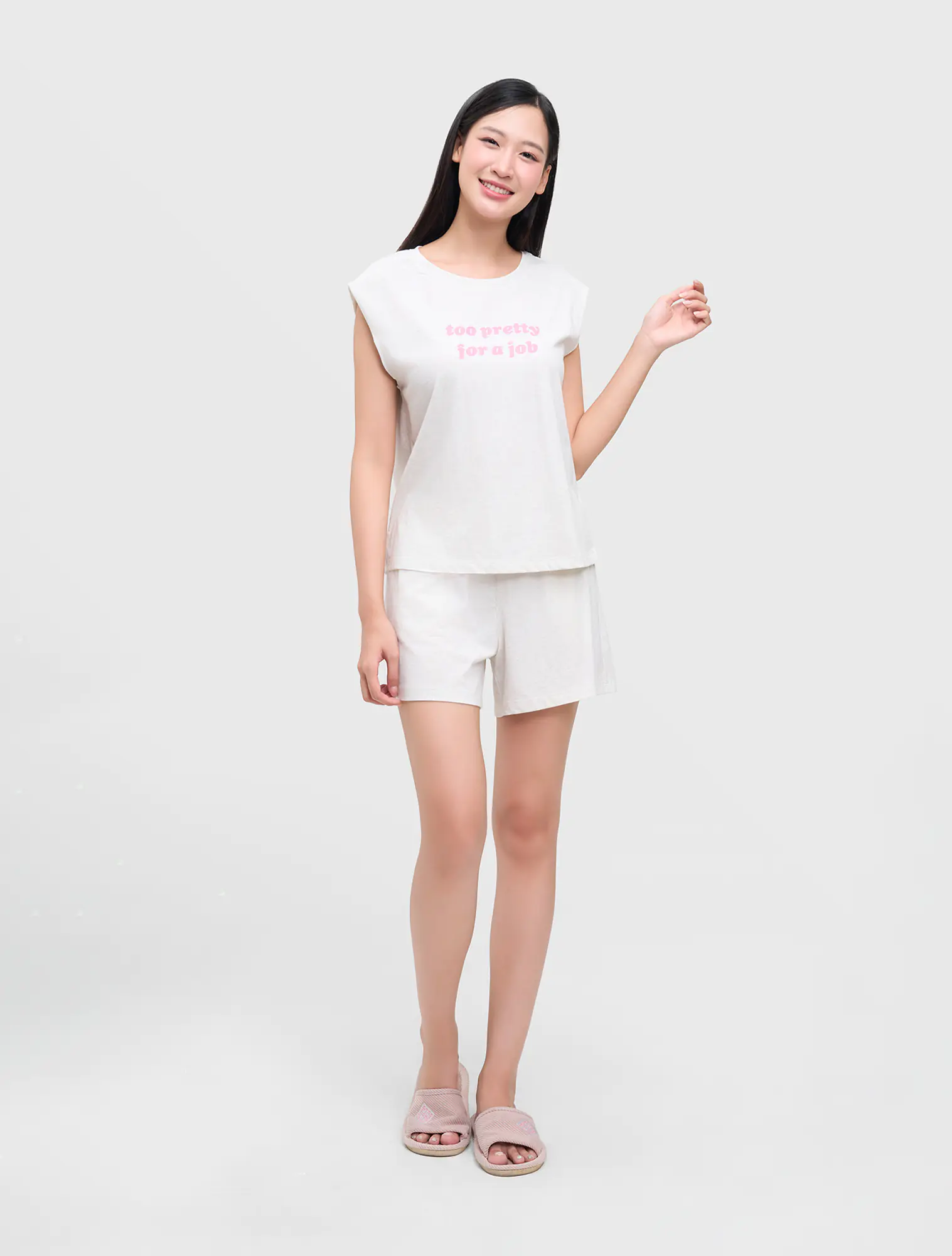Bộ mặc nhà nữ quần cộc, áo sát nát có hình in bán với giá tốt.