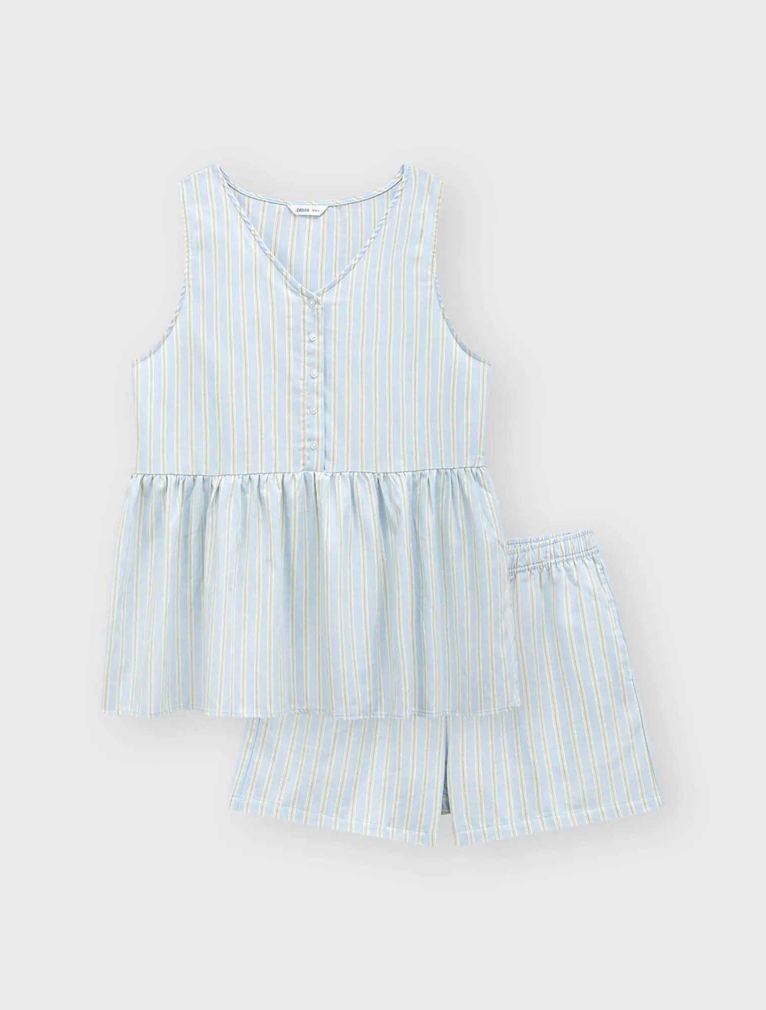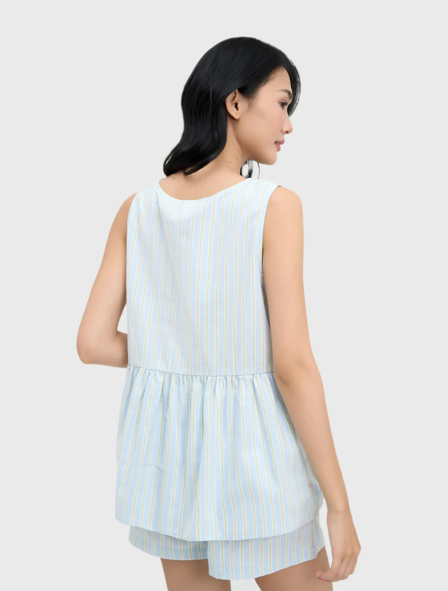 Set bộ mặc nhà nữ vải dệt kẻ màu sắc tươi sáng và kiểu dáng thoải mái rất phù hợp với những lựa chọn cho ngày hè.