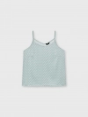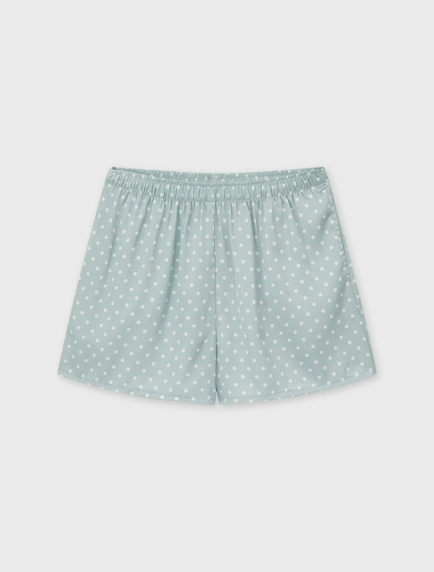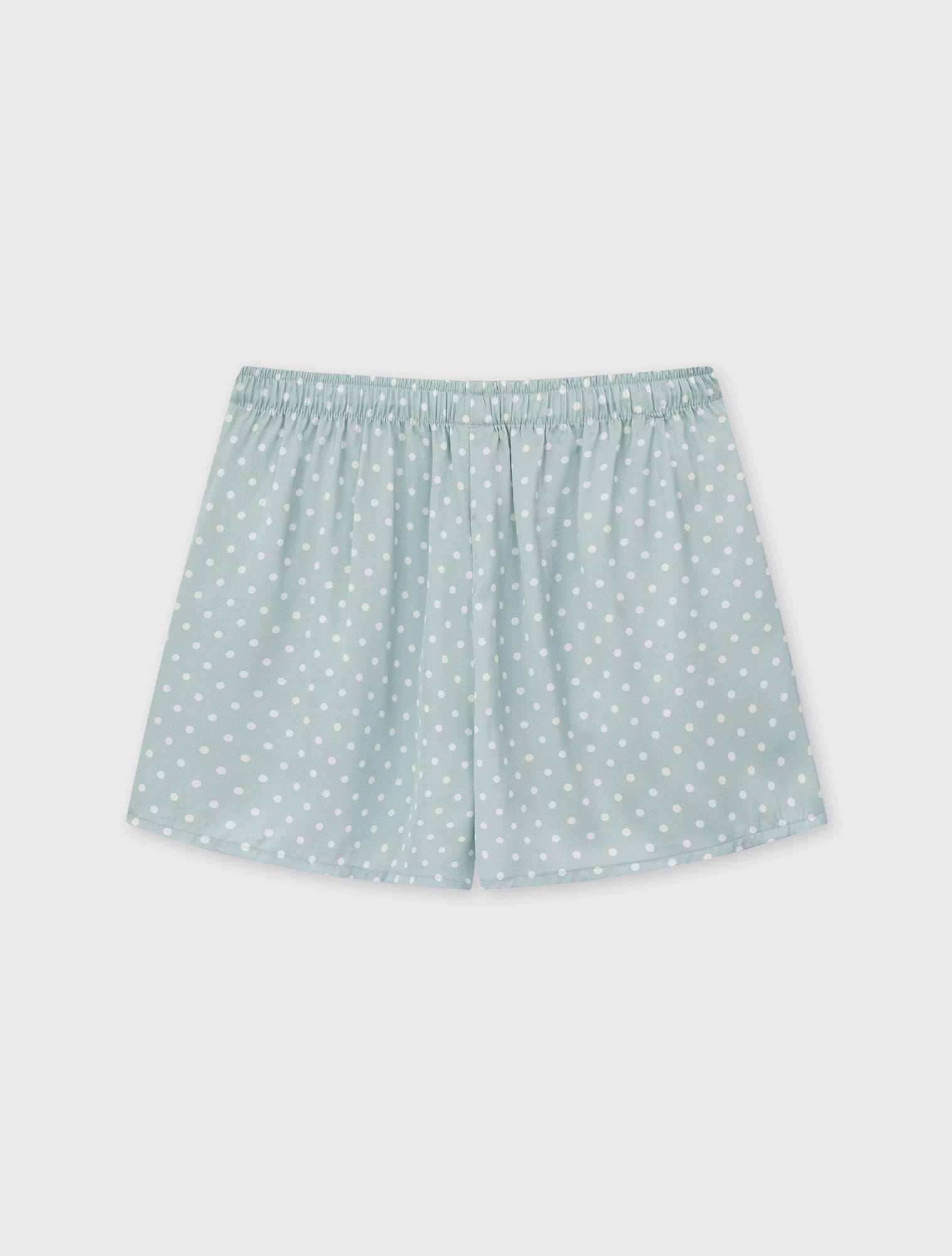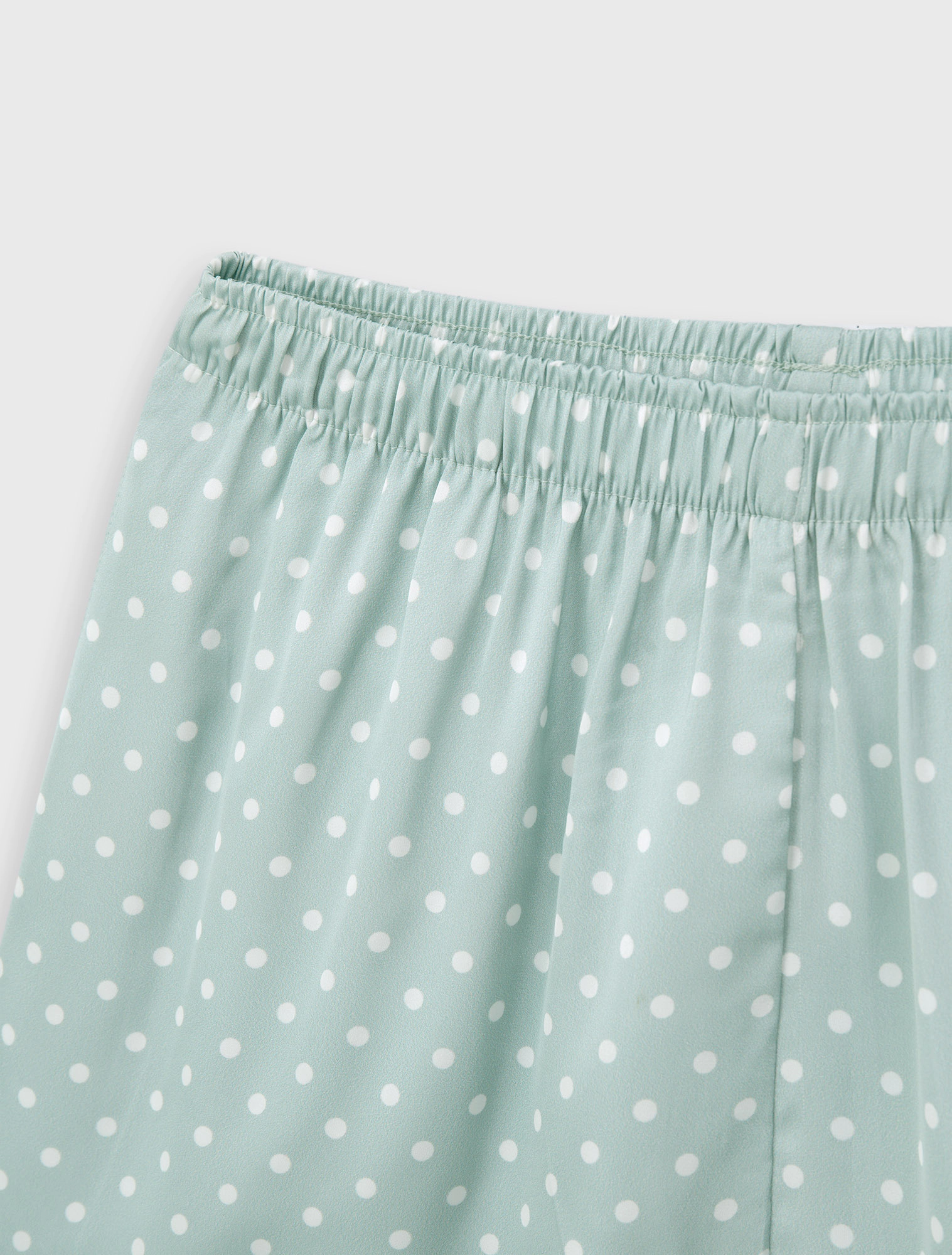 Bộ pyjama nữ dáng regular, với thiết kế áo 2 dây, quần shorts và hoạ tiết vải chấm bi trên chất liệu lụa poly mềm mại, tạo nên một item cơ bản nhưng vẫn trẻ trung và tươi mới.