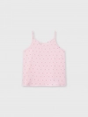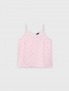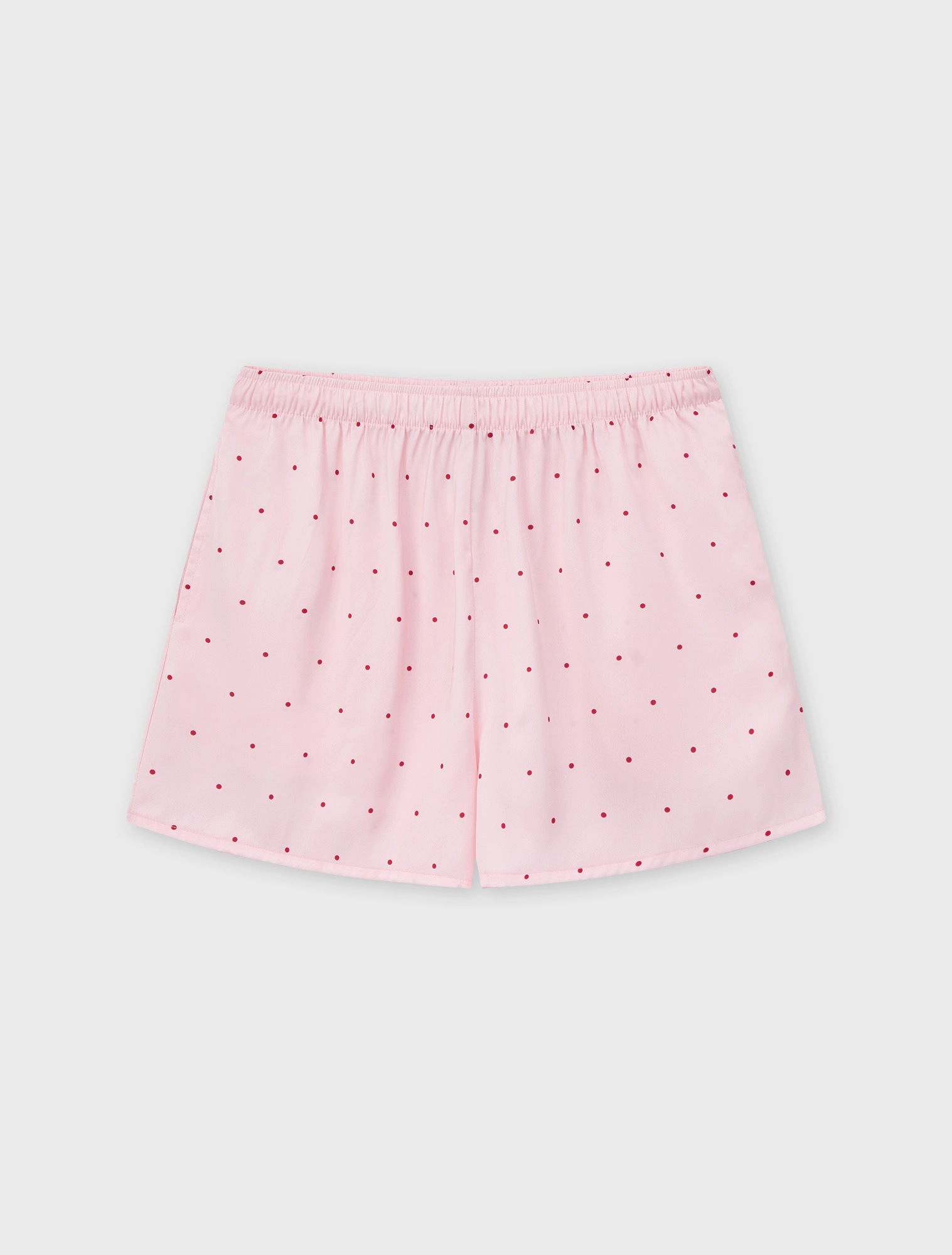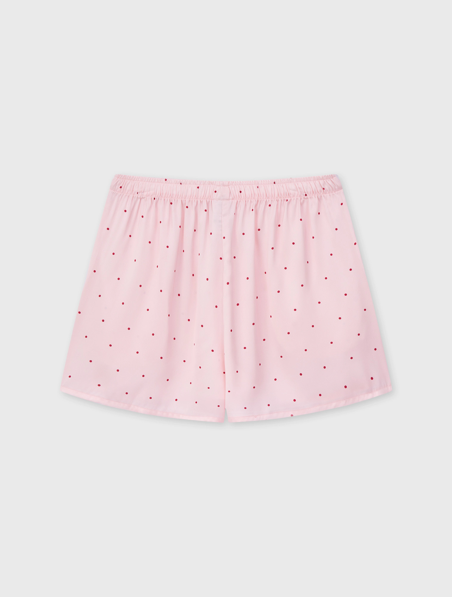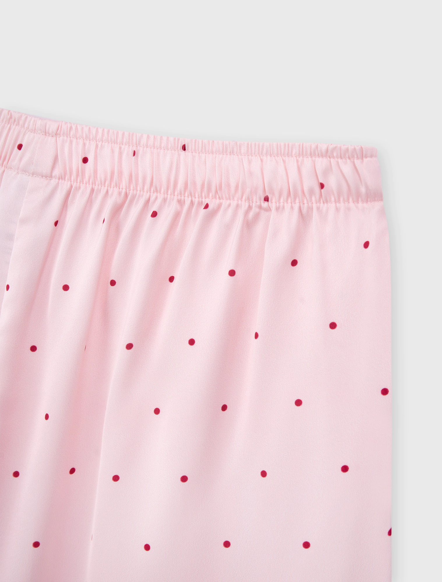 Bộ pyjama nữ dáng regular, với thiết kế áo 2 dây, quần shorts và hoạ tiết vải chấm bi trên chất liệu lụa poly mềm mại, tạo nên một item cơ bản nhưng vẫn trẻ trung và tươi mới.