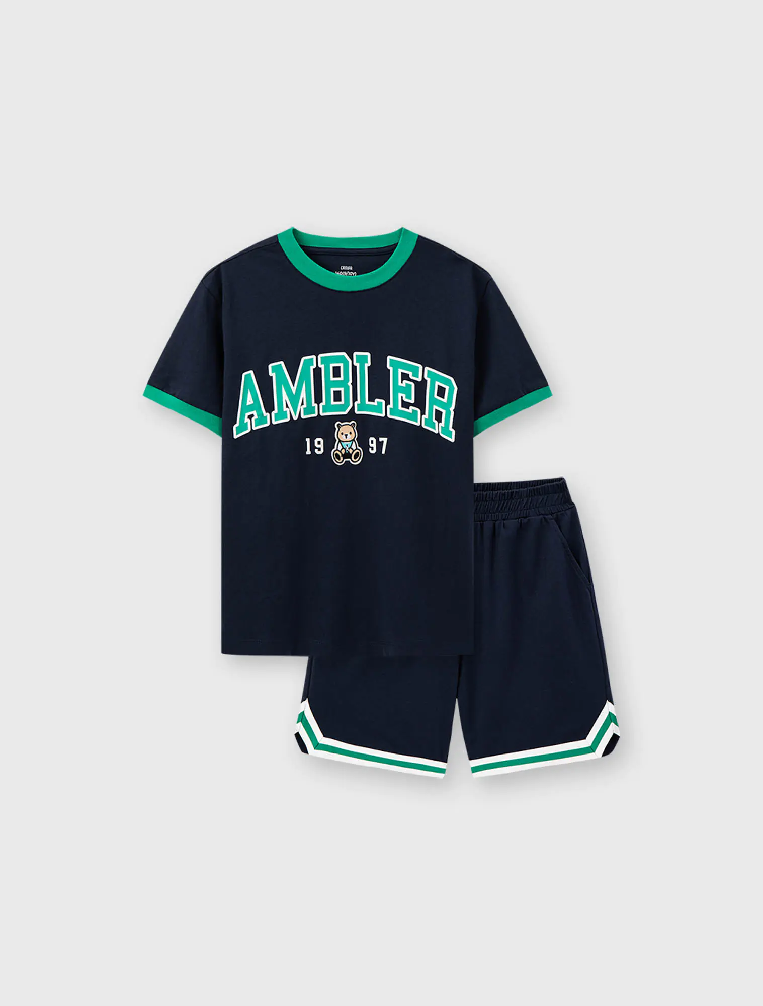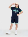 Bộ quần áo unisex trẻ em cộc tay quần chun có hình in dáng thể thao