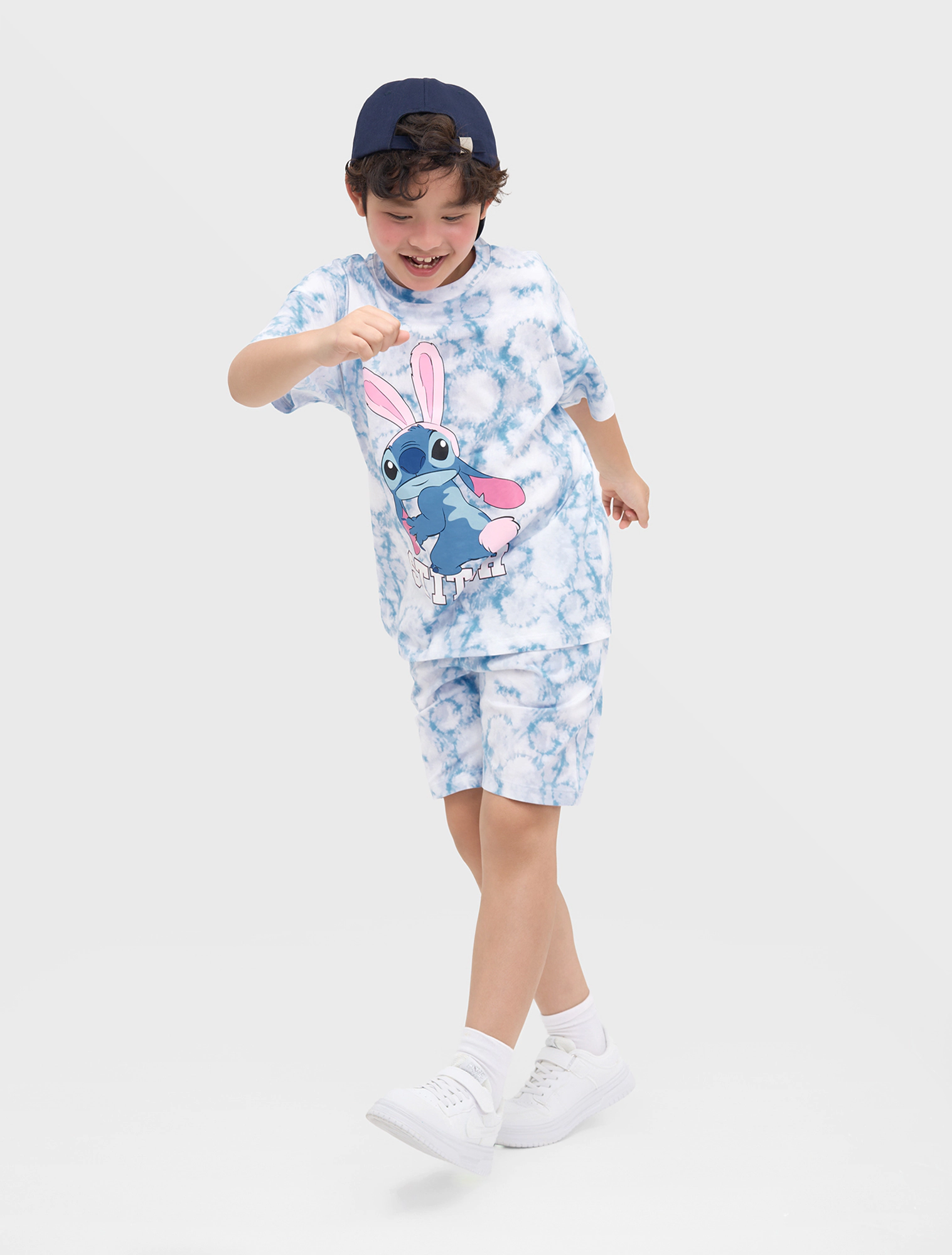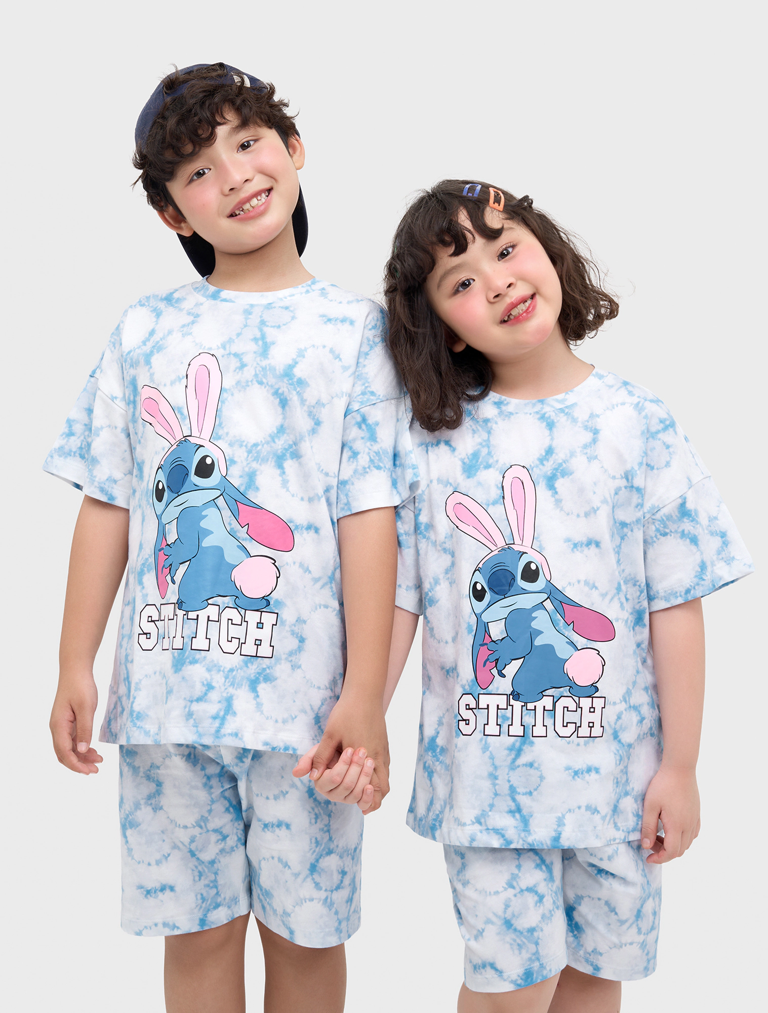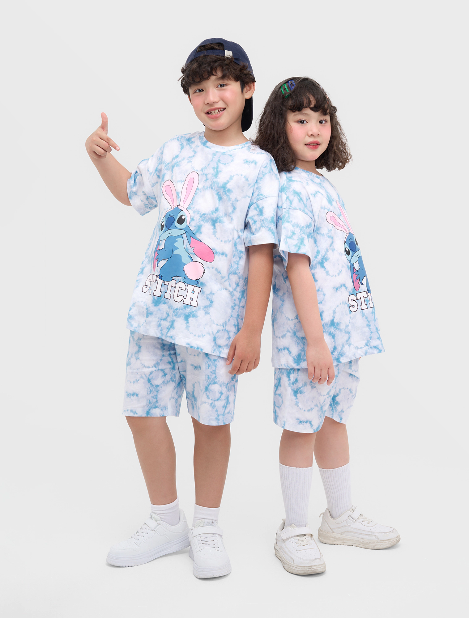 Bộ quần áo unisex trẻ em cộc tay quần chun in hình Stitch