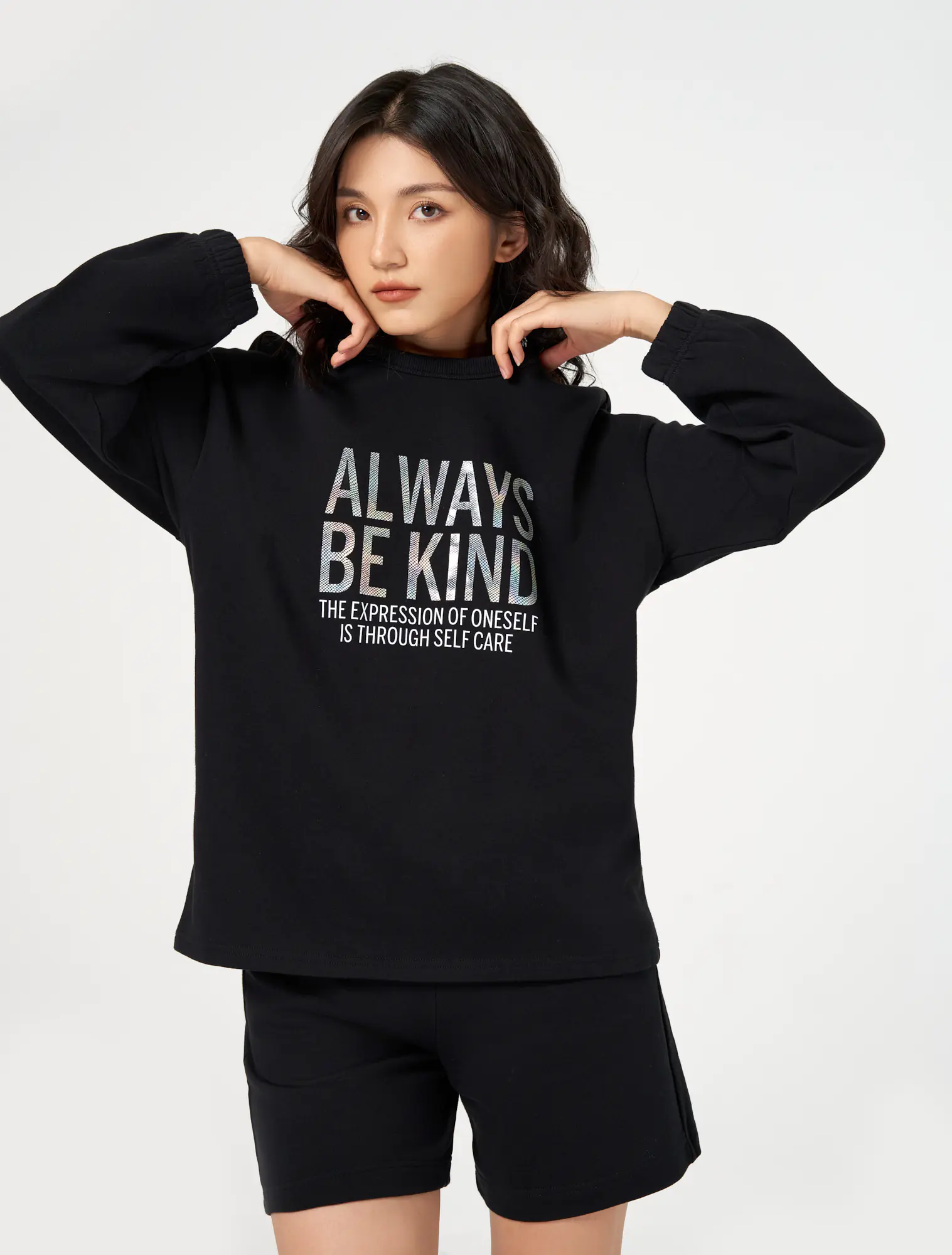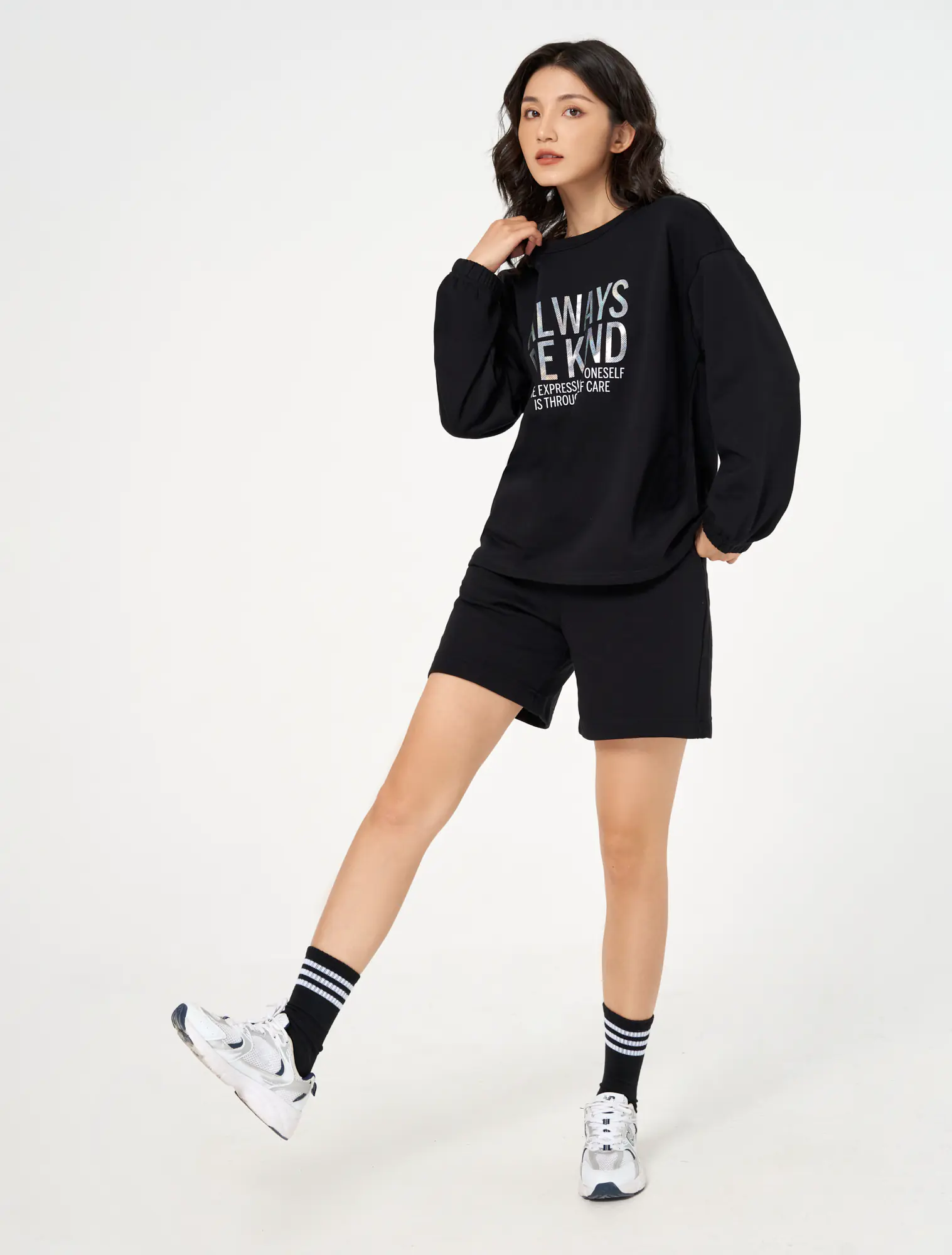 Bộ quần áo nữ nỉ dài tay quần soóc cạp chun có hình in
