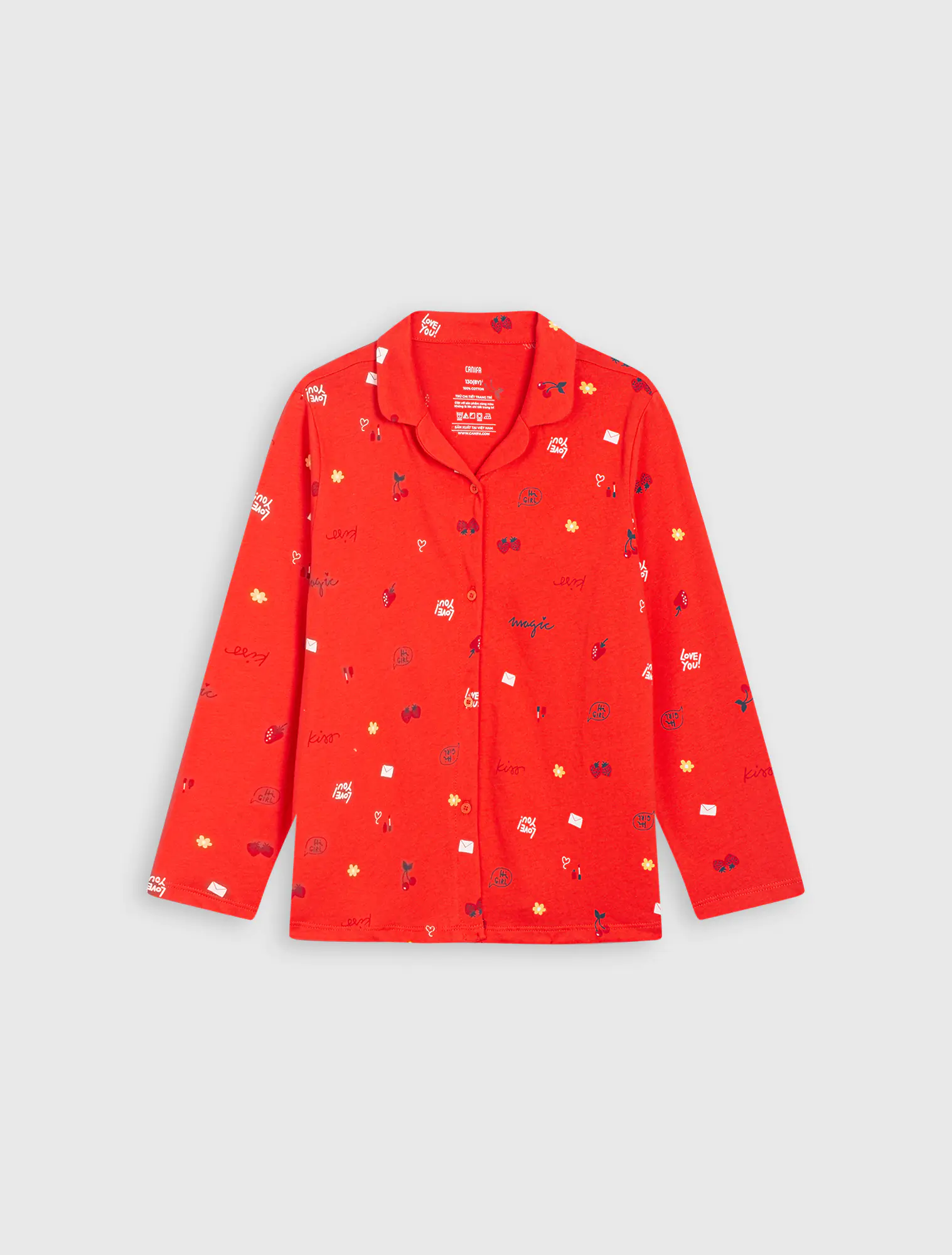 Bộ pyjama chất liệu 100% cotton, áo dài tay quần dài.