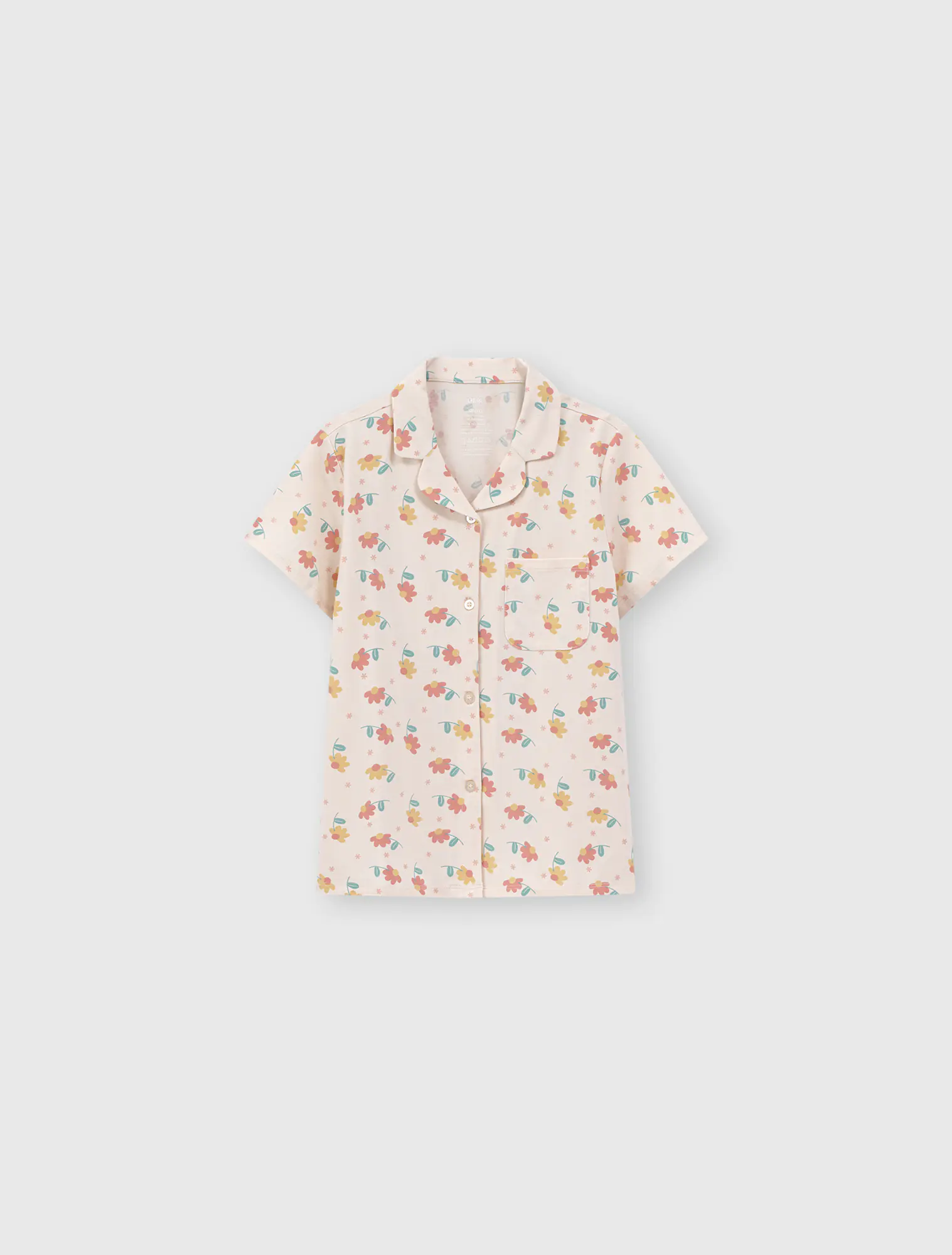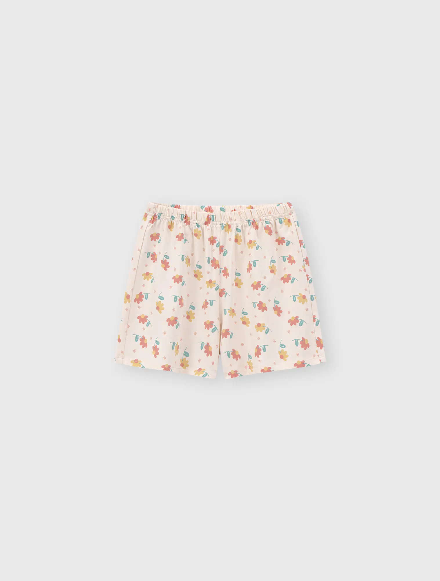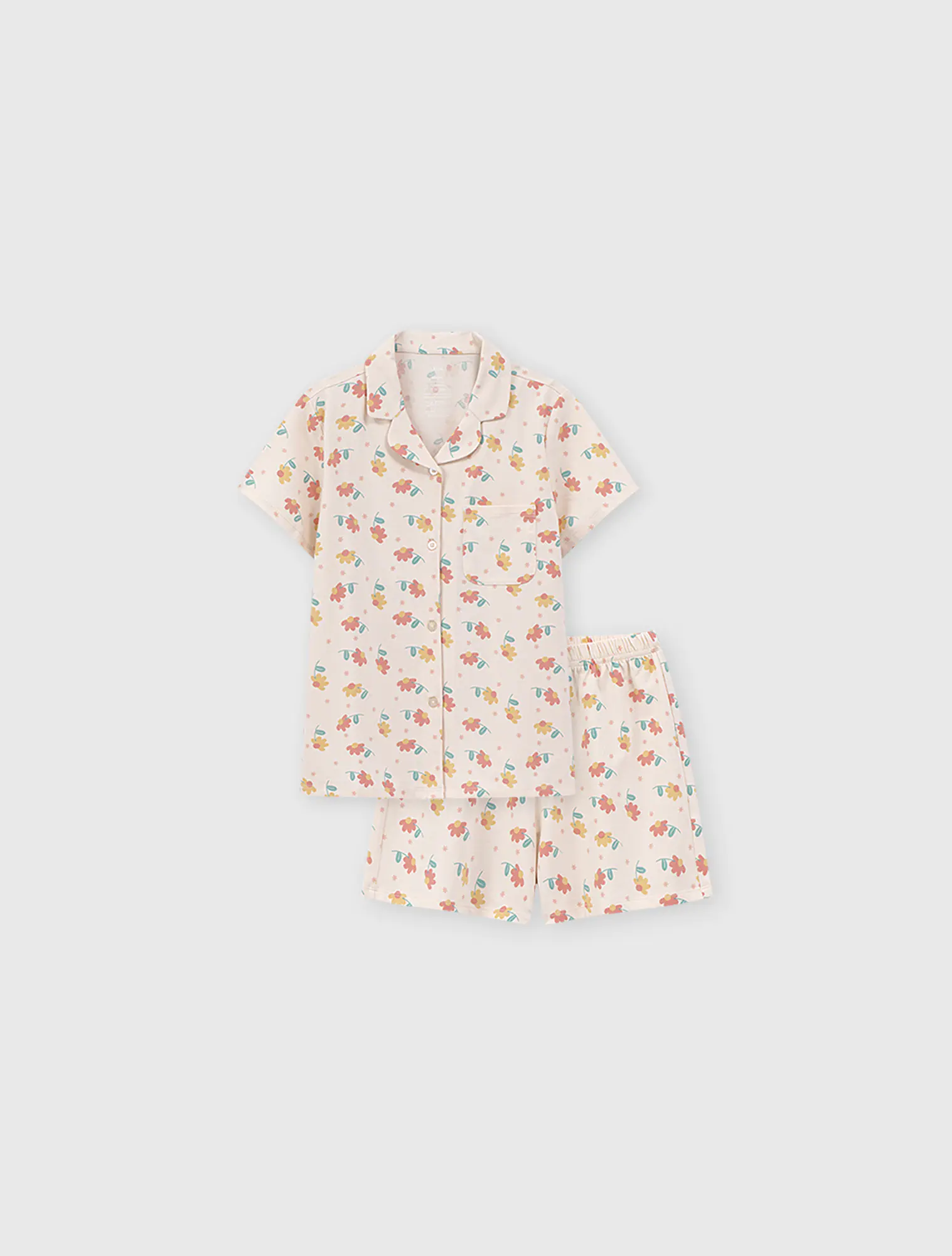 Bộ mặc nhà pyjamas áo cộc tay quần sooc bé gái. Kiểu dáng cơ bản dễ sử dụng. Mùa sắc, họa tiết tươi sáng, dễ thương, phù hợp bé gái.